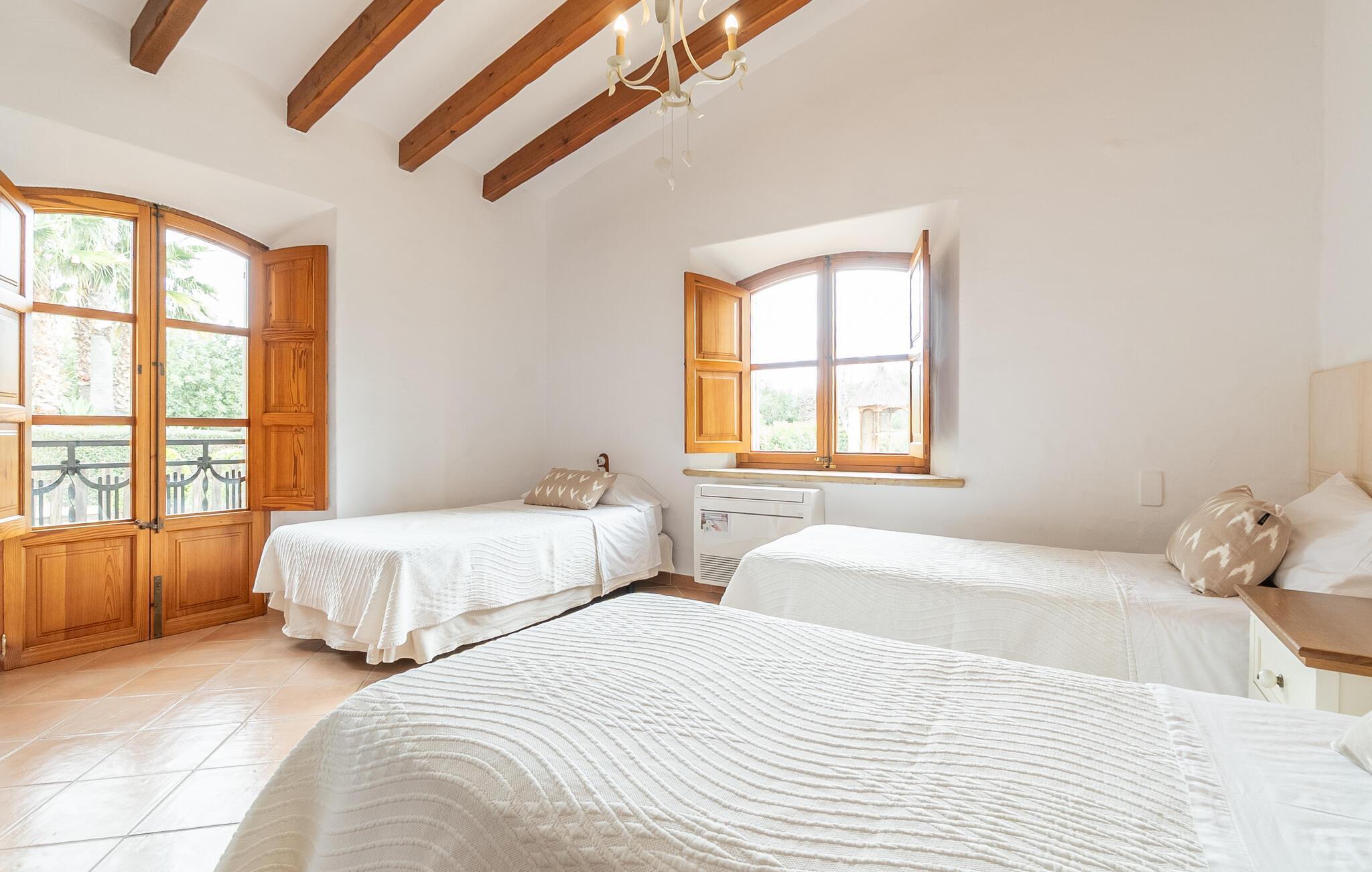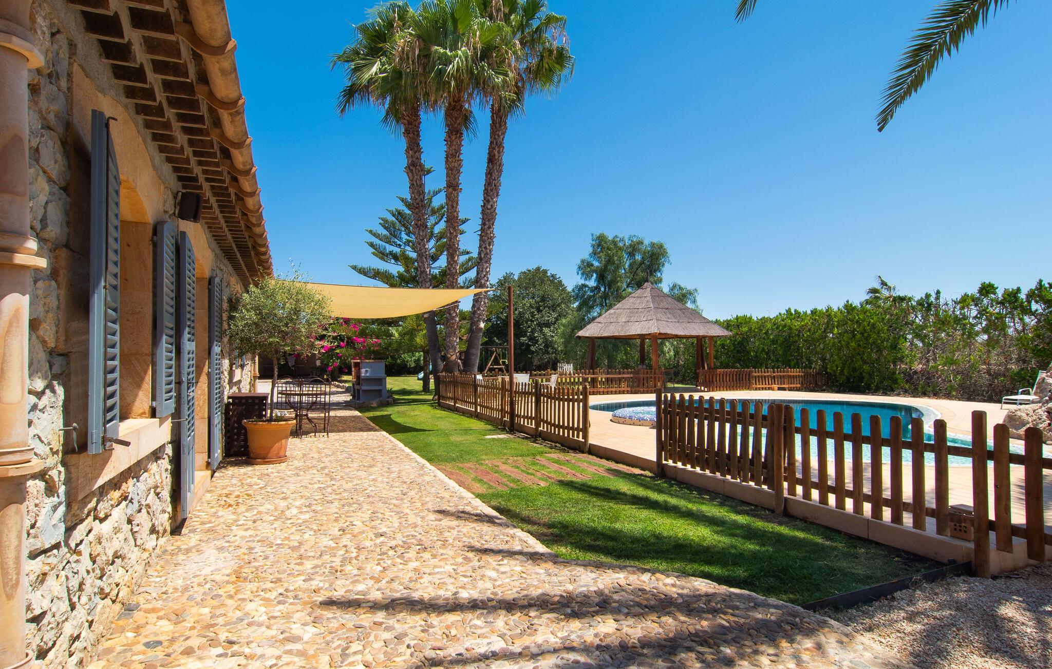 En særlig malerisk atmosfære byder gæster velkommen til denne unikke møllevilla nær Consell. Ved restaureringen i 2005 blev der lagt stor vægt på at bevare den oprindelige atmosfære og samtidig komplettere den med moderne bekvemmeligheder. Resultatet er en all-round attraktiv bolig, hvor op til fem personer kan tilbringe en afslappende ferie. Ejendommen ligger i en afsondret, men ikke landlig isoleret beliggenhed i et luftigt kvarter med andre huse og tilbyder en ideel kombination af privatliv og infrastruktur. En fantastisk have indbyder til at tilbringe dagene udendørs på de frodige grønne plæner og smukt anlagte terrasser. Høje palmer understreger middelhavsstemningen og giver visuel charme rundt i området. Lige udenfor hoveddøren ligger en fantastisk buet pool dekoreret med iøjnefaldende mosaikfliser. Med en dybde på 0,3m til 1,8m har du valget mellem bare at ligge tilbage i det lave vand eller rigtig svømme i det dybe vand. På en lun aften skal du bare læne dig tilbage i boblebadet, kigge op mod stjernerne og nyde øjeblikket. Den familievenlige karakter af villaen "Moli d'en Mig" er demonstreret af en stor legeplads midt i haven. Der er ingen chance for kedsomhed her, de yngre gæster kan spille af hjertens lyst. Der er en grusterrasse foran huset, hvor en markise giver luftig skygge. Ved spisebordet kan du nyde dine måltider med udsigt over det grønne. Dette er også det bedste sted at holde øje med poolen - og også børnene, der plasker i vandet. Der er mange flere fristende hjørner at blive hængende, som bare venter på at blive opdaget. Murstensgrillen står klar og venter på, at du tilbereder den mad, du har købt frisk fra markedet, og dine smagsløg venter på at blive forkælet! Ejendommen har parkering til flere biler. De imødekommende ejere af denne villa bor ved siden af, på poolsiden. De sørger altid for at beskytte deres gæsters privatliv. Husets indre er ikke mindre fascinerende end dets umiddelbare omgivelser og gør dage tilbragt indendørs til en sand fornøjelse. Lyse vægge og tekstiler kombineret med store gulvfliser, synlige bjælker (nogle originale) og slående buer og hjørner med sandstenslister sætter tonen i dette interiør. Det rustikke, men alligevel elegante og nye interiørdesign giver ekstra komfort. "Hyggeligt og behageligt" - sådan beskrev vores erfarne fotograf atmosfæren. I hjertet af denne en-etagers bygning er det store køkken med et stykke træstamme, der fungerer som et meget originalt rustikt spisebord. Det typiske mallorcanske murstensdesign giver det ikke kun et æstetisk udseende, men tilbyder også masser af opbevaringsplads. Med gaskomfur, ovn, køleskab, mikroovn, opvaskemaskine, kedel og Dolce Gusto kaffemaskine er du godt rustet til en selvstændig ferie med selvforplejning. Et separat vaskerum fuldender udvalget af nyttige husholdningsapparater og rummer også et andet (overdækket) grillområde. Den rummelige, behageligt lyse stue indbyder til afslapning, hvor den enorme bue er et sandt højdepunkt. På den komfortable hjørnesofa kan du nyde en tv-film eller blot fordybe dig i en god bog. To hyggelige soveværelser inviterer dig til at falde i søvn; Det ene værelse er indrettet med tre enkeltsenge, det andet med dobbeltseng og flere visuelle minder om denne bygnings tidligere liv som mølle. At sove her vil være en virkelig salig oplevelse - lad billederne inspirere dig! Et moderne badeværelse med badekar giver plads nok til alle, og en hårtørrer er også tilgængelig. Vi anbefaler en maksimal belægning på 4 voksne og et barn. Byen Consell med omkring 3.000 indbyggere ligger på en landevej mellem Palma de Mallorca og Inca. De vigtigste indtægtskilder er håndværk og vindyrkning. Mallorcas største mandeldyrkningskooperativ er også baseret her. Sørg for at besøge øens største loppemarked, Consell. Her finder du mad, traditionelt kunsthåndværk og næsten alt andet, du kan forestille dig. Og med lidt held kan du endda finde en eller to ret unikke ting, som du kan tage med hjem som en gave til venner eller familie. Villaen ligger direkte på en lille, lidt brugt vej og tilbyder derfor en rolig beliggenhed og alligevel alle fordelene ved gode transportforbindelser, så du hurtigt kan nå adskillige destinationer for en dagstur i forskellige retninger, f.eks. Inca (11 km). eller Palma (26 km). Den fortryllende villa "Moli d'en Mig" ligger kun få minutters gang fra landsbyen Costell på den nordlige del af øen. Det er omgivet af en smuk middelhavshave med høje palmer. I byen finder du butikker til dine daglige behov og restauranter. Den maleriske by Inca ligger kun 11 km væk. Dette er et Fincallorca feriehus.