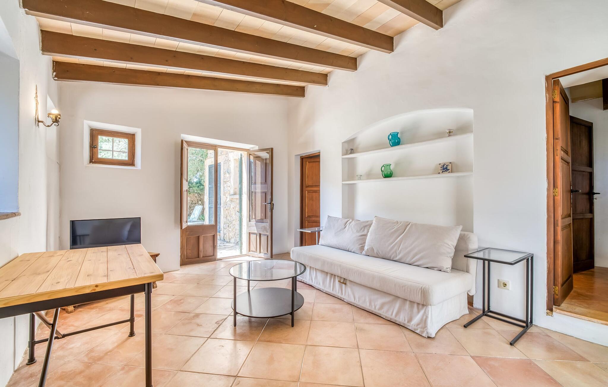 Det traditionelle bondehus "Moli den Guixo" er et ægte stykke mallorcinsk historie, der tilbyder jer en unik ferie. Feriehuset med et gammelt mølletårn kombinerer charmen fra originalt Mallorca med kvaliteten af ??et moderne og komfortabelt feriehus. Haven byder på en fantastisk atmosfære med frodige beplantninger, charmerende skyggefulde siddepladser og terrasseområder. Der er også en spiseplads ved siden af ??murstensgrillen og liggestole i skyggen af ??de majestætiske planter ved poolen. Fra tagterrassen med tårnet kan I nyde en vid udsigt over middelalderens Artà eller de bølgende bakker i denne kystregion. Ligesom udsigten over San Salvador, Artàs vartegn eller stjernehimlen. Derfra kan I også se Via Verde, hvor I nemt kan nå Artà til fods uden at skulle krydse en hovedgade. Hygge spiller også en stor rolle inde i huset. Under renoveringen blev interiørets oprindelige karakter bevaret med de skabte nicher og murstensbænke. Dette fremstår behageligt puristisk, reduceret og samtidig yderst behageligt. Hvælvede lofter fremhæver de åbne opholds- og køkkenområder. Terracotta fliser, hvide vægge, en hyggelig niche, hvor et spisebord inviterer til lange middage. Pejsen i opholdsrummet fuldender hyggen. Det ene af de to soveværelser er udstyret med en dobbeltseng, det andet med to enkeltsenge. Hvert soveværelse har et tilstødende badeværelse med badekar - individuelt og moderne udstyret. Når I forlader huset og krydser den overdækkede udendørs spiseplads, kommer I ind i en anden fløj af bygningen, hvor den femte soveplads er i form af en komfortabel sovesofa i en stue samt et brusebad. Forhåbentlig har vi kunnet vække jeres nysgerrighed omkring "Moli den Guixo" - vi er begejstrede for den karismatiske mølleejendom, der forener det nye og gamle Mallorca. Stuehuset "Moli den Guixo" er omgivet af en smuk have fuld af palmer og andre middelhavsplanter. Den historiske, moderniserede ejendom ligger tæt på vandrestien Via Verde, der forbinder Artá ??med Manacor. I den nærliggende by Artà kan I gøre jeres daglige indkøb og spise fremragende på caféerne og restauranterne. Med en kort køretur kan I nå forskellige strande.