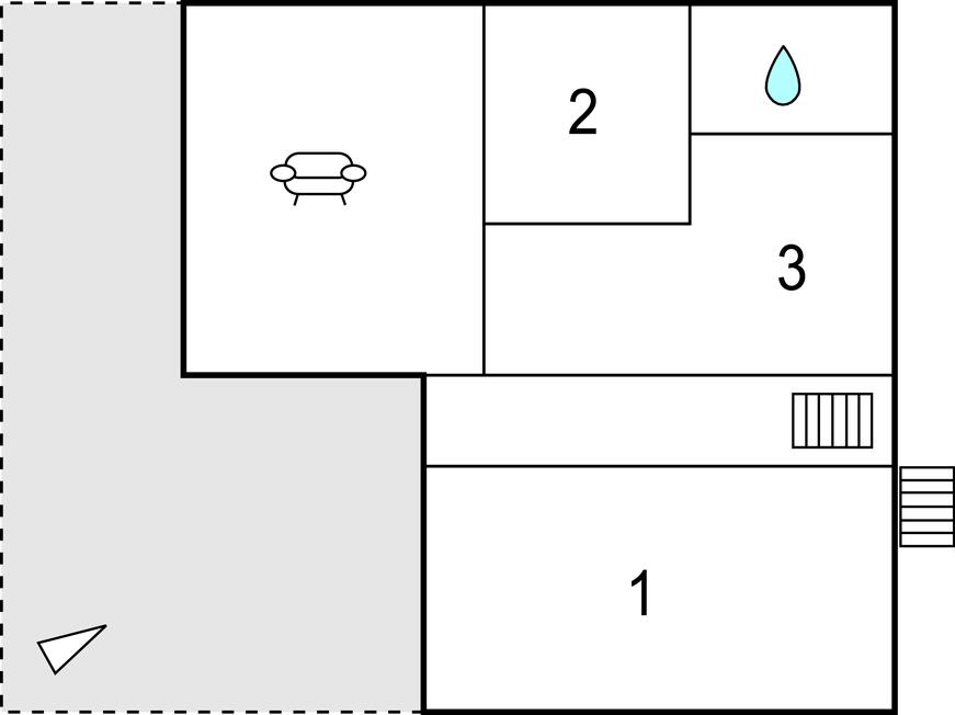 Opholdsstue 25m2 - 1 Soveplads. (Sofa, madras eller lignende).