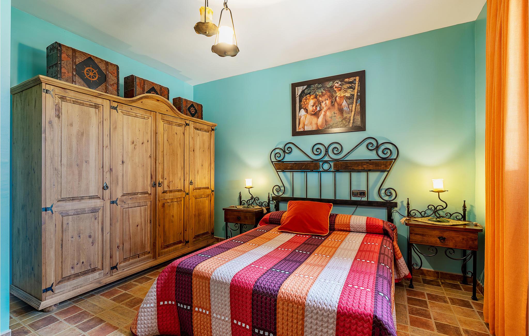 Dette skønne feriehus ligger i et naturreservat lige ved siden af en olivenlund. Huset er godt og praktisk udstyret og inviterer jeres familie og jeres firbenede ven til en afslappende ferie. I de lyse og farverigt indrettede lokaler er der en hyggelig, hjemlig atmosfære, hvor I med det samme føler jer hjemme. Glæd jer til at træde ind i den idyllisk beliggende og private ejendom med pool og flere hyggelige hjørner til stille timer. Lad jeres børn og deres kæledyr lege udenfor, og sæt jer godt til rette på et skyggefuldt sted med ferielæsningen. Afslut dagen med lækker tapas og et koldt glas rosé, mens I lader blikket vandre over det dejlige, bakkede landskab.