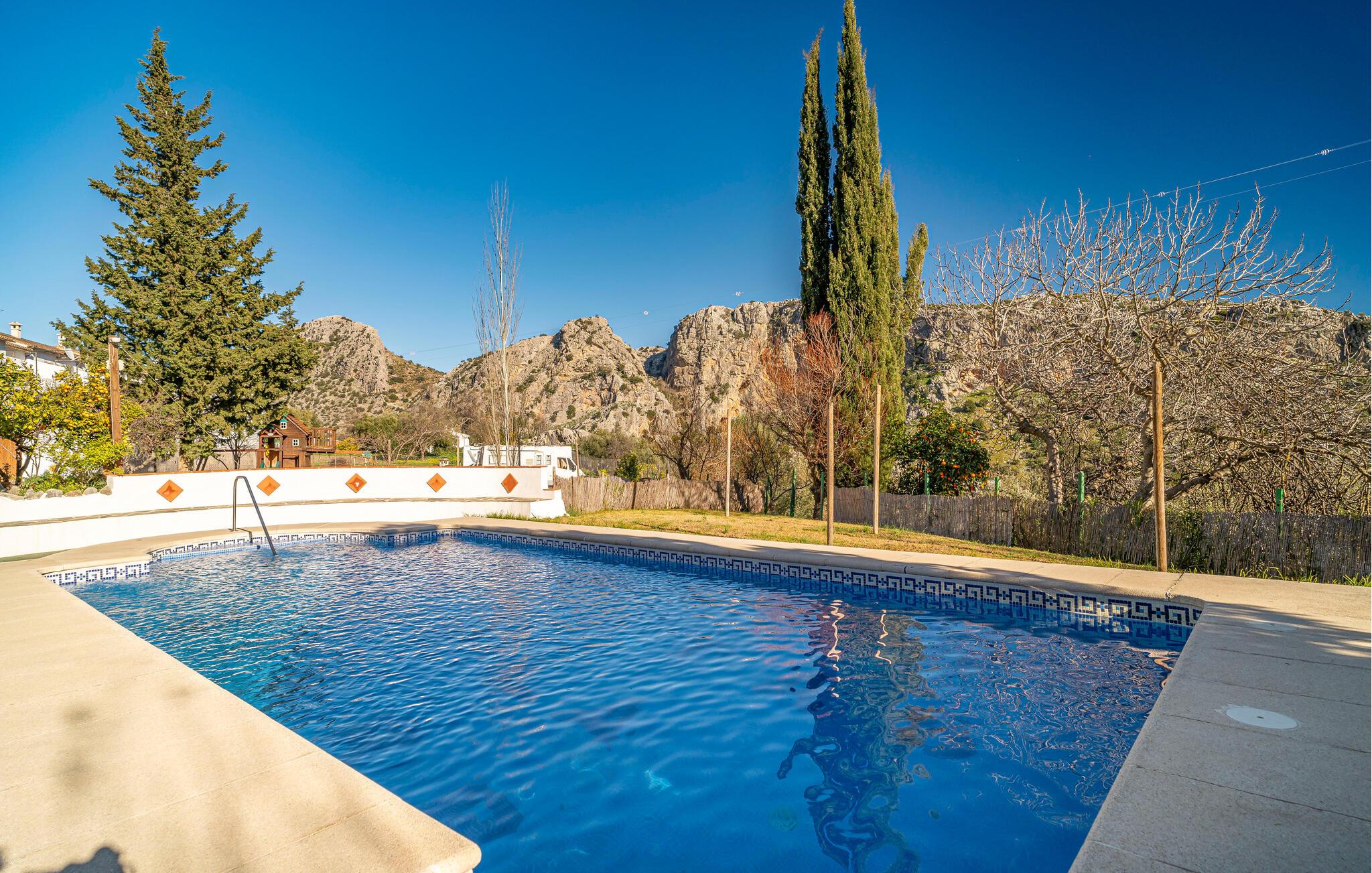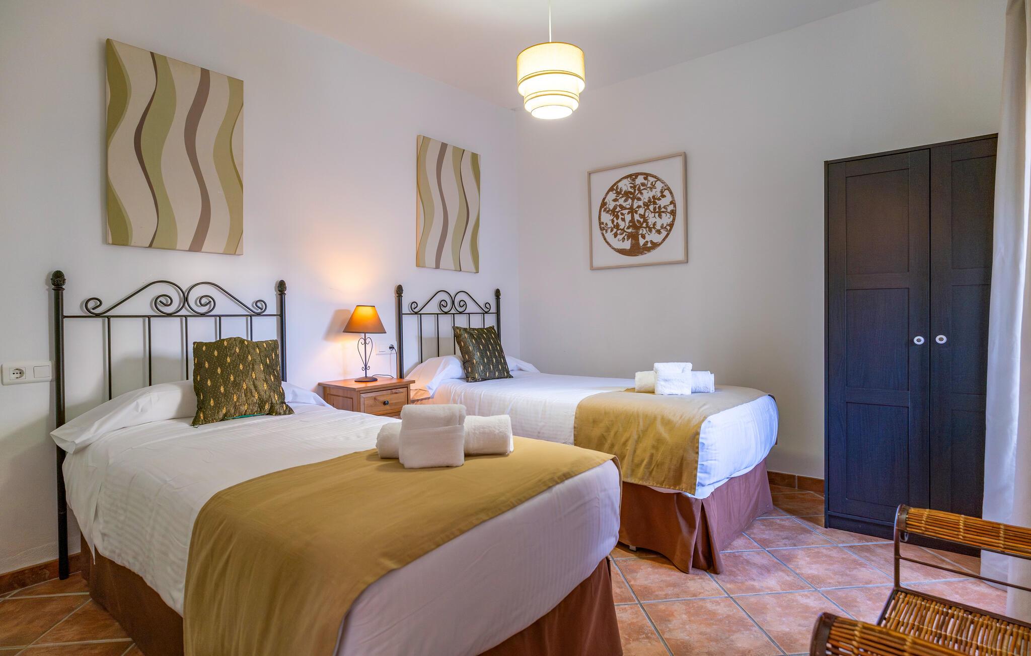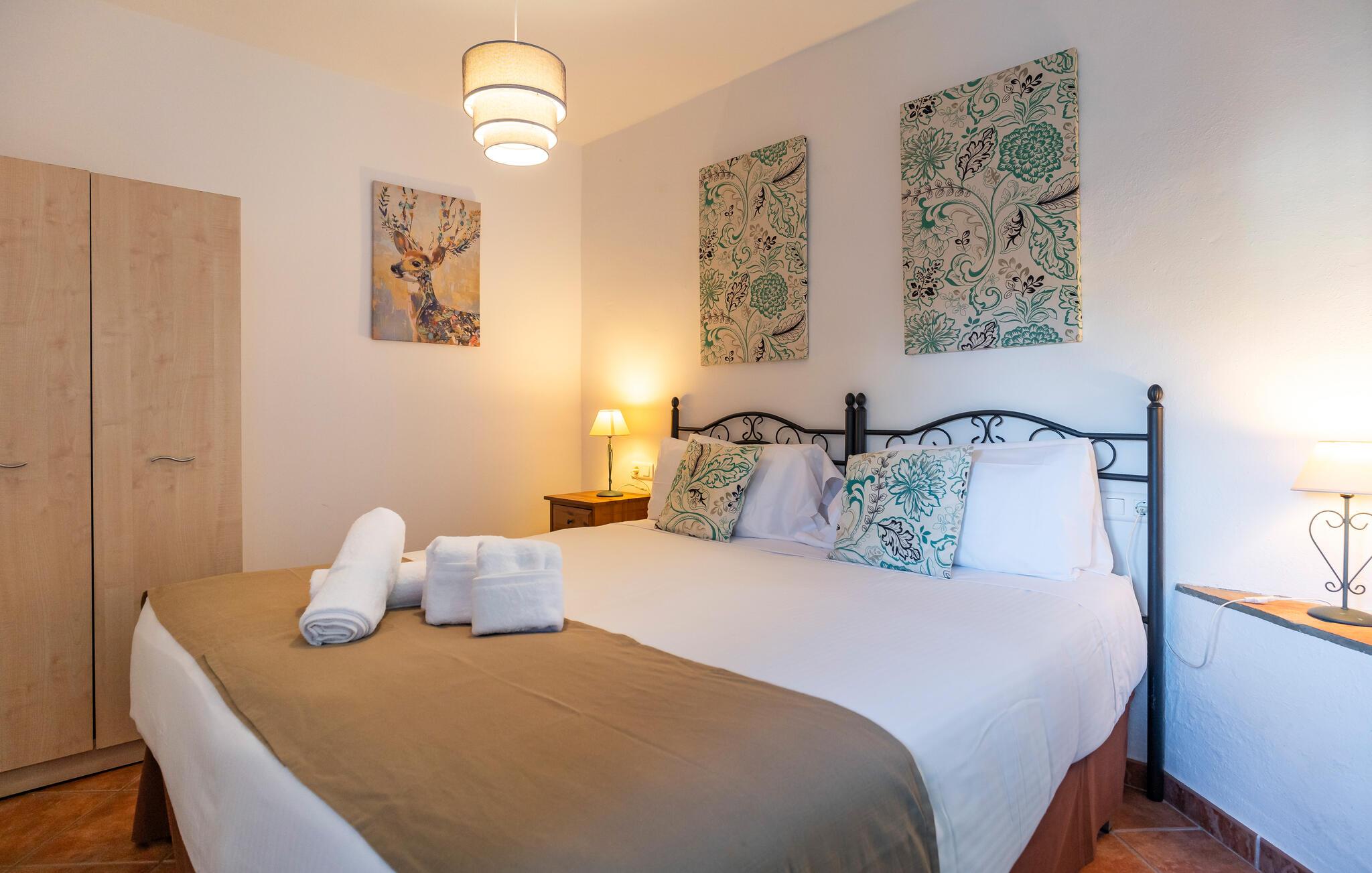 Langt væk fra hverdagen og indlejret i Andalusiens maleriske landskab tilbyder dette komfortable feriehus jer det ideelle tilflugtssted for en afslappende ferie. Lad jer inspirere af den vidunderlige udsigt, mens I laver mad i det moderne køkken. Efter en begivenhedsrig dag kan I føle jer godt tilpas i sofaen og streame en god serie. På køligere aftener giver pejsen en ekstra dosis komfort.