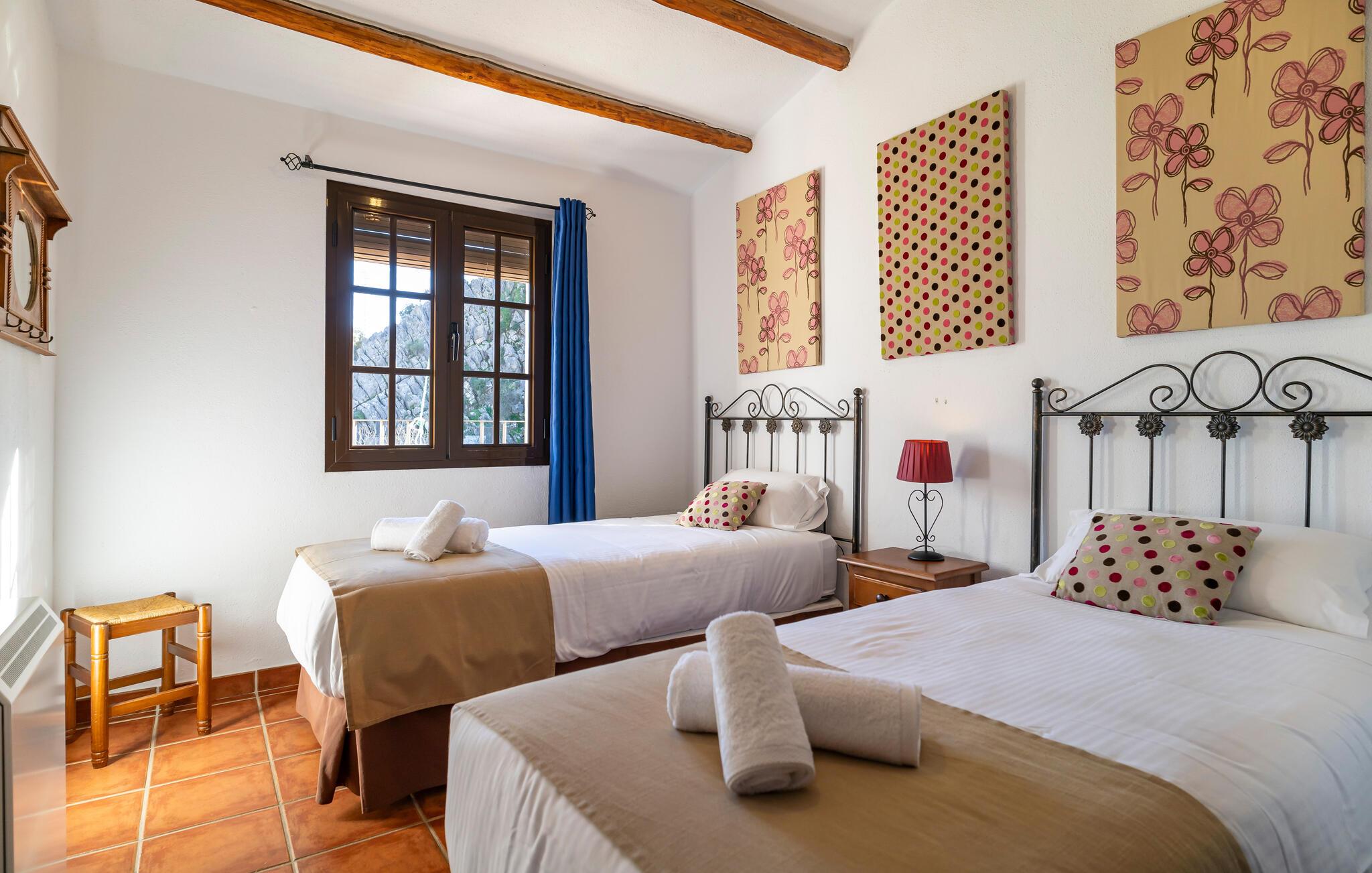 Langt væk fra hverdagen og indlejret i Andalusiens maleriske landskab tilbyder dette komfortable feriehus jer det ideelle tilflugtssted for en afslappende ferie. Pisk lækre retter op i det veludstyrede køkken og server dem i den indbydende spiseplads. Efter en begivenhedsrig dag kan I føle jer godt tilpas i sofaen og streame en god serie eller tilbringe tid sammen over en spilleaften.