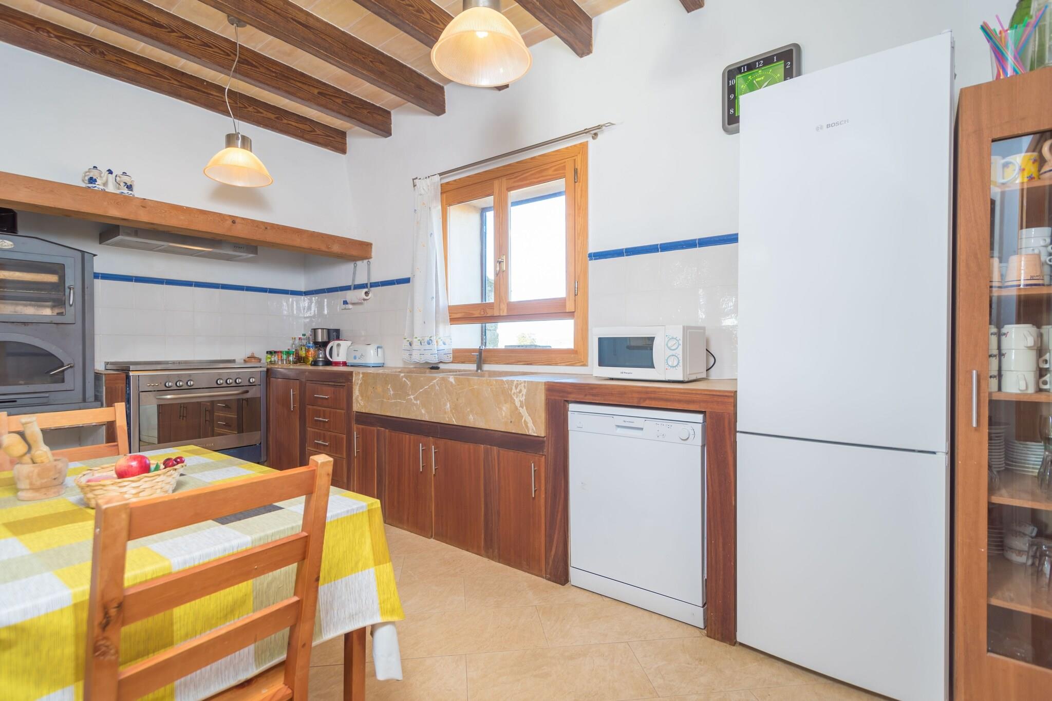 Middelhavet Pool Escape Nyd endeløse sommerdage på denne rummelige finca med en 7x4 m klorpool, liggestole og skyggefulde områder til læsning eller afslapning. Terrassen har en indbygget grill og et stort bord til 12, perfekt til fælles måltider udendørs. Den indhegnede ejendom sikrer privatlivets fred, samtidig med at den tilbyder masser af plads til, at kæledyr kan færdes sikkert, hvilket gør den ideel til familier, der rejser med hunde. Komfortabel familieliv Fordelt på tre etager og 400 m² kombinerer huset enkel stil med moderne bekvemmeligheder. Et opholds-, spise- og køkkenområde i åbent plan inviterer til sammenkomster, komplet med satellit-tv, brændeovn og et fuldt udstyret køkken med gaskomfur, ovn og opvaskemaskine. Soveværelserne er spredt over etager, de fleste med en-suite badeværelser, dobbeltsenge og ventilatorer. Ekstra inkluderer et legerum med konsoller, centralvarme, en barneseng, høj stol, vaskefaciliteter og rigelig plads til, at kæledyr kan hvile komfortabelt indendørs. Beliggenhed og aktiviteter på landet Beliggende i det rolige Montuïri, kun 2 km fra landsbyen, kan gæsterne nyde lokale butikker, restauranter og markeder. Udforsk Mallorcas strande som Port d'Alcudia eller El Arenal, eller vandre i Tramuntana-bjergene. Kæledyrsvenlige aktiviteter omfatter gåture i landskabet, rolige strande i nærheden, hvor hunde er velkomne, og lokale stier perfekt til aktive kæledyr. Med Palmas attraktioner, golf ved Son Gual og turkisblå sydlige farvande inden for rækkevidde, tilbyder beliggenheden noget for ethvert medlem af familien, inklusive lodne venner.
