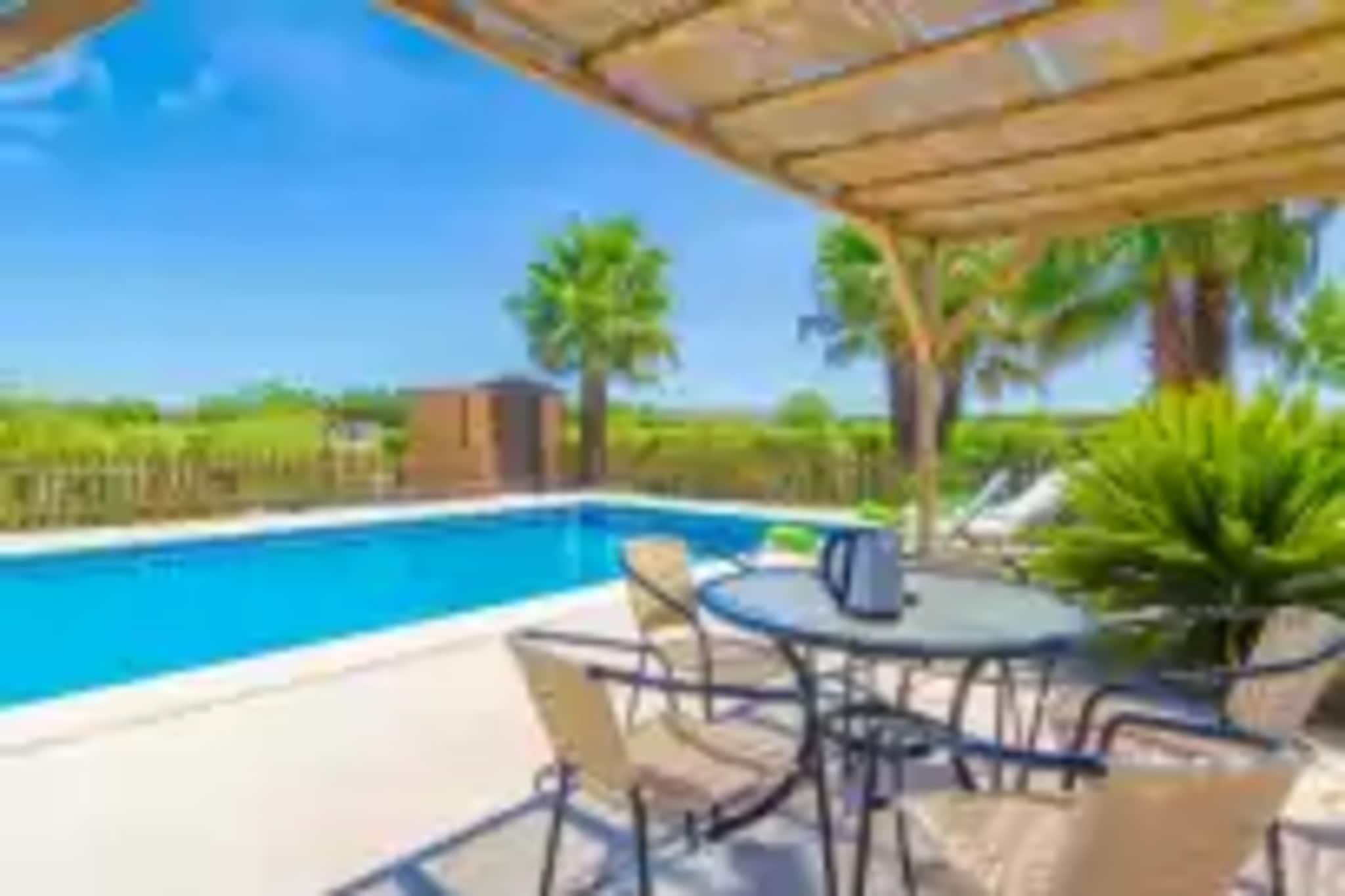 In dit prachtige, rustieke maar moderne huis kunt u genieten van de landelijke sfeer van het binnenland van Mallorca, maar toch dichtbij alles zijn. Buiten vinden we een indrukwekkend chloorbad van 12 x 5 meter en een diepte van 0,7 tot 1,9 meter. Het is omgeven door een prachtig terras met verschillende tafels en stoelen waar u 's middags vermout kunt nuttigen en hangmatten waar u comfortabel kunt zonnebaden. Vanaf het terras hebben we toegang tot de veranda die is ingericht met banken en oude gerestaureerde schommelstoelen waar u van de zonsondergang kunt genieten, en een rustieke en originele tafel waar u buiten kunt eten of dineren van de heerlijke gerechten bereid op de barbecue die tot uw beschikking staat. Voor de rustelozen is er een tafeltennistafel, een basketbalveld, een trampoline en zelfs een sauna. Het terrein van 3.400 m2 is omheind en hoewel er enkele buren in de omgeving zijn, is de privacy volledig. Het hele huis is verdeeld over één verdieping. Vanaf de prachtige veranda hebben we toegang tot het interieur van het huis dat de woonkamer en keuken in dezelfde ruimte verenigt. De huidige rustieke stijl wordt binnen voortgezet, in een ruimte met houten balken en stenen muren, satelliettelevisie, Wi-Fi-verbinding en airconditioning. Het heeft een eettafel voor zes personen die zich naast de keuken bevindt, die een keramische kookplaat heeft en is uitgerust met alles wat u nodig heeft om heerlijke zomerse stoofschotels te bereiden. Er staat ook een tafel met vier stoelen om comfortabel te ontbijten. Ook op de begane grond vinden we de drie slaapkamers. Twee hebben een tweepersoonsbed en de derde heeft een eenpersoonsbed. Alle drie zijn voorzien van airconditioning en ze hebben allemaal kasten of kleedkamers. U vindt twee volledige badkamers met douche om het hele huis te bedienen. Ook vindt u er een wasmachine, strijkijzer en strijkplank en als u met kinderen reist heeft u een kinderstoel en een kinderbedje tot uw beschikking. Montuiri is een klein stadje in het centrum van Mallorca, dicht bij alle delen van het eiland. U vindt middeleeuwse overblijfselen en prachtige landschappen waar u kunt genieten van de rust van het platteland. In de stad op 2 km afstand vindt u basisvoorzieningen, evenals enkele winkels en restaurants. Het dichtstbijzijnde strand is sa Rápita, op 30 km afstand. Voor eventuele extra kosten kunt u contact opnemen met de adverteerder. Wij accepteren geen huisdieren. Het vieren van evenementen is niet toegestaan. Er is buiten parkeergelegenheid voor 4 auto's. Afstanden Strand: 30,1 km - Platja de Se Rà pita Luchthaven: 23 km - Son Sant Joan Golfbaan: 22,8 km - Golf Son Gual Stad: 2 km - Montuiri Treinstation: 13,9 km - c/ de l'Estació, Sineu Bushalte: 2 km - Camà Manacor, Montuiri Veerboot: 33,6 km - Haven van Palma Ziekenhuis: 26,3 km - Son Llà tzer, Palma Toeristenvergunning: ETV/7254Bij de ingang dient u de Ecotasa (toeristenbelasting van de Balearen) contant te betalen. Het bedrag varieert tussen EURO 0,55 / per nacht per persoon in het laagseizoen en EURO 2,2 / per nacht per persoon in het hoogseizoen. Vanaf de negende dag wordt het met de helft verminderd. Personen onder de 16 jaar uitgesloten. Bij de ingang dient u de borg rechtstreeks aan de eigenaar te betalen.