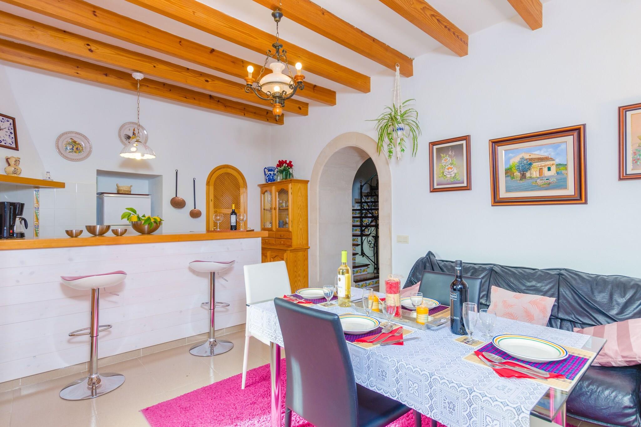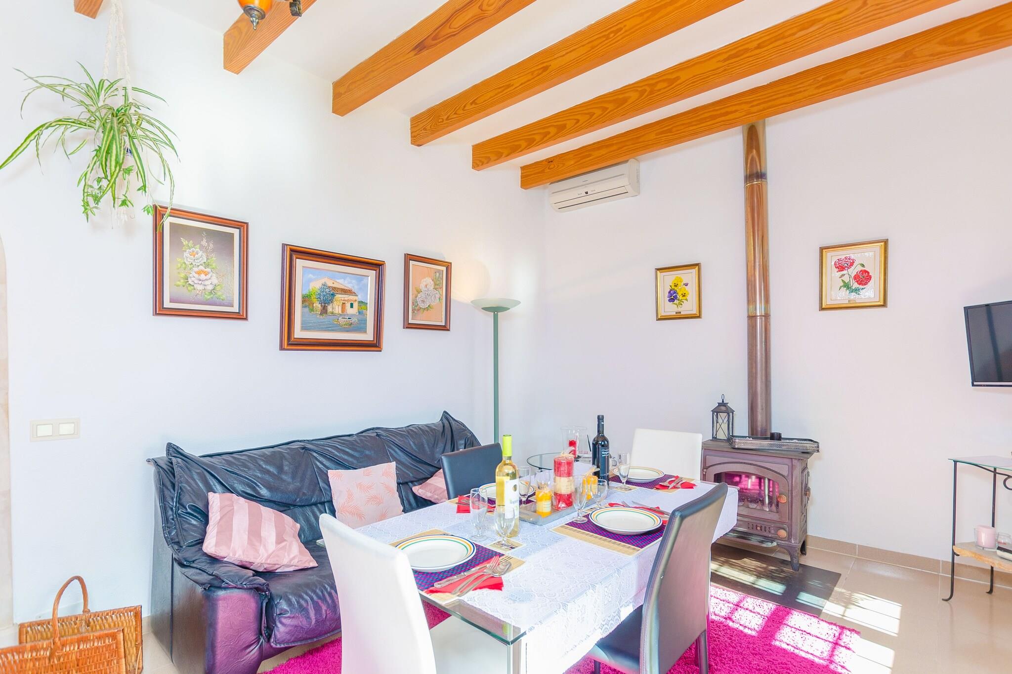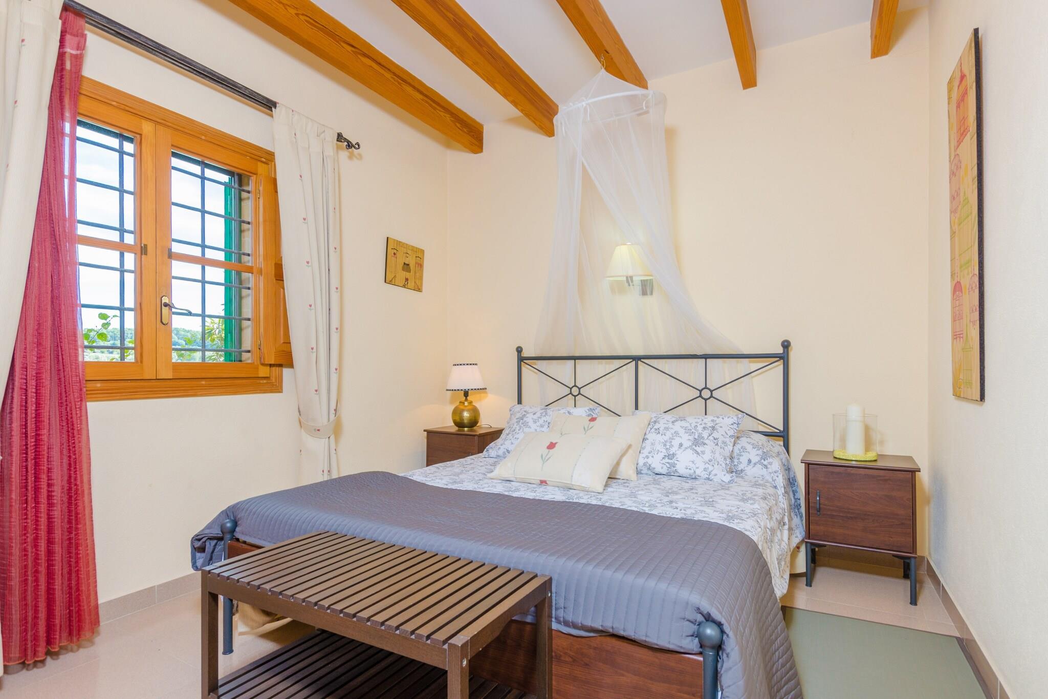 Beliggende i en fungerende gård tilbyder denne finca et fredeligt tilflugtssted omgivet af frodige grønne områder, blomstrende planter og frugttræer såsom oliven, citron og mandel. Den 15 x 4 m saltvandspool (0,9 til 1,9 m dyb) er perfekt til at svømme eller slappe af på en af ??seks solsenge under to parasoller. Slap af på gyngesofaen eller nyd måltider på den møblerede veranda med en indbygget grill under pergolaen. Indenfor er opholds-, spise- og køkkenområdet i åbent plan med aircondition og badet i varme, naturlige toner. Det fuldt udstyrede gaskøkken inkluderer en amerikansk bar med taburetter, perfekt til social madlavning. Stueetagen huser to soveværelser med dobbeltsenge (det ene med aircondition) og et brusebadeværelse. Ovenpå er et tredje soveværelse med to enkeltsenge og et separat toilet. En barneseng og høj stol er tilgængelige på anmodning. Beliggende kun 3 km fra den charmerende landsby Montuiri, med vigtige tjenester og fremragende øforbindelser. Den nærmeste strand, Playa de Palma, ligger omkring 25 km væk. Parkering til 2 biler. Kæledyr og arrangementer er ikke tilladt. Turistskat gælder; Aircondition er valgfrit mod et ekstra gebyr.