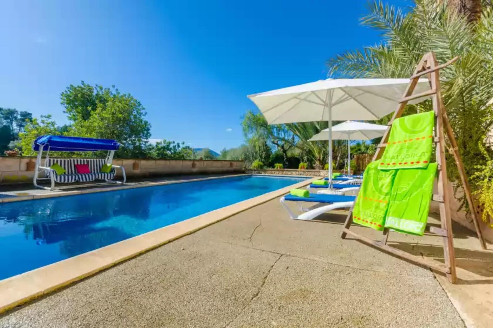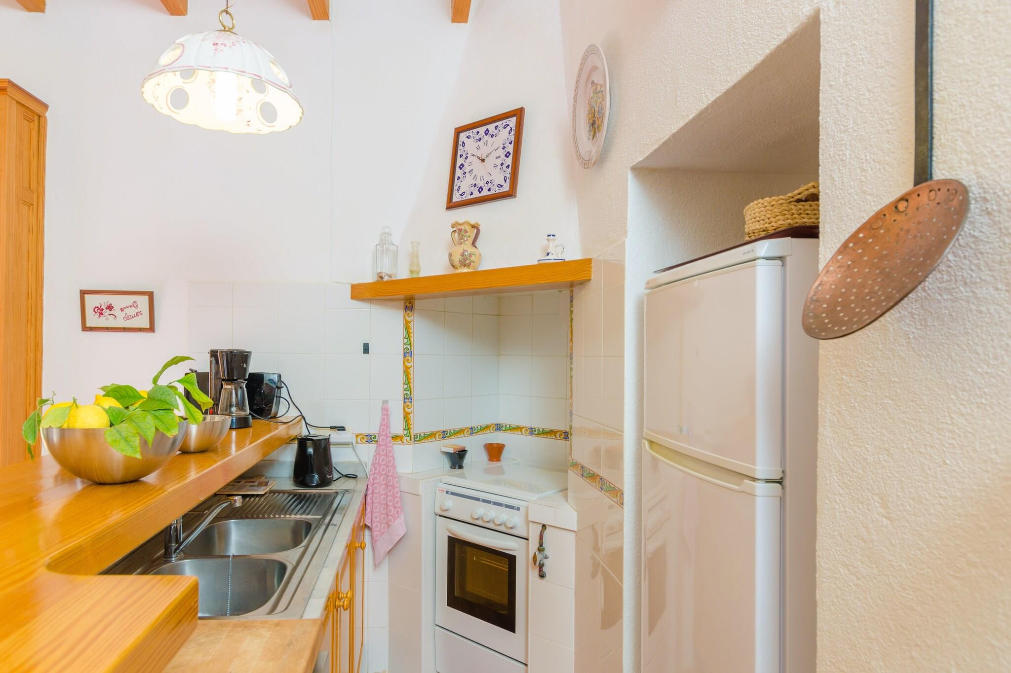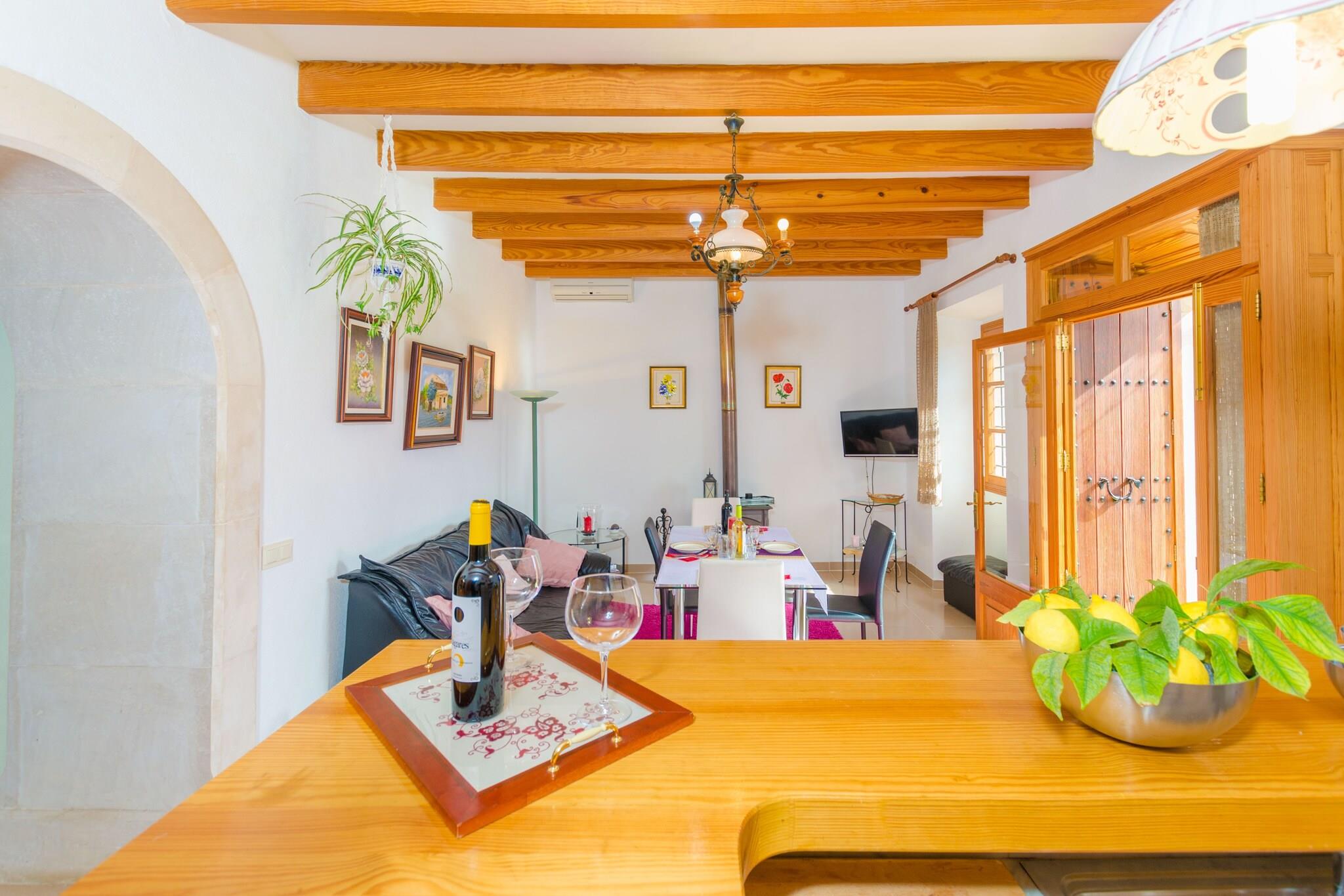 Beliggende i en fungerende gård tilbyder denne finca et fredeligt tilflugtssted omgivet af frodige grønne områder, blomstrende planter og frugttræer såsom oliven, citron og mandel. Den 15 x 4 m saltvandspool (0,9 til 1,9 m dyb) er perfekt til at svømme eller slappe af på en af ??seks solsenge under to parasoller. Slap af på gyngesofaen eller nyd måltider på den møblerede veranda med en indbygget grill under pergolaen. Indenfor er opholds-, spise- og køkkenområdet i åbent plan med aircondition og badet i varme, naturlige toner. Det fuldt udstyrede gaskøkken inkluderer en amerikansk bar med taburetter, perfekt til social madlavning. Stueetagen huser to soveværelser med dobbeltsenge (det ene med aircondition) og et brusebadeværelse. Ovenpå er et tredje soveværelse med to enkeltsenge og et separat toilet. En barneseng og høj stol er tilgængelige på anmodning. Beliggende kun 3 km fra den charmerende landsby Montuiri, med vigtige tjenester og fremragende øforbindelser. Den nærmeste strand, Playa de Palma, ligger omkring 25 km væk. Parkering til 2 biler. Kæledyr og arrangementer er ikke tilladt. Turistskat gælder; Aircondition er valgfrit mod et ekstra gebyr.