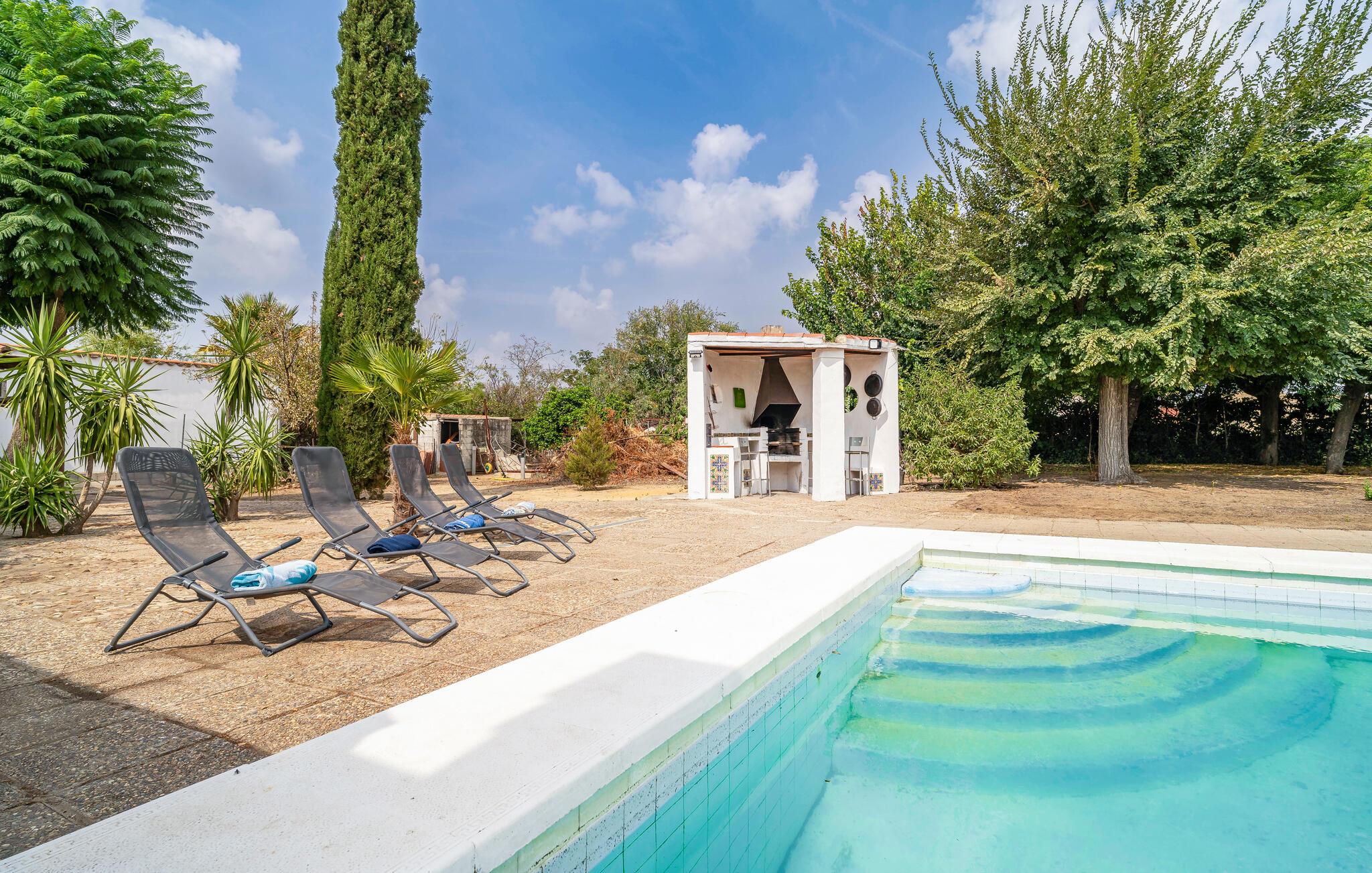 Beliggende i et roligt område har Villa Virgen de Aranzazu i Moron de la Frontera en rummelig have, der indbyder til at opholde sig udendørs. Slap af i skyggen af træerne, eller nyd en dag fuld af leg og sjov. Den private pool, omgivet af indfødte planter og komfortable solvogne, er det ideelle sted at køle af og slappe af. Lige ved siden af finder I et hyggeligt grillområde, perfekt til hyggelige grillaftener med familie og venner under den funklende stjernehimmel.