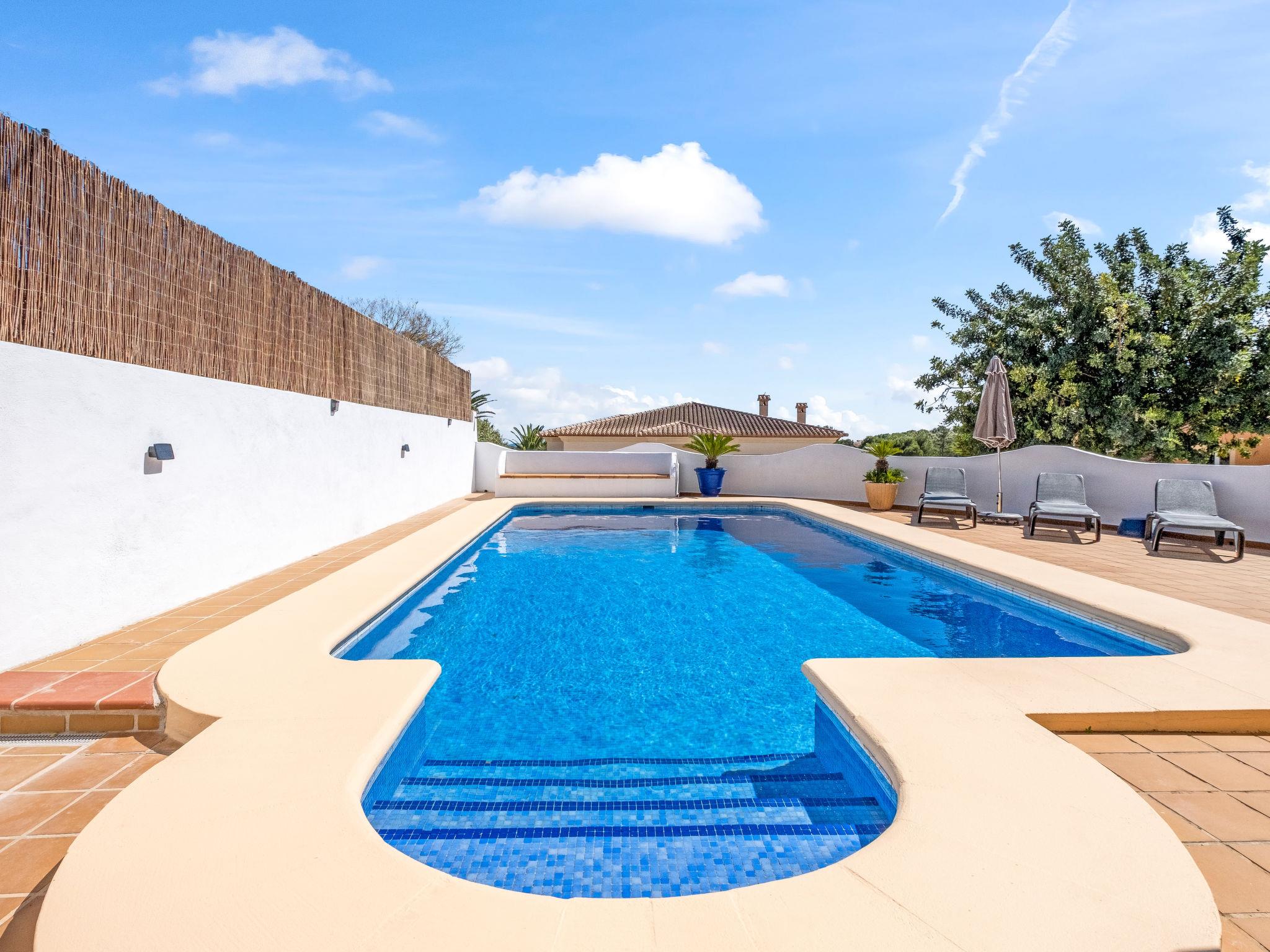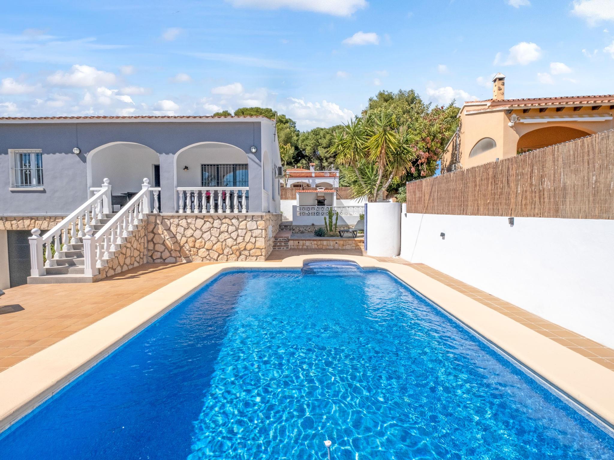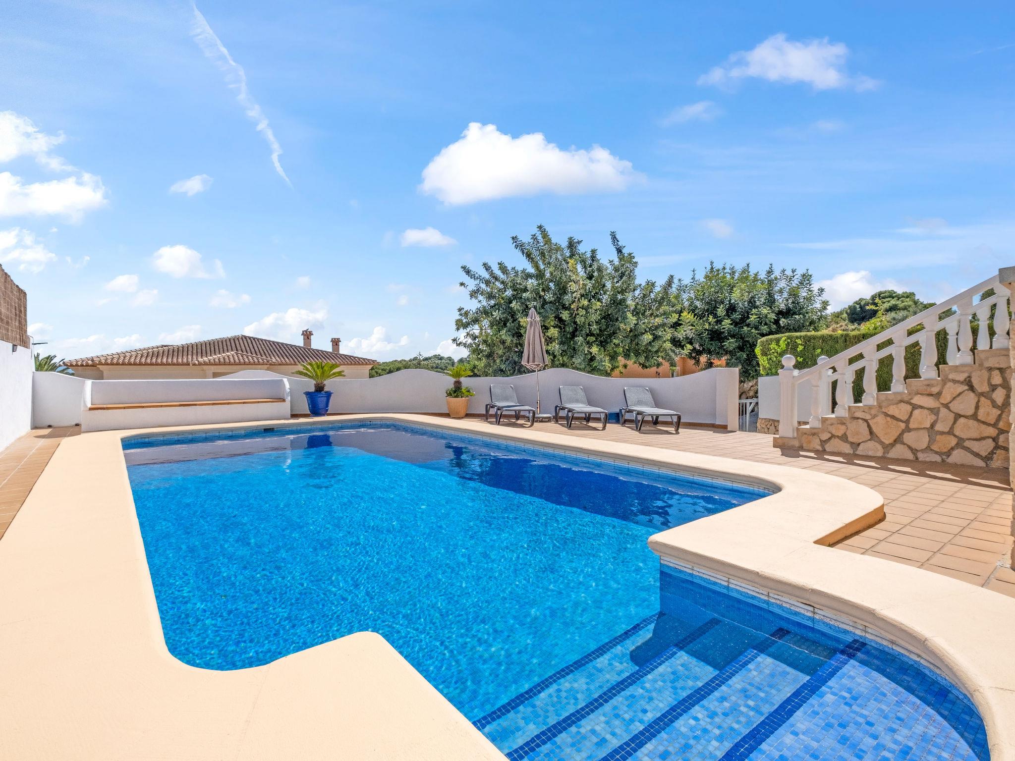 Cometa: Single-family house "Himalaya". 1.5 km from the centre of Moraira, in a quiet position, 250 m from the sea. Private: property 770 m2, swimming pool (8 x 4 m, seasonal availability: 01.Jan. - 31.Dec.) with internal staircase. Outdoor shower, terrace, garden furniture, barbecue. Supermarket 1.5 km, restaurant, bar 300 m, bus stop 1.9 km, sandy beach 1.2 km, swimming bay 250 m. The owner does not accept any youth groups.