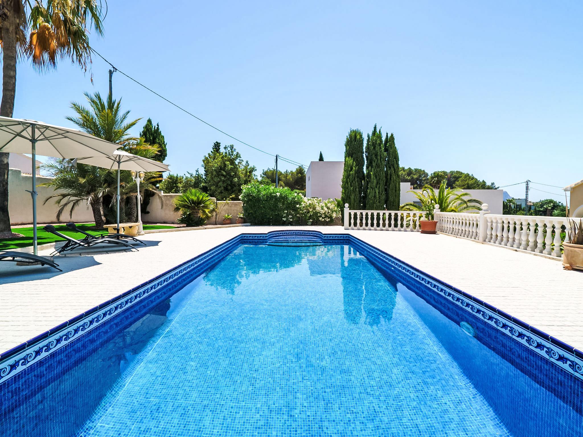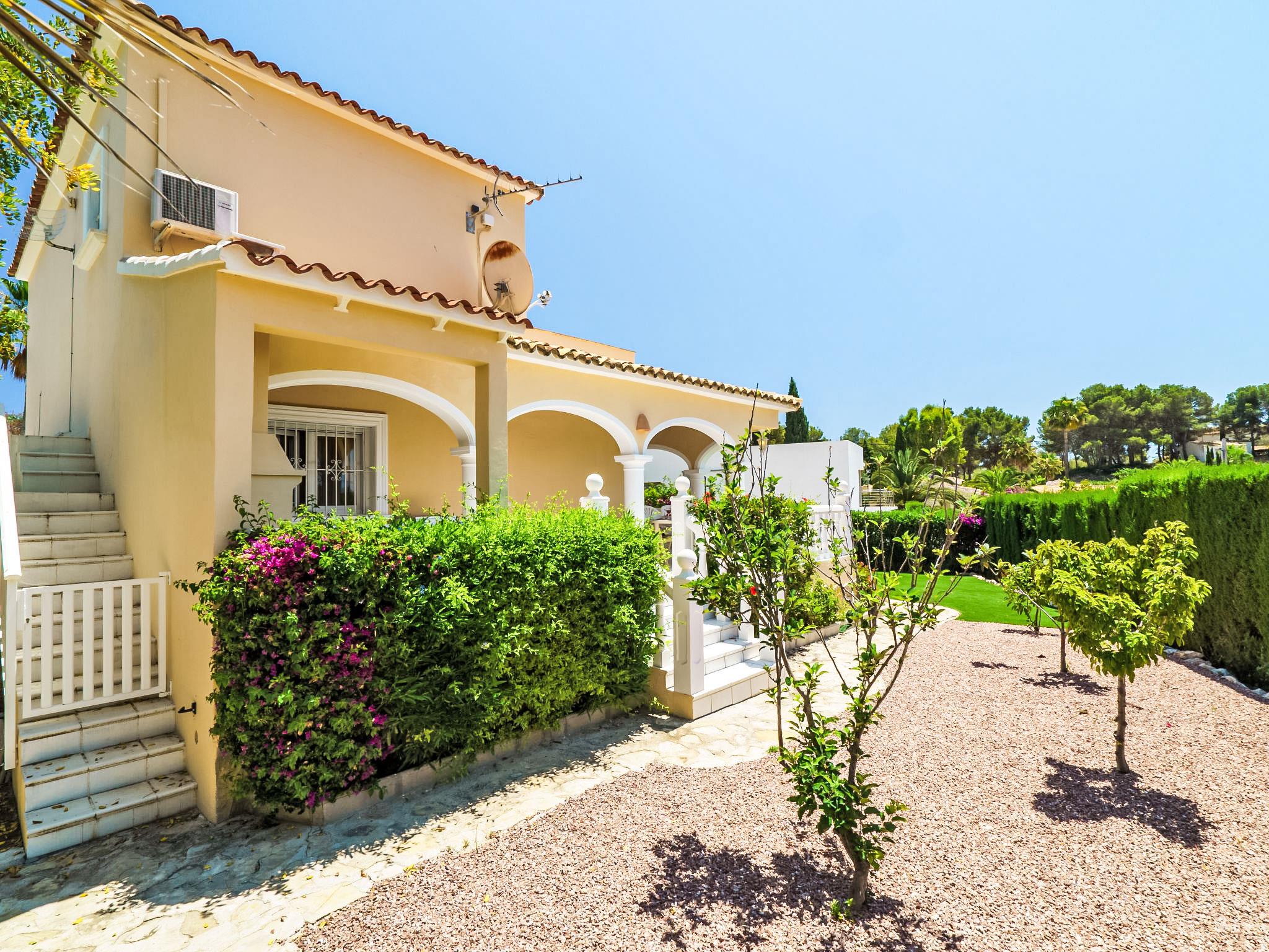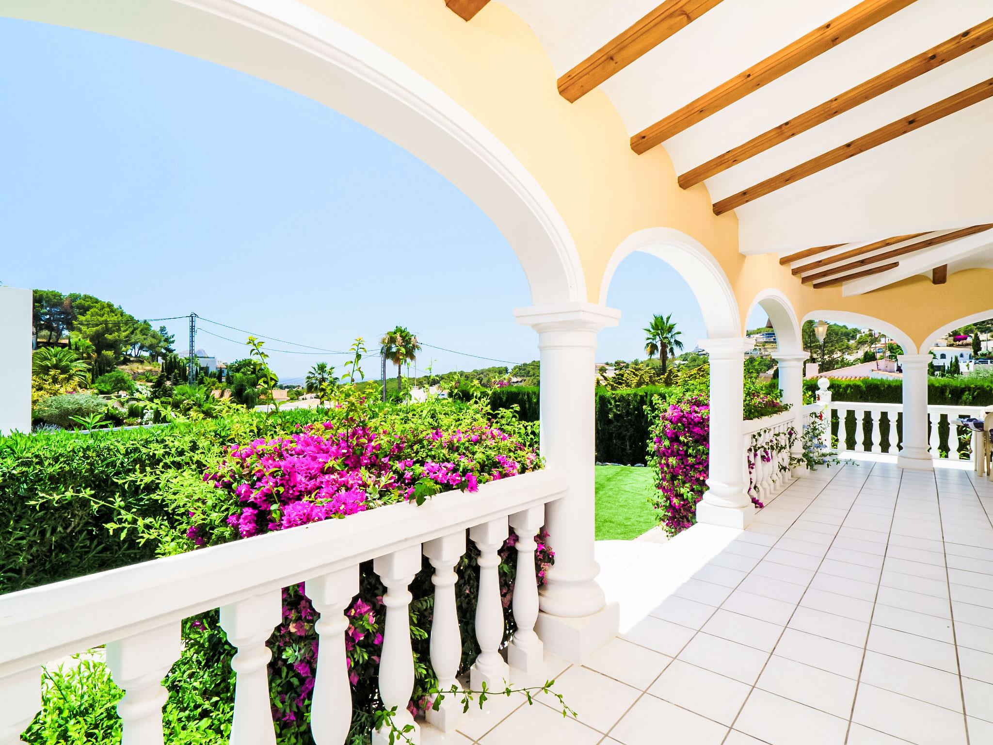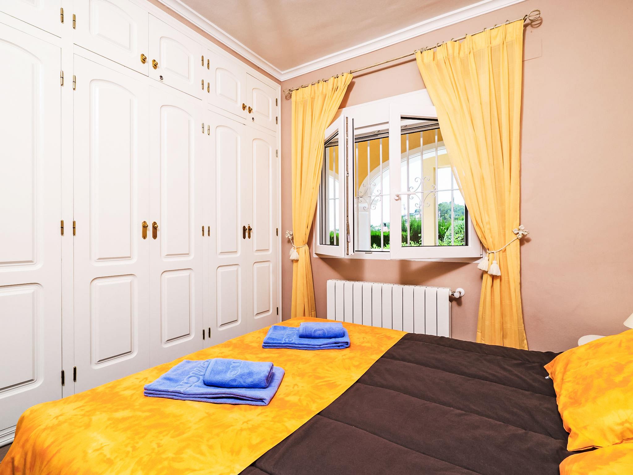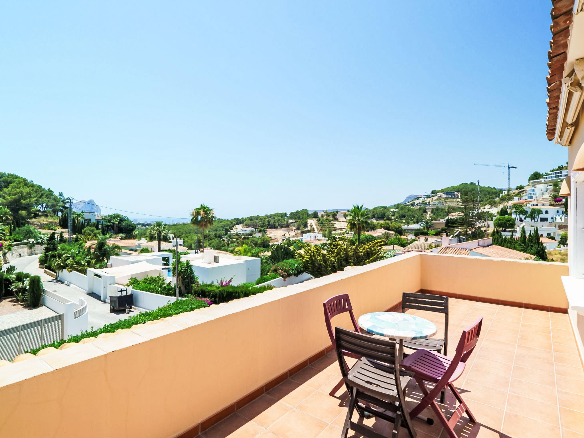 Los Bancales Benissa: Very beautiful, cosy, comfortable house "Alina", 2 storeys. In the district of Benissa 8 km from the centre of Moraira, 8 km from the centre of Calpe, in a secluded, quiet, sunny position, 1.5 km from the sea, 1.5 km from the beach, in a cul-de-sac. Private: large, beautiful, well-kept garden 910 m2 (fenced) with lawn and trees, swimming pool angular (4 x 10 m, depth 140 - 220 cm, seasonal availability: 01.Jan. - 31.Dec.) with internal staircase. Outdoor shower, terrace, garden furniture. In the house: internet access, WiFi, washing machine. Roofed, parking (for 3 cars) on the premises. Carport. Supermarket 1.5 km, restaurant 1.5 km, bus stop 7 km, sandy beach 5 km, swimming bay 1.5 km. Golf course (9 hole) 8 km. Please note: car recommended. Suitable for families, suitable for seniors. The owner does not accept any youth groups.