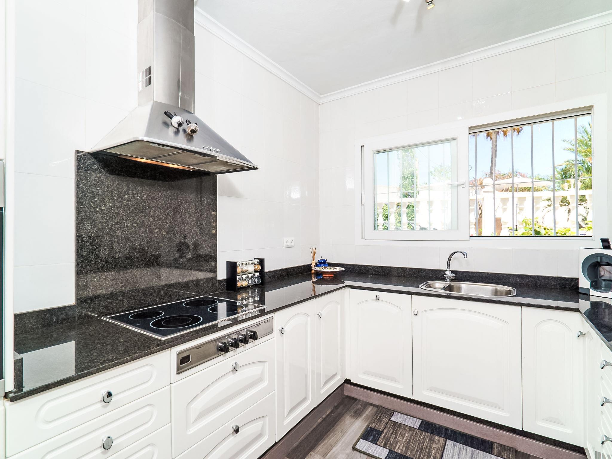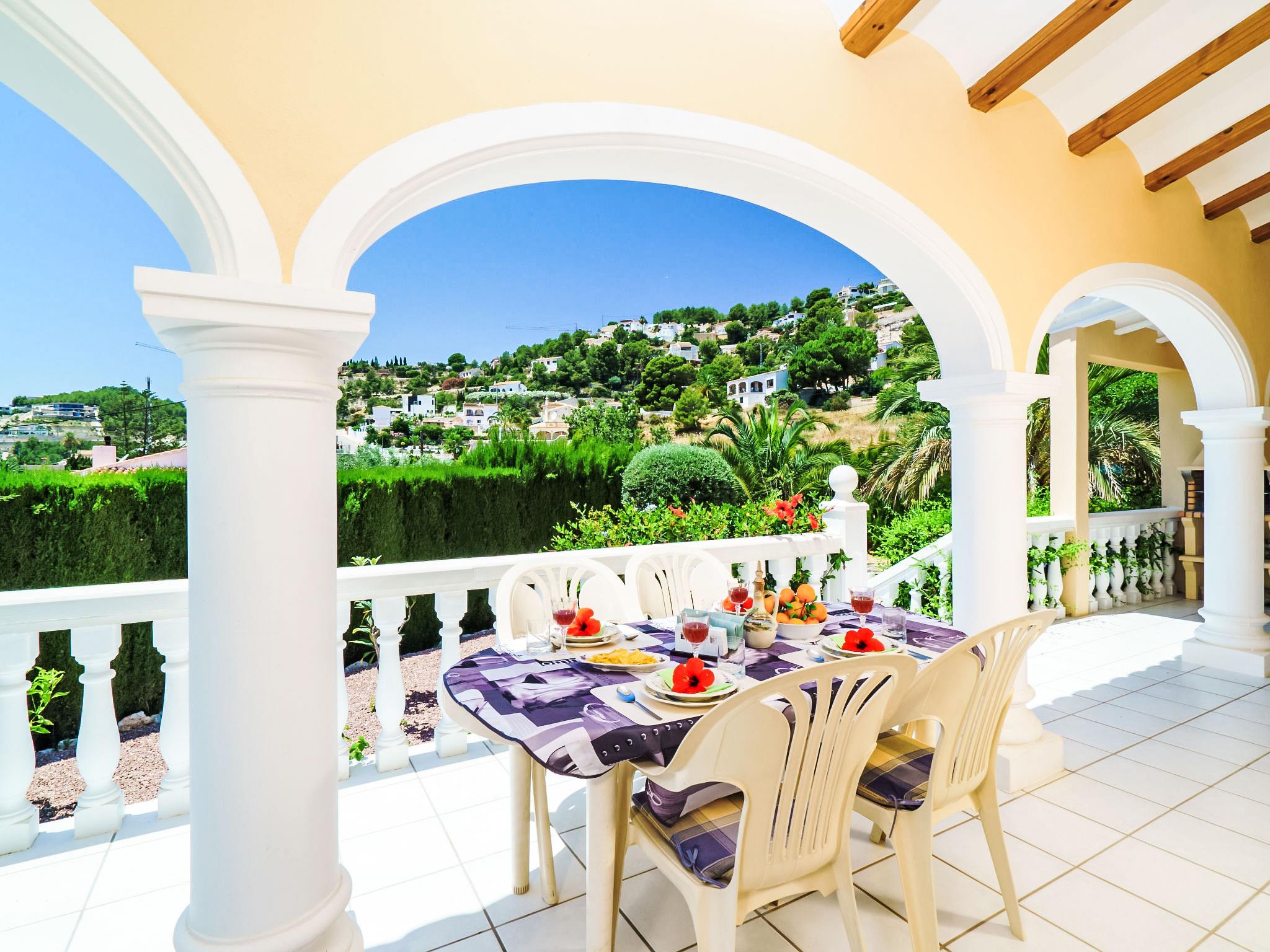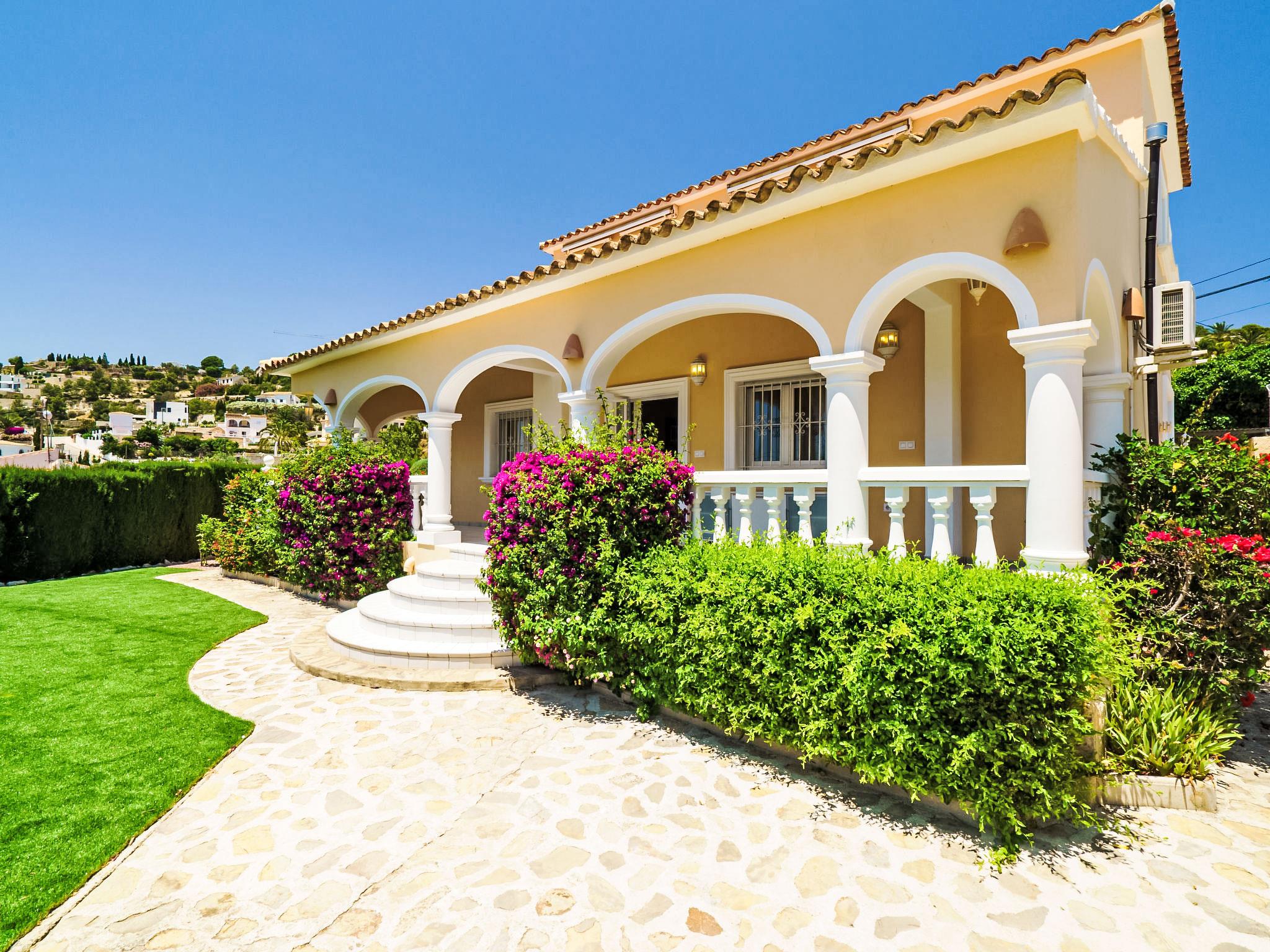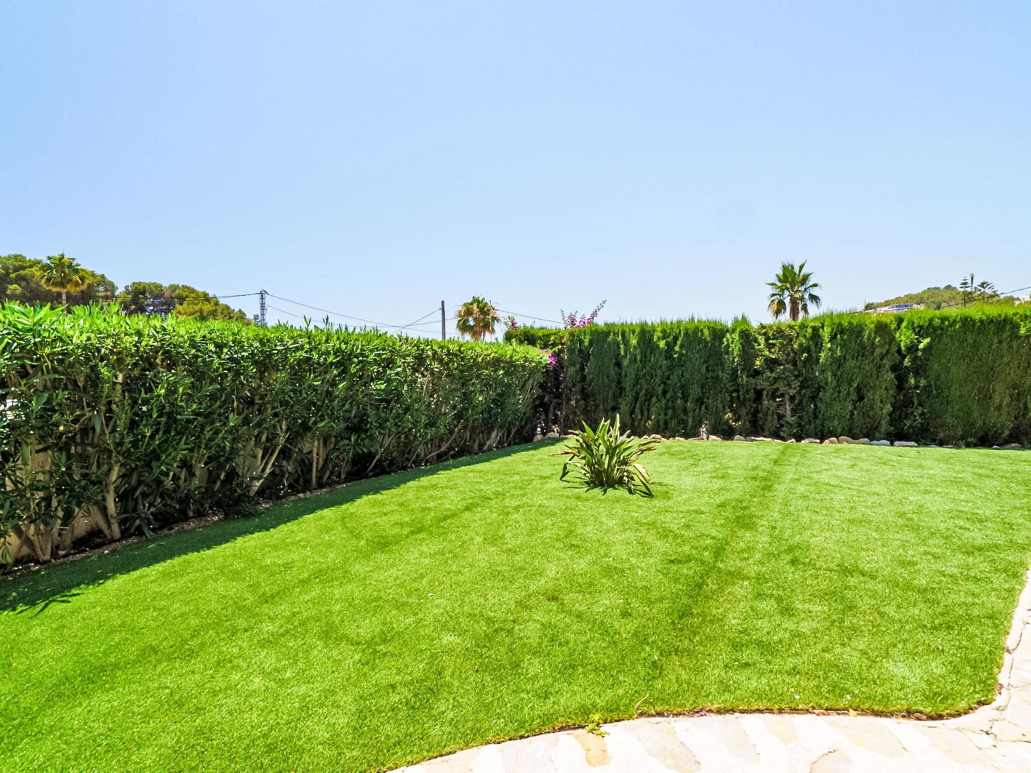 Los Bancales Benissa: Very beautiful, cosy, comfortable house "Alina", 2 storeys. In the district of Benissa 8 km from the centre of Moraira, 8 km from the centre of Calpe, in a secluded, quiet, sunny position, 1.5 km from the sea, 1.5 km from the beach, in a cul-de-sac. Private: large, beautiful, well-kept garden 910 m2 (fenced) with lawn and trees, swimming pool angular (4 x 10 m, depth 140 - 220 cm, seasonal availability: 01.Jan. - 31.Dec.) with internal staircase. Outdoor shower, terrace, garden furniture. In the house: internet access, WiFi, washing machine. Roofed, parking (for 3 cars) on the premises. Carport. Supermarket 1.5 km, restaurant 1.5 km, bus stop 7 km, sandy beach 5 km, swimming bay 1.5 km. Golf course (9 hole) 8 km. Please note: car recommended. Suitable for families, suitable for seniors. The owner does not accept any youth groups.