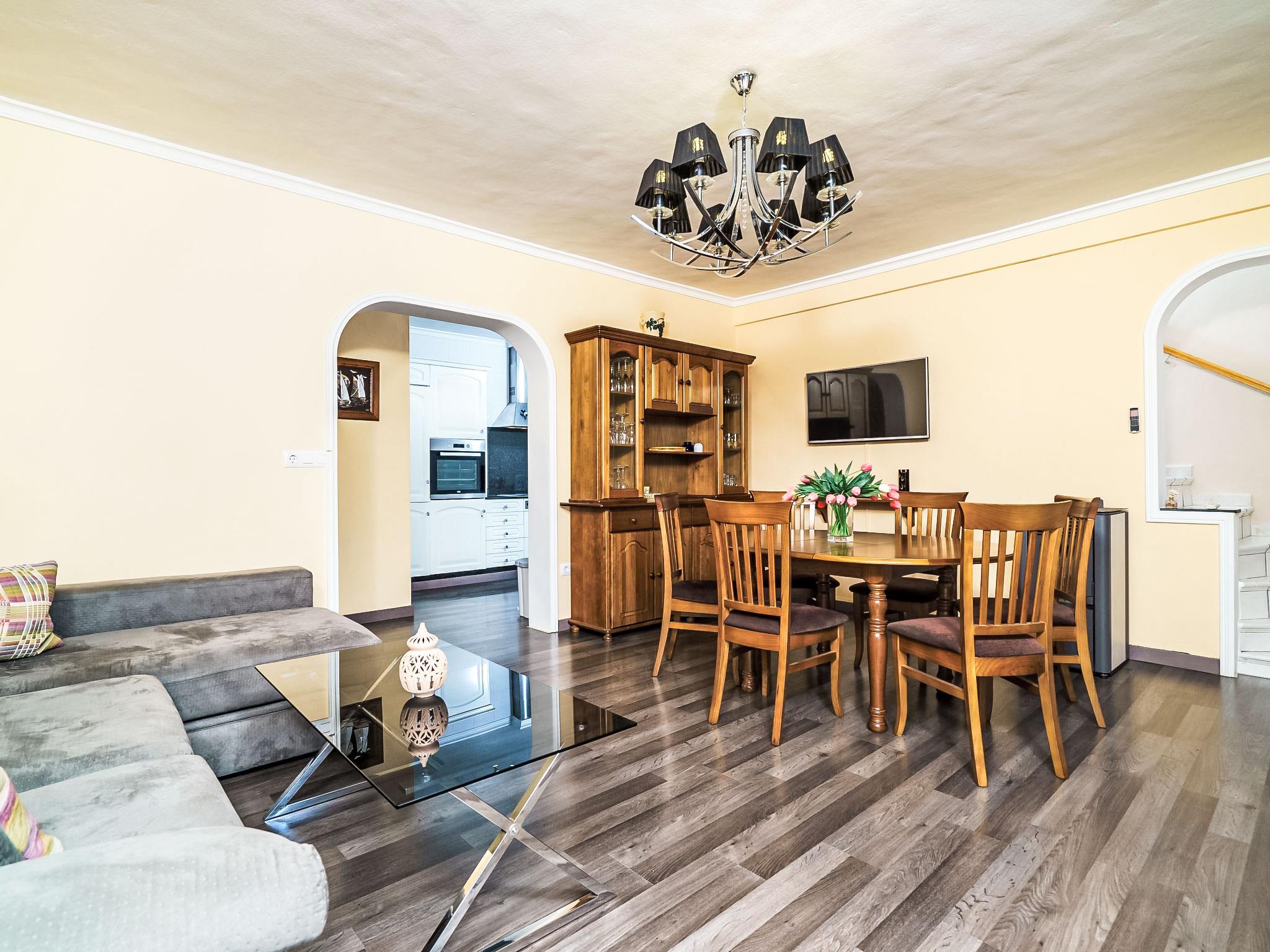 "Alina", 5-room house 190 m2. Comfortable and tasteful furnishings: living/dining room with satellite TV, international TV channels, flat screen and air conditioning. Exit to the terrace. 2 rooms, each room with 1 french bed (160 cm, length 200 cm). Open kitchen (oven, dishwasher, 4 ceramic glass hob hotplates, microwave, freezer, electric coffee machine, Capsules for coffee machine (Dolce Gusto)). Shower/WC. Upper floor: small living room with 1 double sofabed (150 cm, length 200 cm), satellite TV. 1 double bedroom with 2 beds (210 cm, length 200 cm), air conditioning. Bath/WC. Large terrace roofed, south-west facing position, large terrace, patio, south-west facing position. Terrace furniture, barbecue, deck chairs. Beautiful view of the sea. Facilities: washing machine, iron, mosquito net. Internet (WiFi, free). Parking (roofed, fenced 3 cars). Please note: suitable for families. TV only DE, FR, ES. AT-451761-A // Reg. Nr.: ESFCTU00000302900014399600000000000000000AT-451761-A2