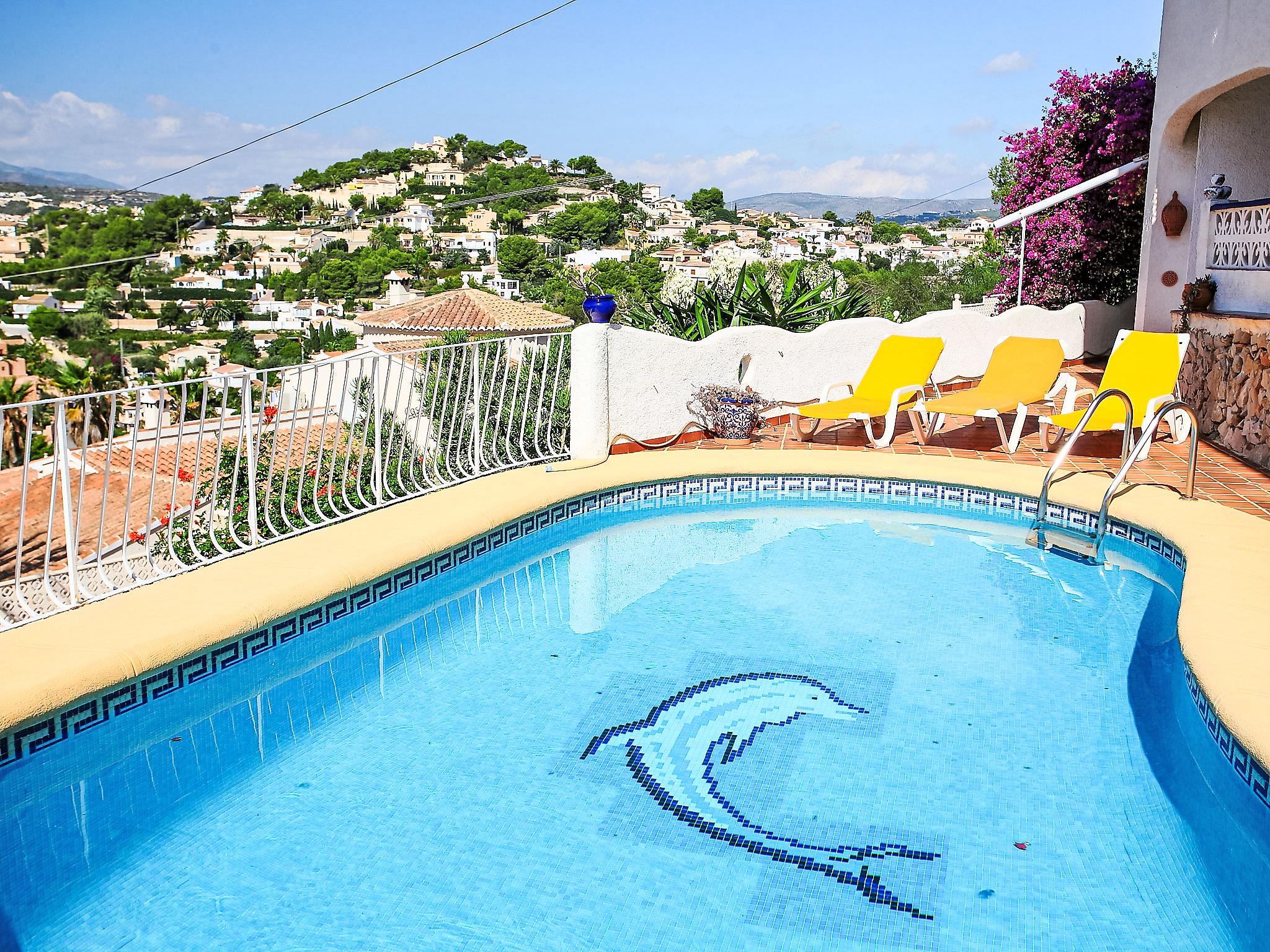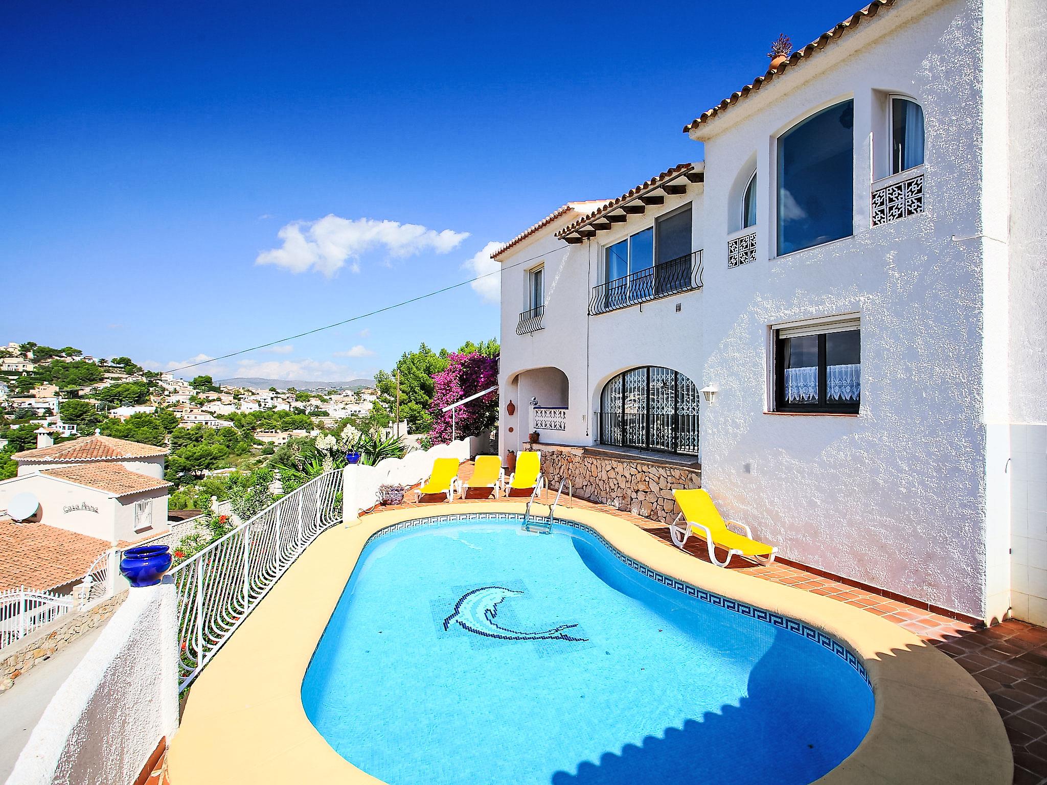 Rustic, simple house "El Nido de Luisa", 2 storeys. In the district of Valle del Portet 2.5 km from the centre of Moraira, in a secluded, quiet, sunny position on a slope, 1.5 km from the sea, 1.5 km from the beach, in a cul-de-sac. Private: property 849 m2, terraced garden, swimming pool kidney shaped (4 x 8 m, depth 120 - 210 cm, seasonal availability: 01.Jan. - 31.Dec.). In the house: WiFi, central heating system. Parking on the premises. Supermarket 1.5 km, restaurant 1.5 km, bus stop 3 km, sandy beach 1.5 km. Please note: suitable for families. The owner does not accept any youth groups.