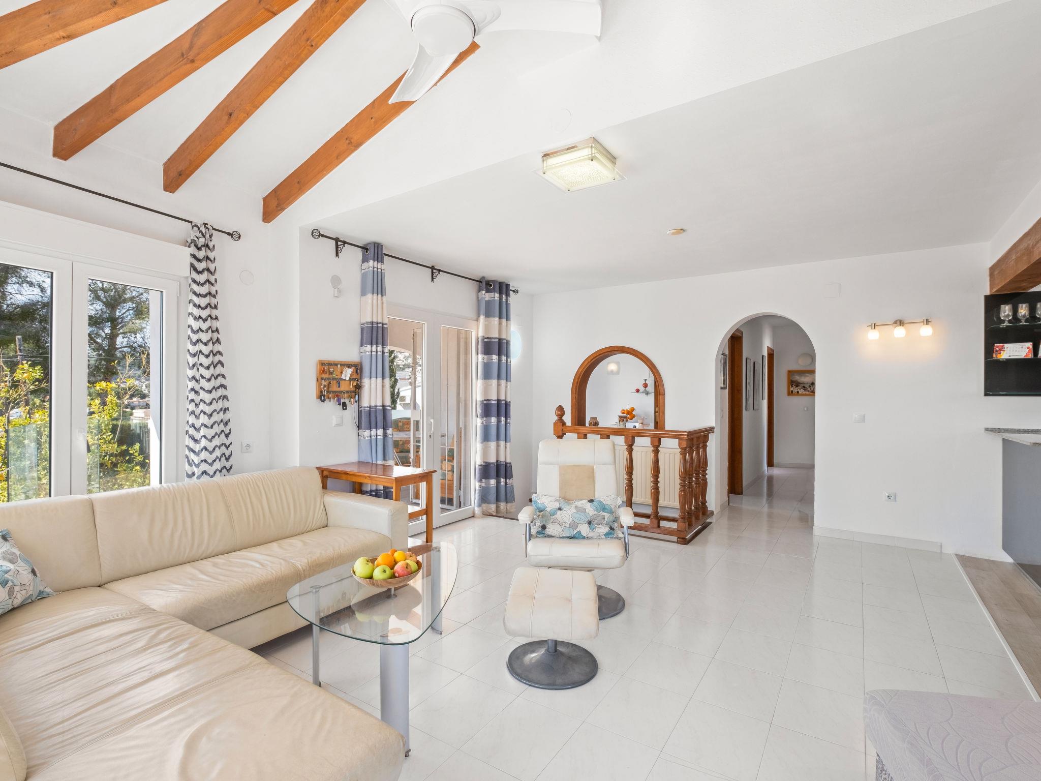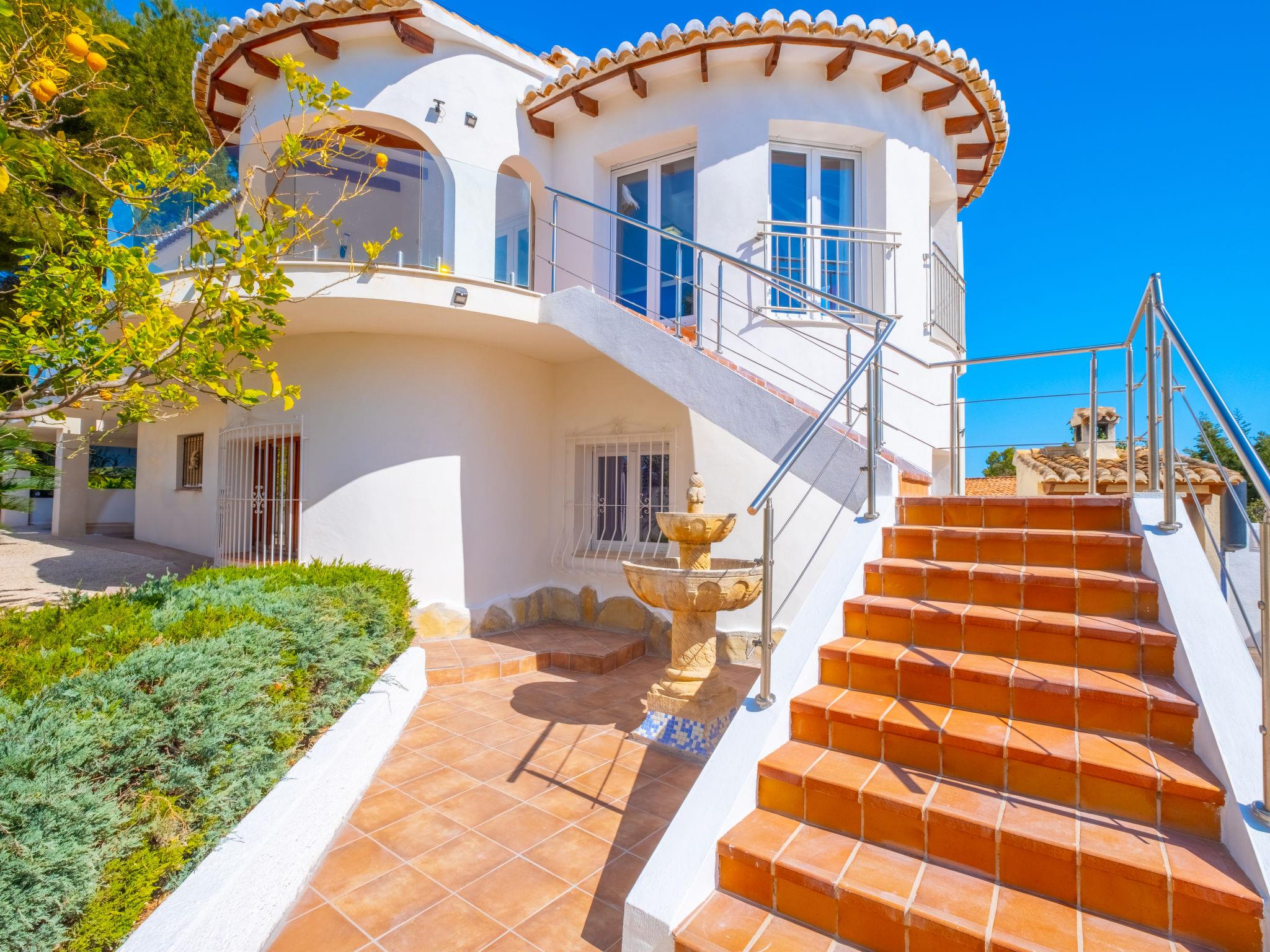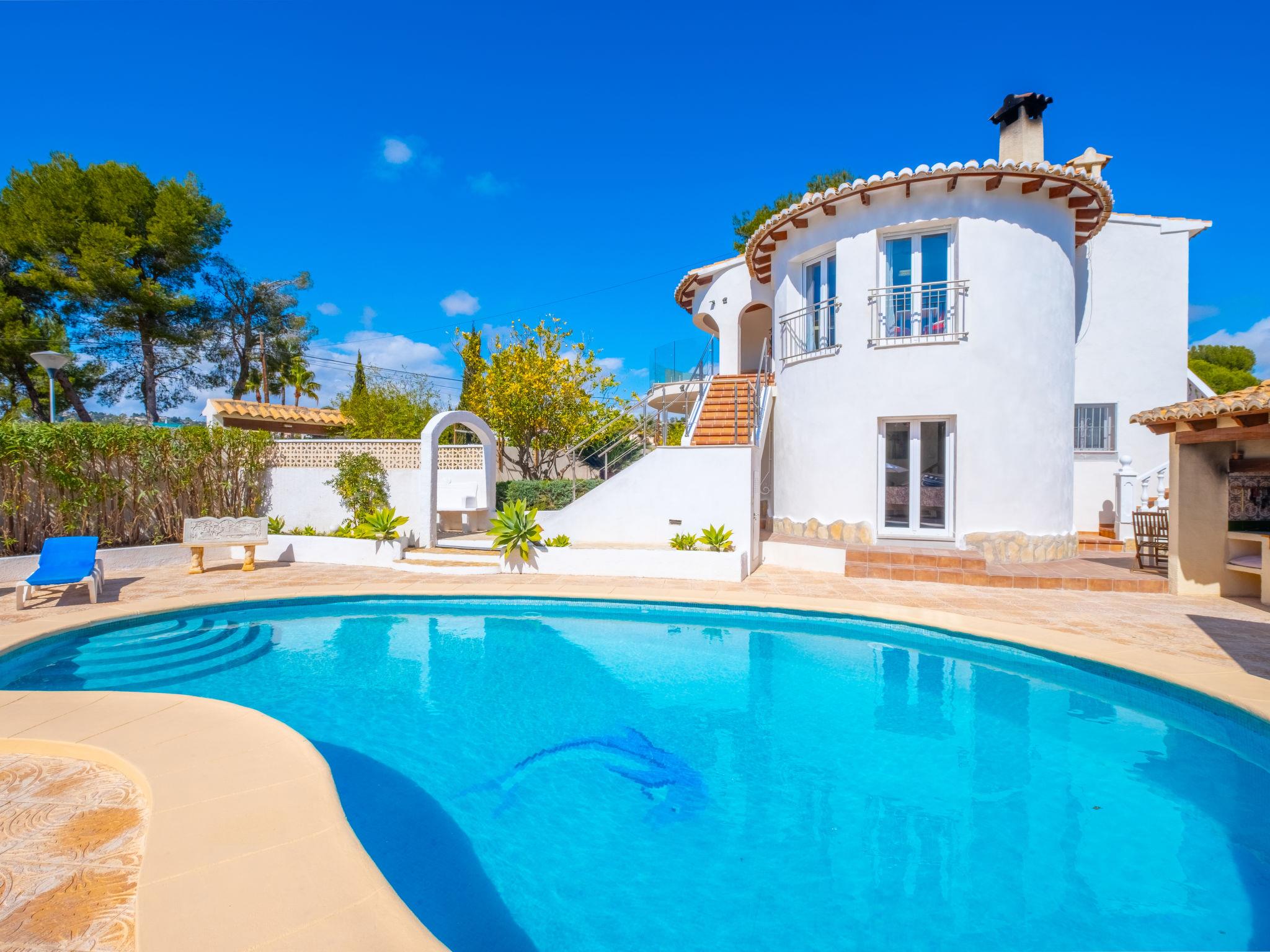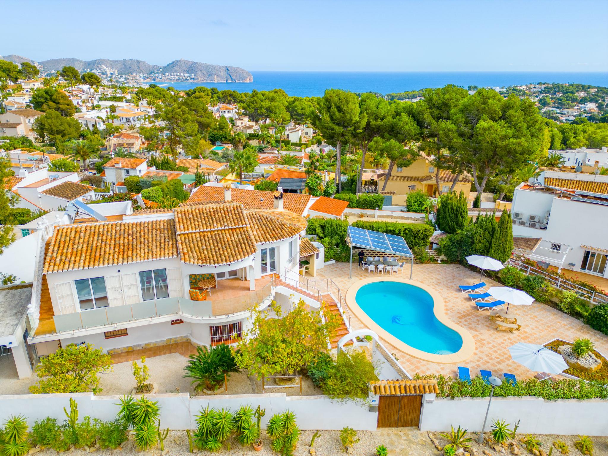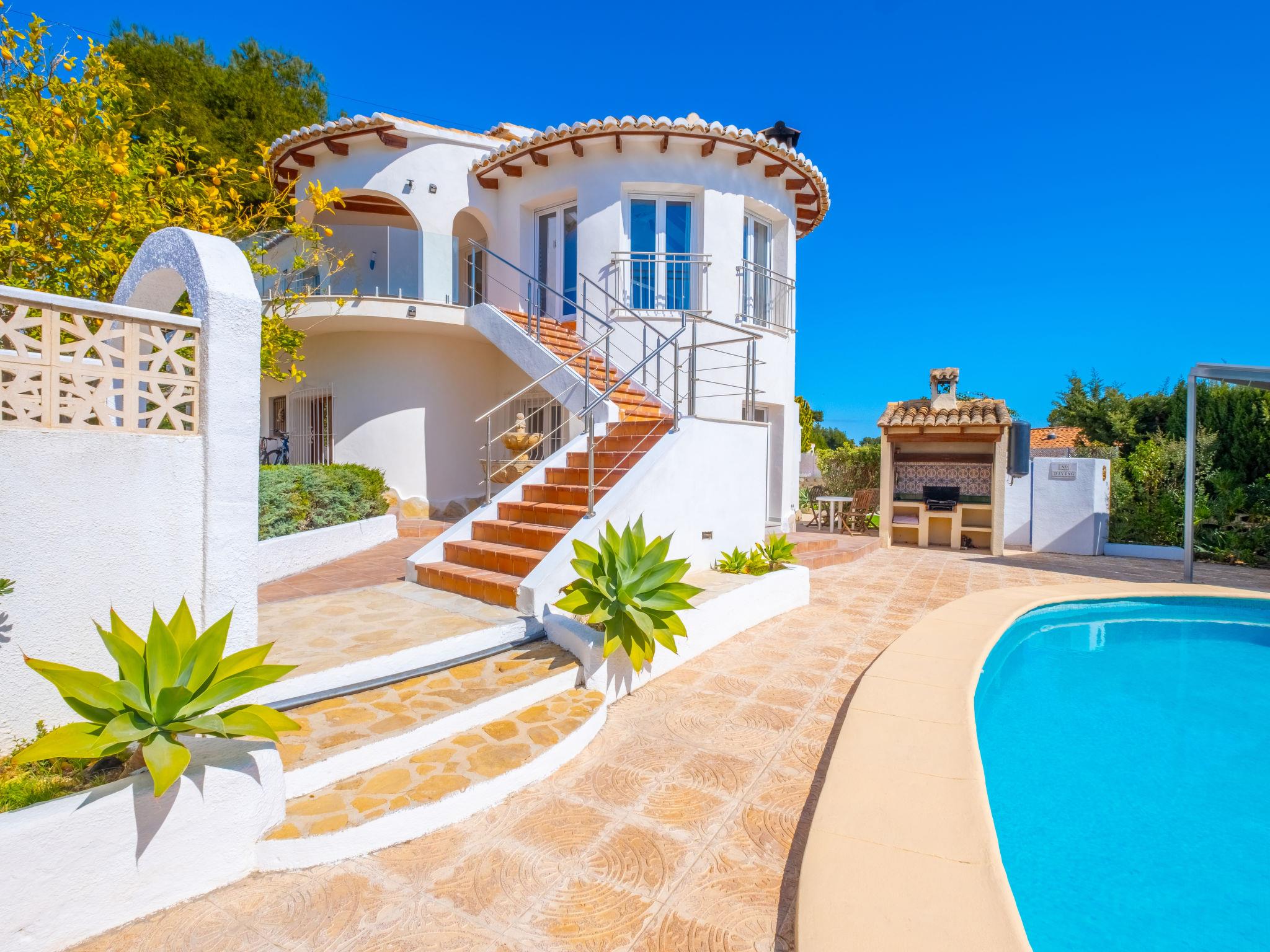Large house "El Gazebo", 2 storeys. In the district of San Jaime 3.5 km from the centre of Moraira, in a sunny position, 1.7 km from the sea. Private: property 800 m2 (fenced), large, well-kept garden, swimming pool kidney shaped (6 x 10 m, depth 140 - 220 cm, seasonal availability: 01.Jan. - 31.Dec.) with internal staircase. Outdoor shower, barbecue house. In the house: billiard table, central heating system, washing machine. Roofed, parking on the premises. Shop, supermarket, restaurant, bar, bakery 450 m, bus stop 4 km, sandy beach 3 km, shingle beach 1.7 km. Golf course (18 hole) 1.5 km. The owner does not accept any youth groups.