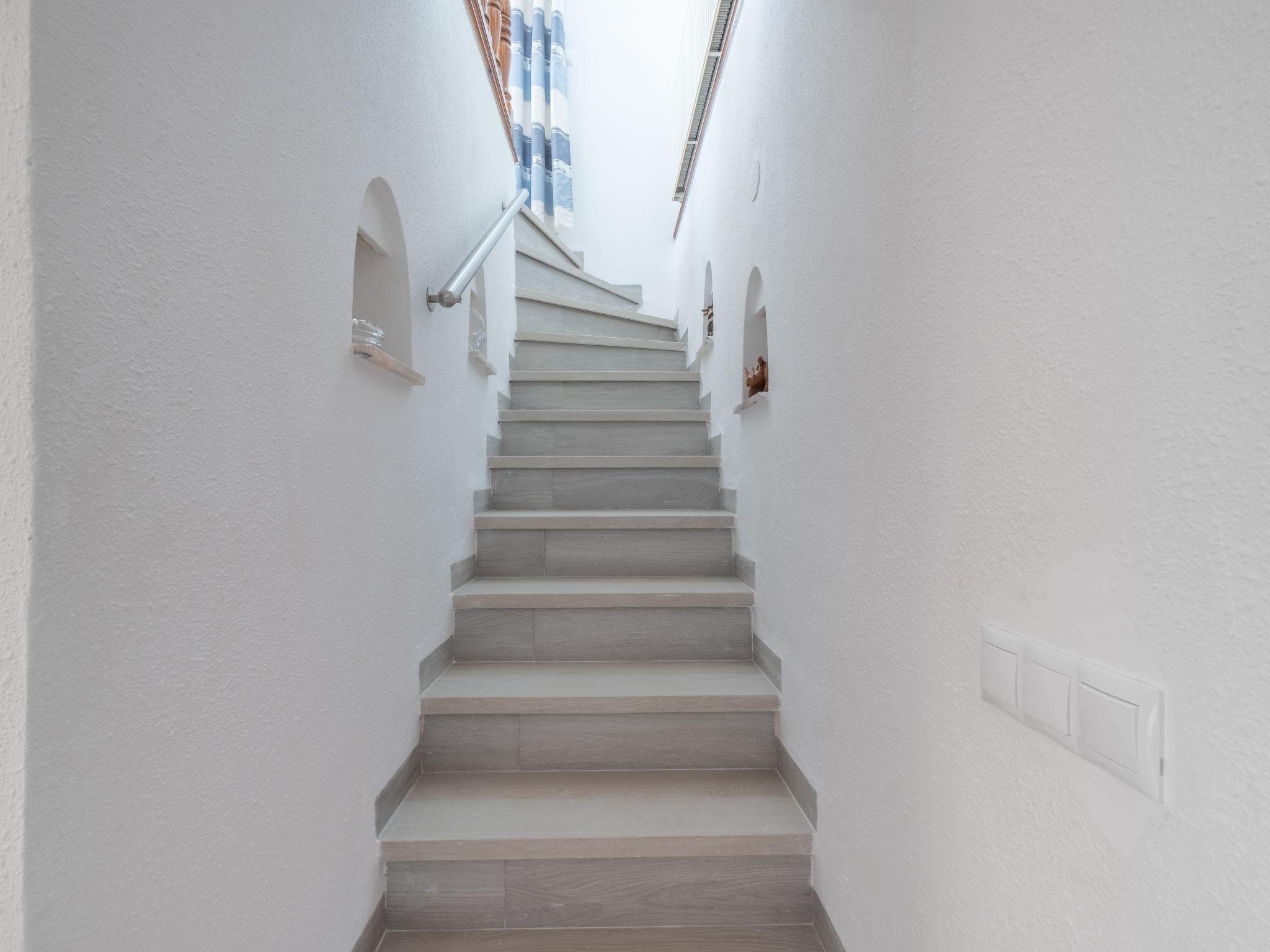 "El Gazebo", 6-room house 190 m2 on 2 levels. Practical furnishings: living/sleeping room with Scandinavian wood stove, satellite TV, flat screen, radio and fan. Exit to the terrace. Dining room. Exit to the terrace. 1 double bedroom with bath/WC and air conditioning. Exit to the terrace. 1 double bedroom with air conditioning. Exit to the terrace. Open kitchen (oven, dishwasher, microwave, freezer, electric coffee machine). Shower/WC. Gas heating. On the lower ground floor: playroom. Exit to the garden. 1 room with 2 beds. 1 double bedroom with air conditioning. Kitchenette (microwave, electric coffee machine). Shower/WC. Large terrace partly roofed terrace roofed. Terrace furniture, barbecue, deck chairs (8). Very beautiful view of the sea and the countryside. Facilities: washing machine, iron, children's high chair, baby cot for up to 3 year olds. Internet (WiFi, free). Parking (roofed). Please note: suitable for families. TV only DE. AT-451766-A // Reg. Nr.: ESFCTU00000303800077902900000000000000000AT-451766-A9