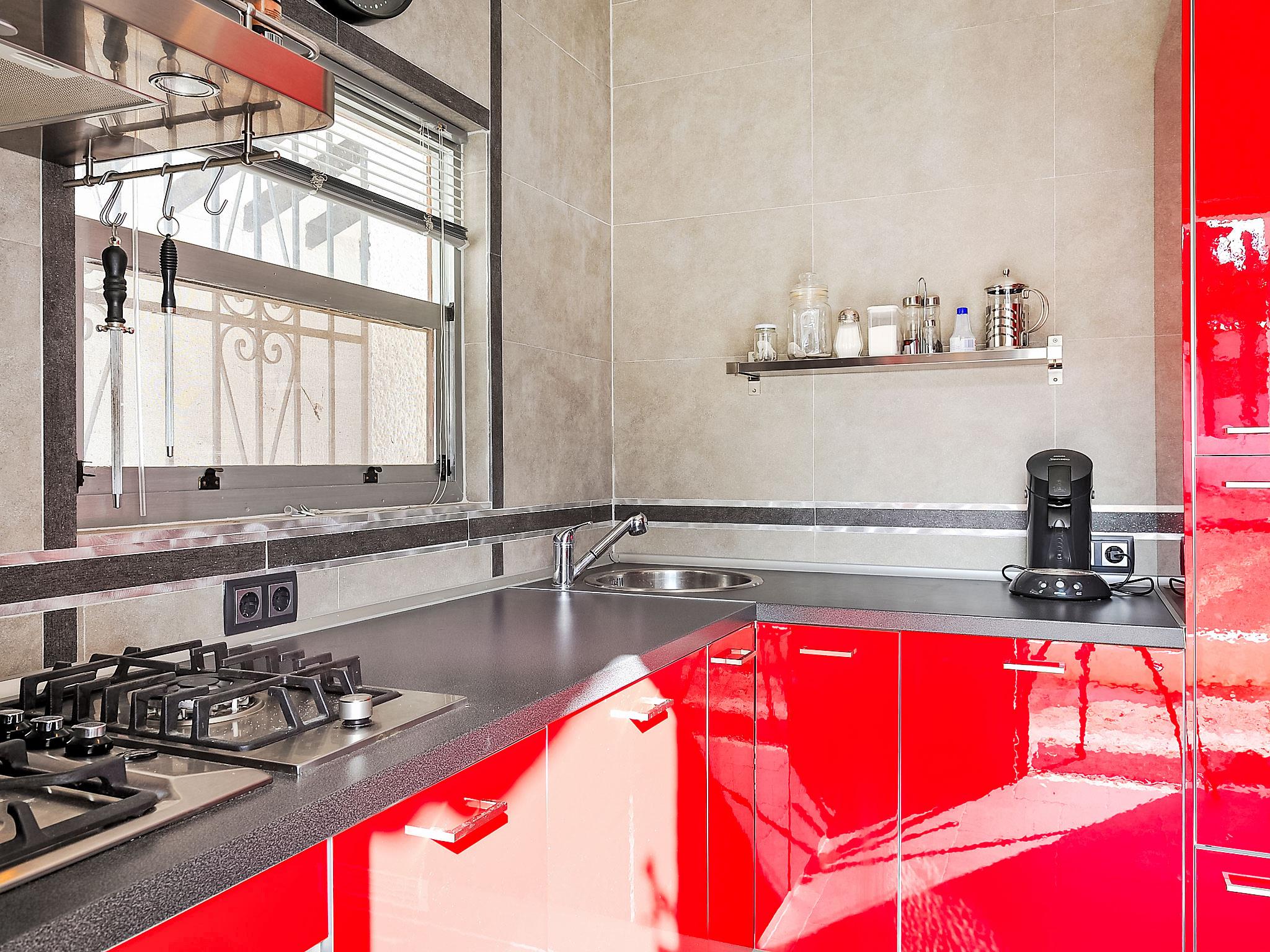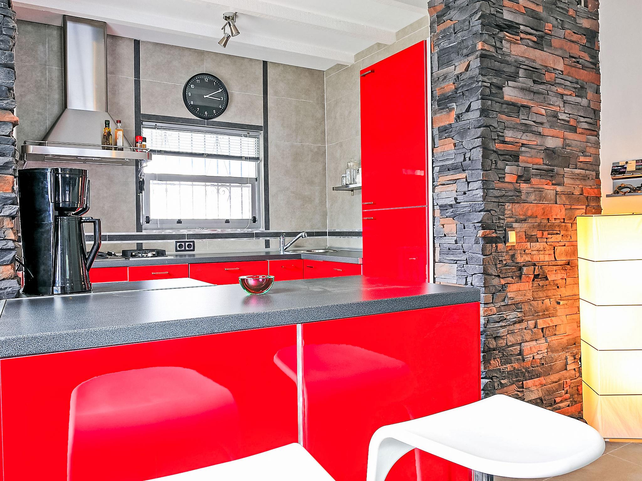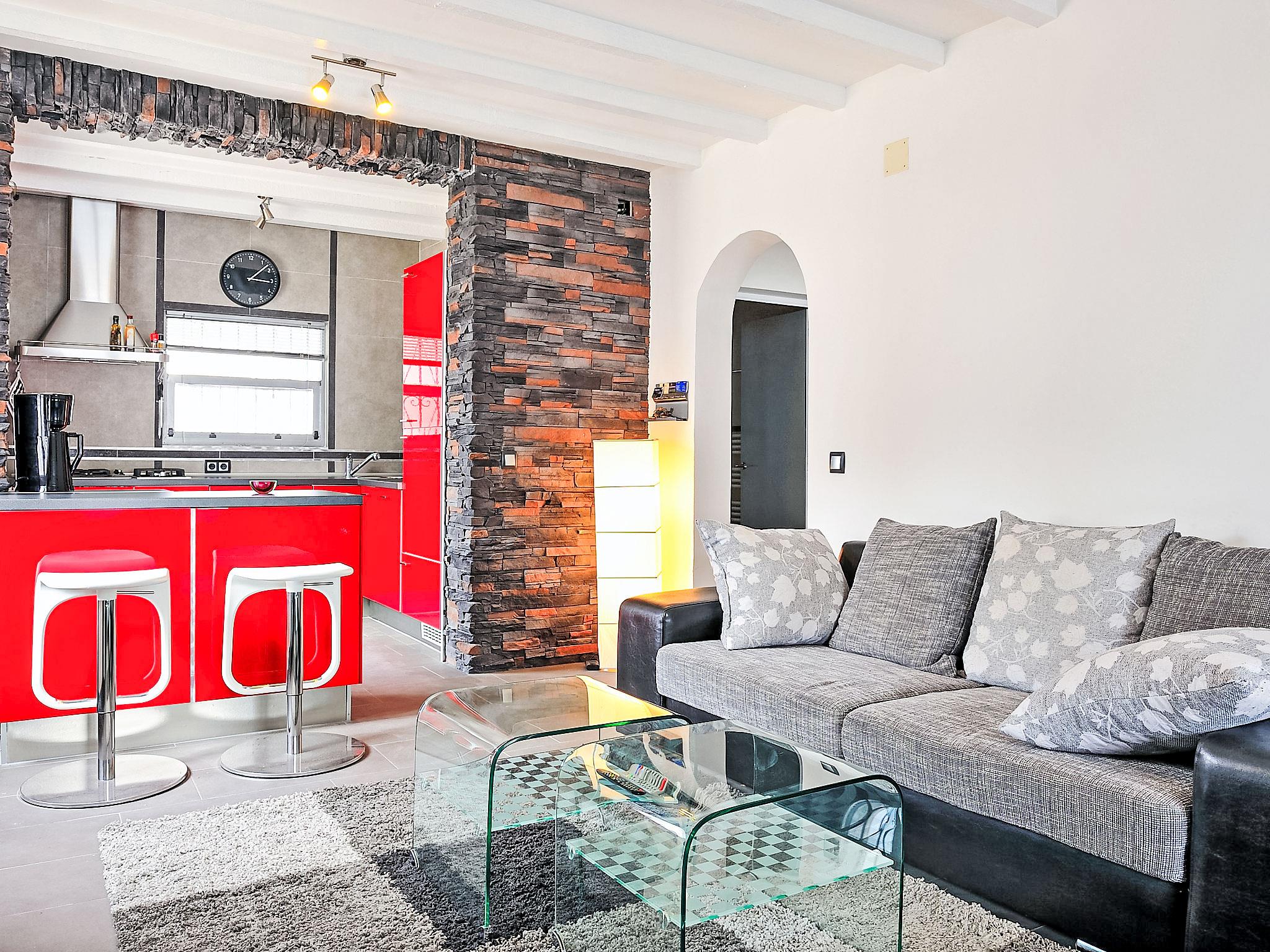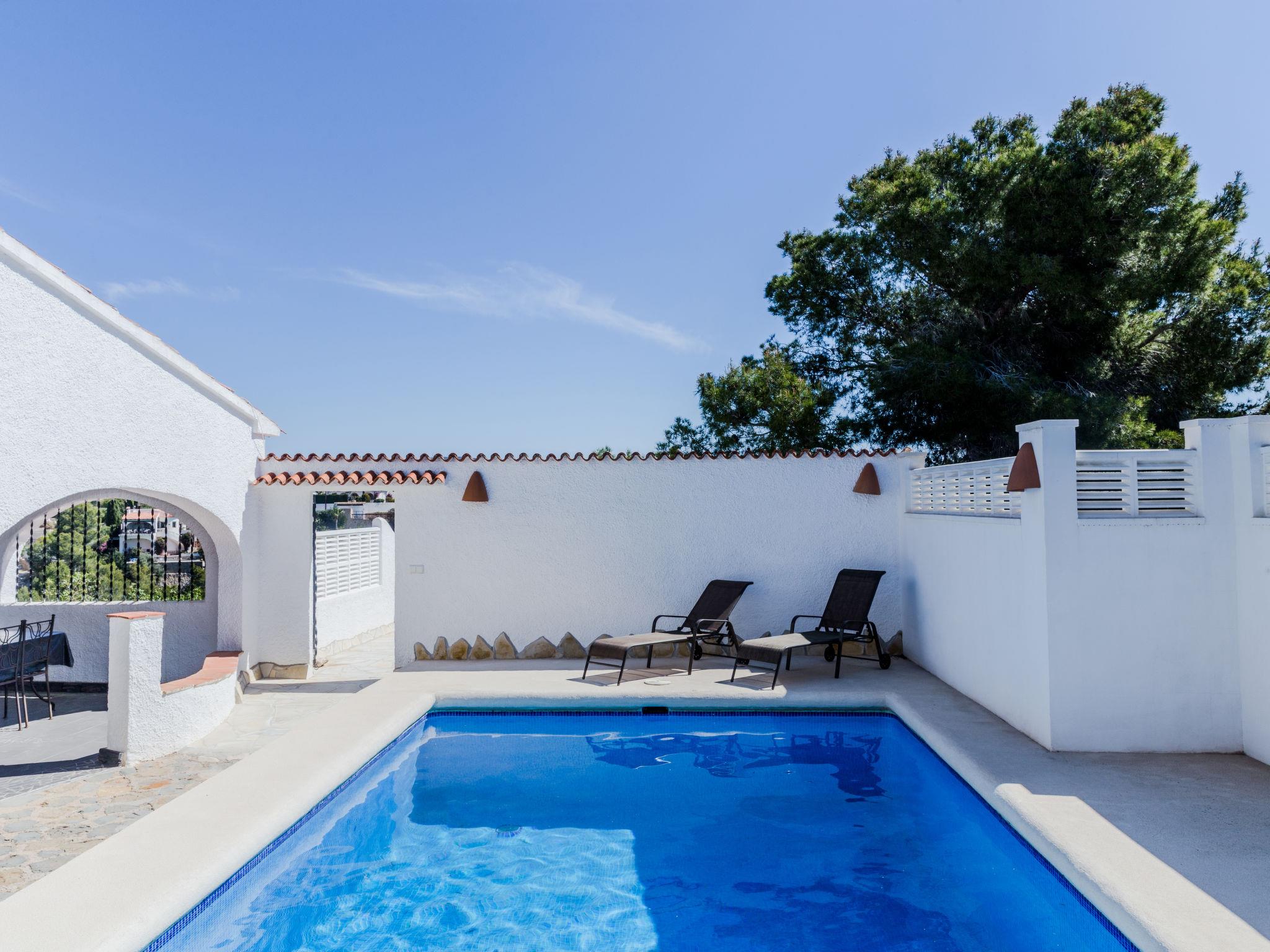 "La Yaya", 3-room house 75 m2. Modern and tasteful furnishings: living/dining room with Scandinavian wood stove, satellite TV and digital TV. Exit to the garden, to the terrace, to the swimming pool. 1 room with 1 french bed. Exit to the terrace, to the swimming pool. 1 room with 1 pull-out bed (2 pers.). Open kitchen (oven, dishwasher, freezer, electric coffee machine, combination microwave). Exit to the garden. Shower/WC, hydro massage shower. Terrace roofed, patio. Terrace furniture, barbecue, deck chairs (4). Facilities: washing machine, dryer. Internet (WiFi, free). Parking (fenced 2 cars). Please note: suitable for families. TV only DE, ES. CV-VUT0440975-A // Reg. Nr.: ESFCTU00000302900007697300000000000000000AT-440975-A7