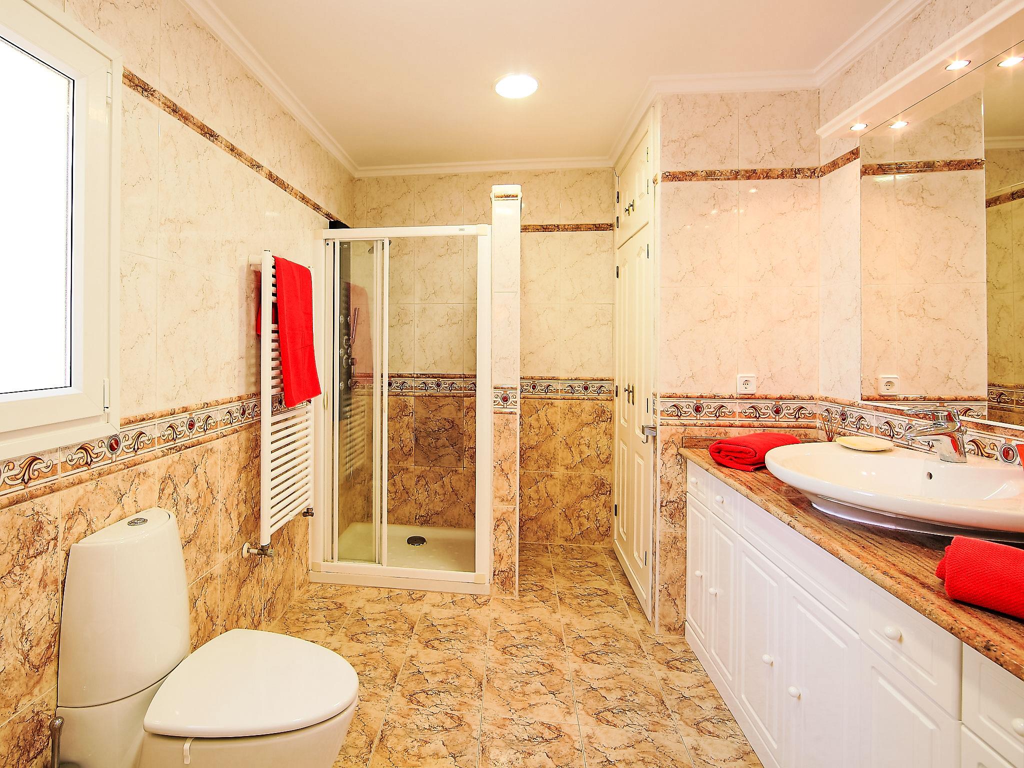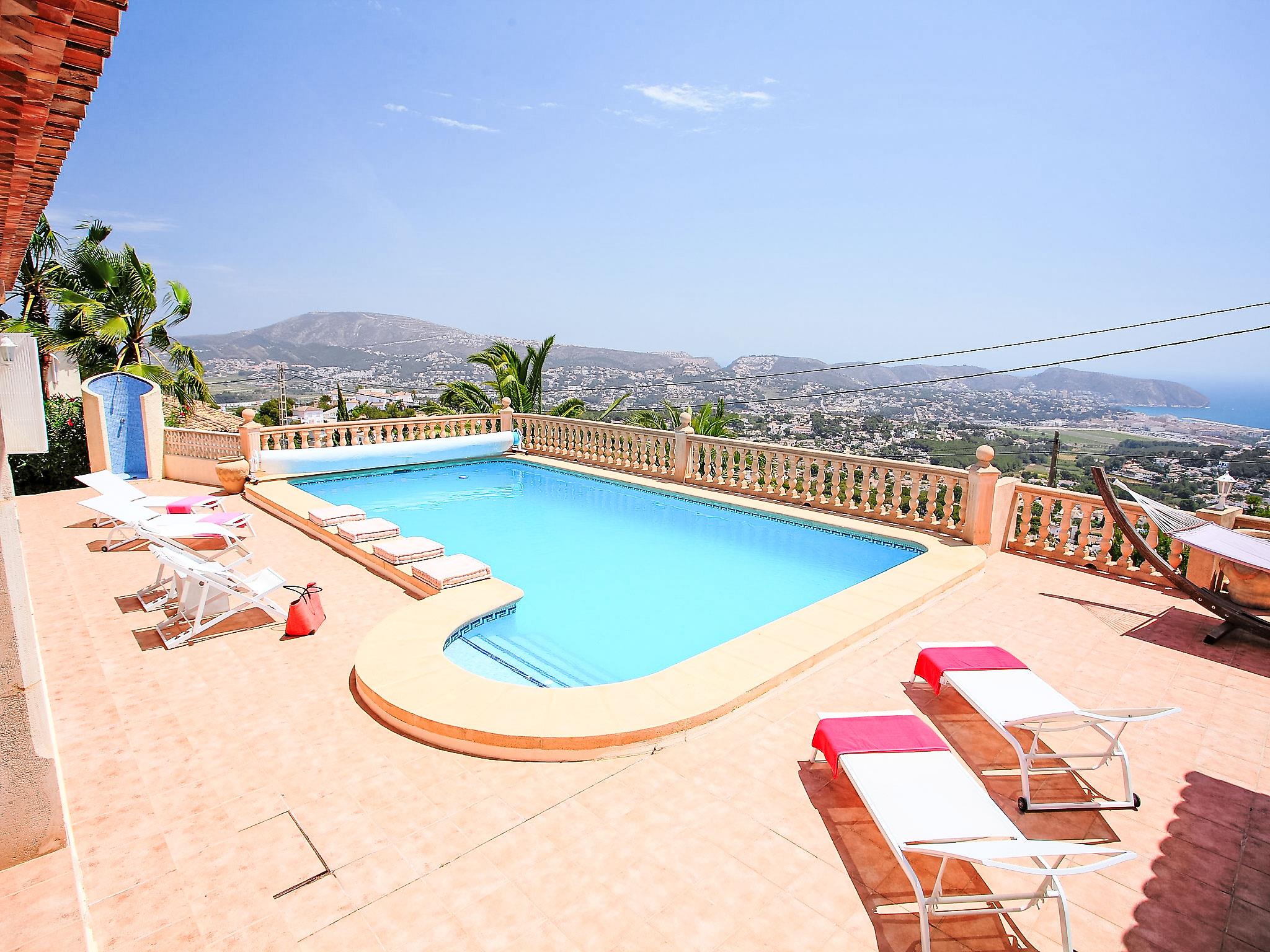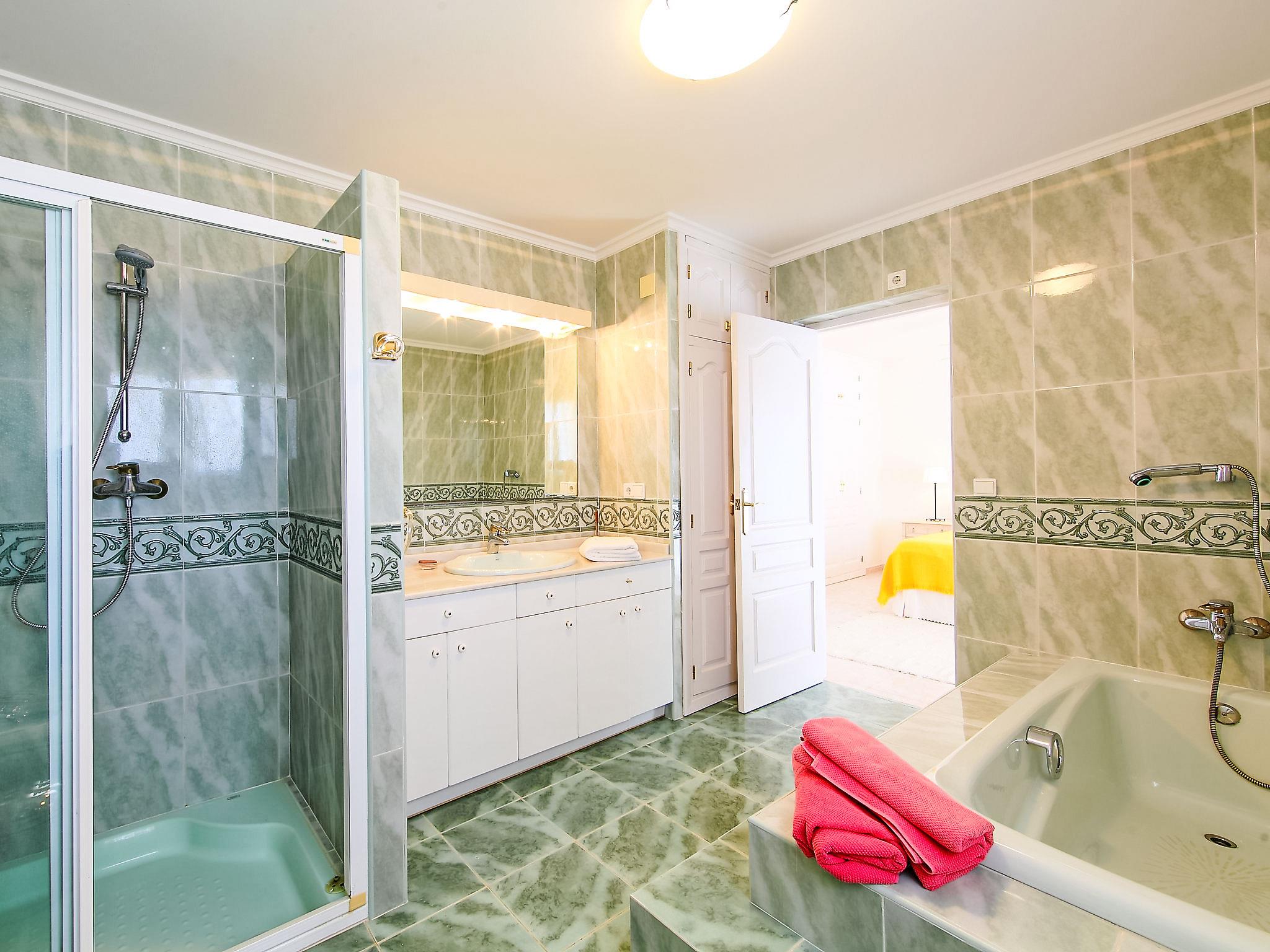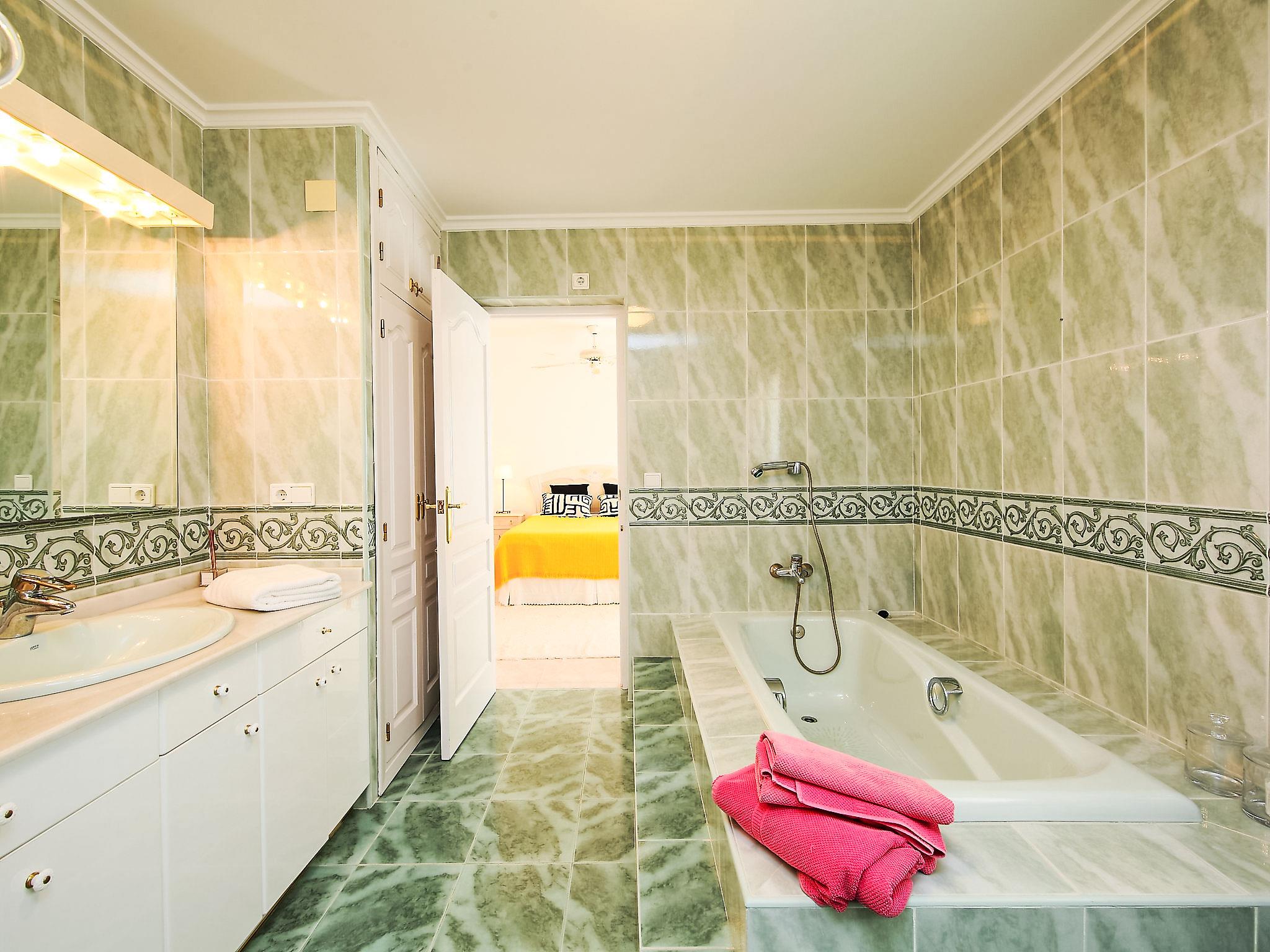 "Karibuni", 6-room villa 250 m2 on 2 levels. Spacious and bright, very comfortable furnishings: dining room. Living room with panoramic window with open-hearth fireplace and satellite TV. Exit to the terrace, to the swimming pool. 1 room with 1 french bed (1 x 150 cm, length 200 cm). Exit to the terrace, to the swimming pool. 1 double bedroom with 2 beds (90 cm, length 200 cm), fan. Exit to the terrace, to the swimming pool. Kitchen (oven, dishwasher, 4 ceramic glass hob hotplates, microwave, freezer, electric coffee machine). Bath/WC, sep. WC. Upper floor: 1 room with 1 french bed (1 x 150 cm, length 200 cm), shower/bidet/WC. Exit to the terrace. 1 room with 1 french bed (1 x 150 cm, length 200 cm), bath/shower/bidet/WC and fan. Exit to the terrace. Large terrace partly roofed, large patio. Terrace furniture, barbecue, deck chairs. Marvellous panoramic view of the sea, the mountains and the countryside. Facilities: washing machine, dryer, iron. Internet (WiFi, free). Parking. Suitable for families. AT-440983-A // Reg. Nr.: ESFCTU00000303800081330300000000000000000AT-440983-A8