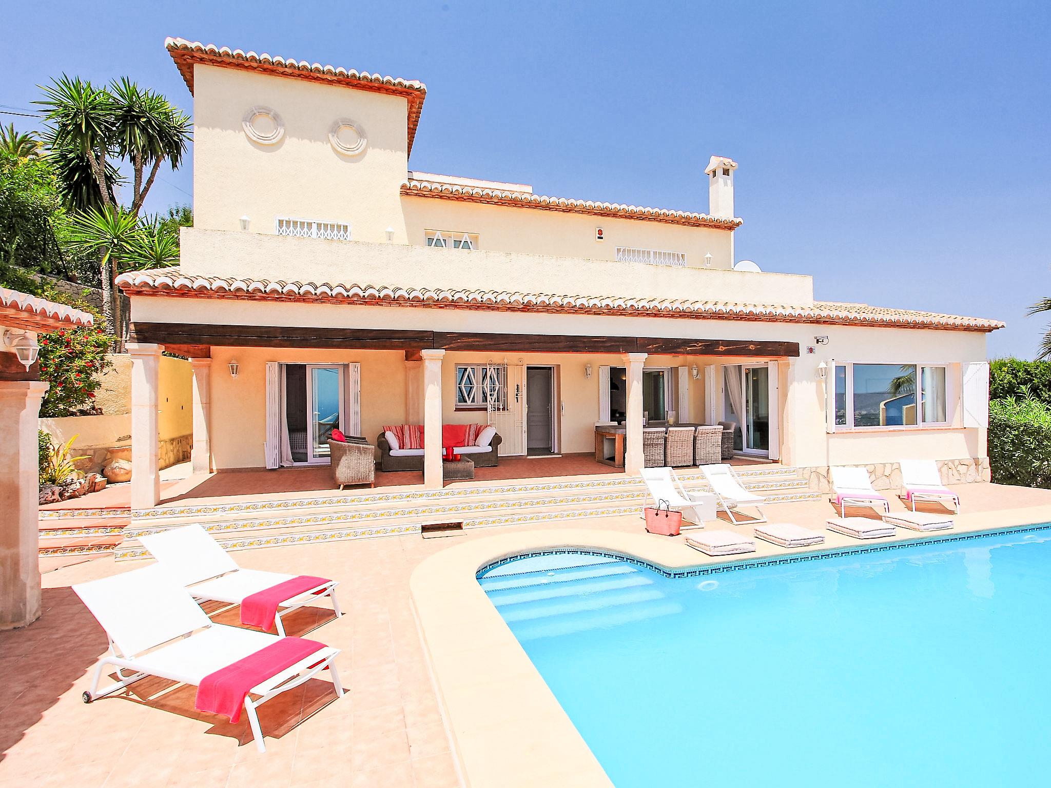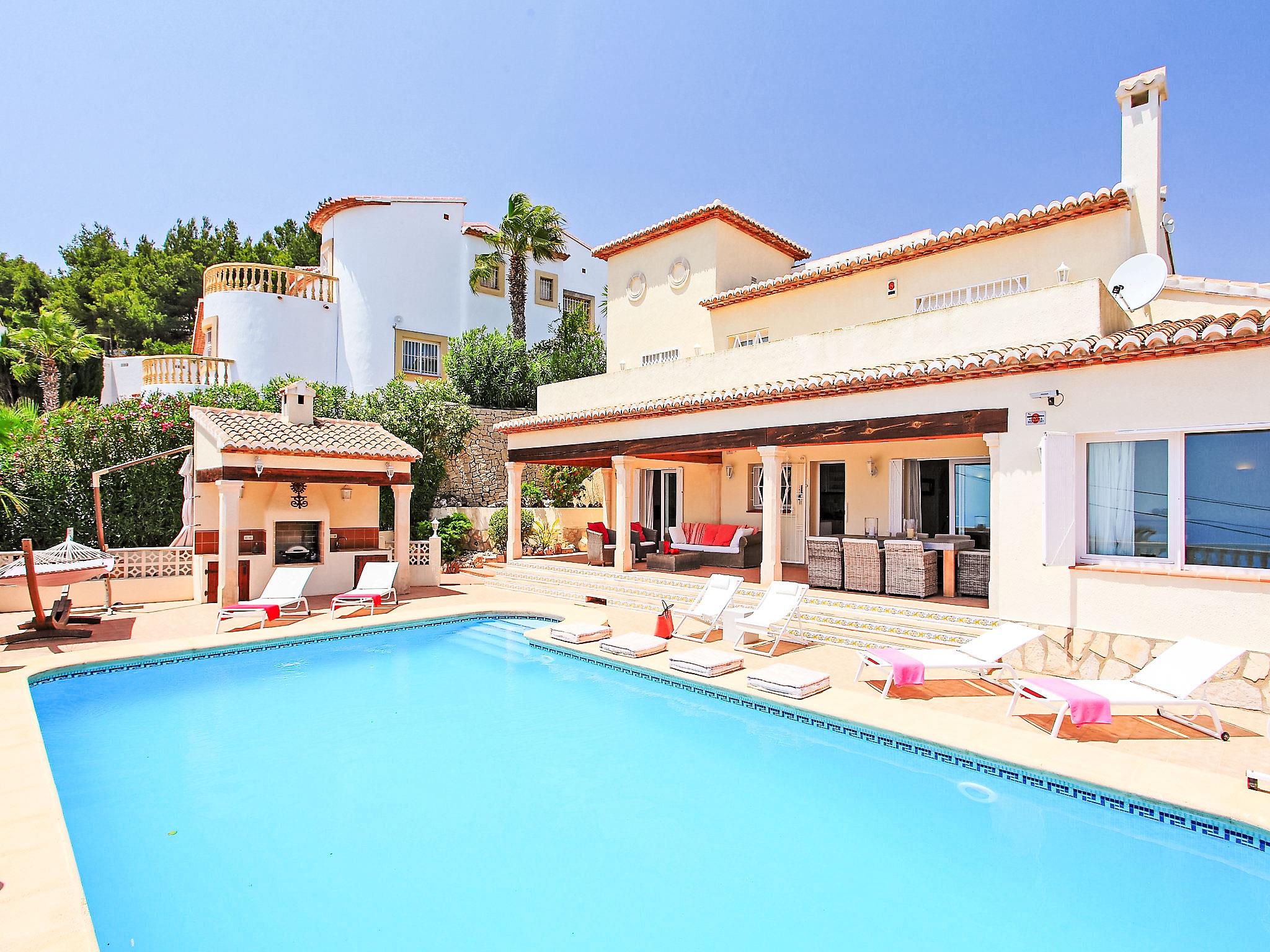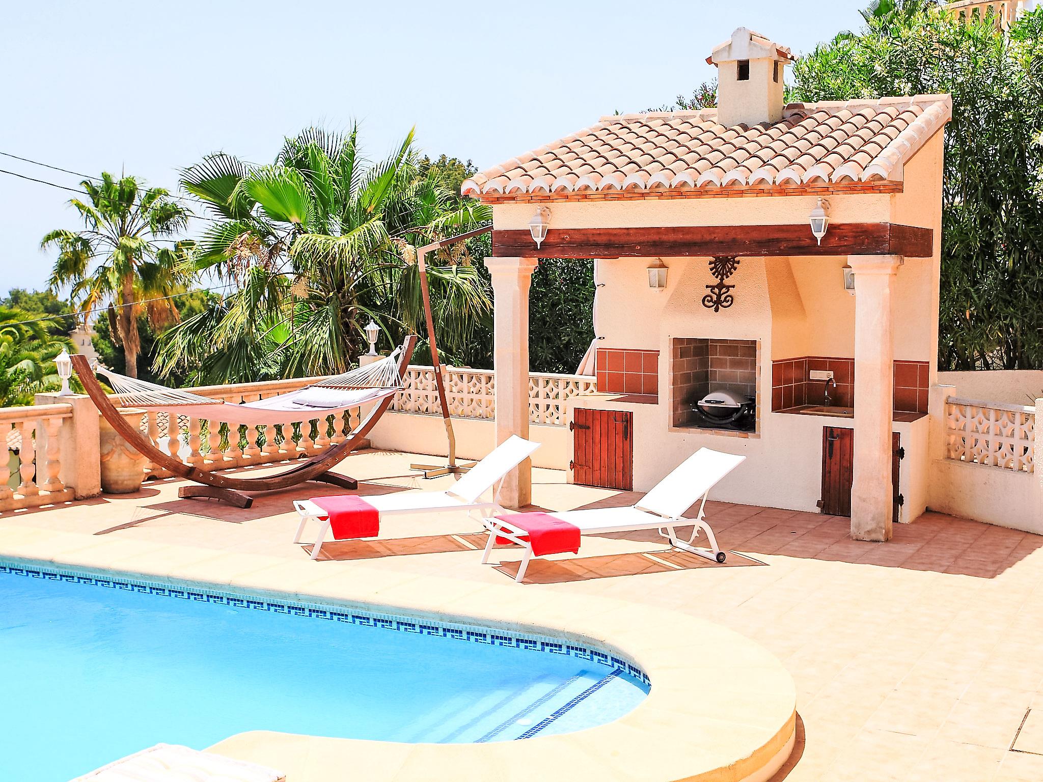 Beautiful, comfortable, luxurious villa "Karibuni", 2 storeys. In the district of Benimeit, in a quiet, sunny position on a slope. Private: property 900 m2 (fenced), garden, swimming pool angular (5 x 10 m, depth 150 - 200 cm, seasonal availability: 01.Jan. - 31.Dec.) with internal staircase. Outdoor shower. In the house: washing machine, tumble dryer. Supermarket 2 km, bar 2 km, bus stop 3.8 km, sandy beach "Playa L'Ampolla" 4.2 km. Please note: suitable for families. The owner does not accept any youth groups.