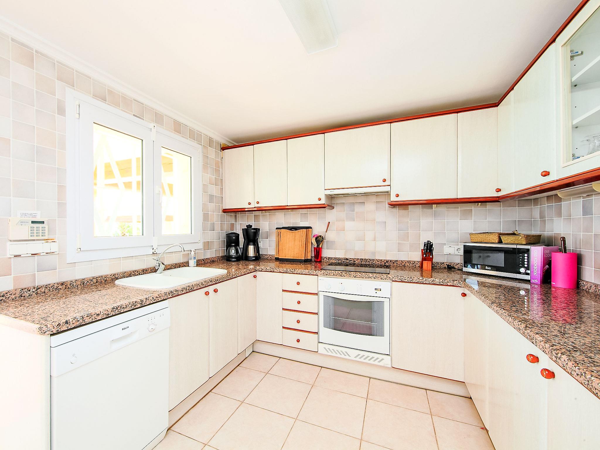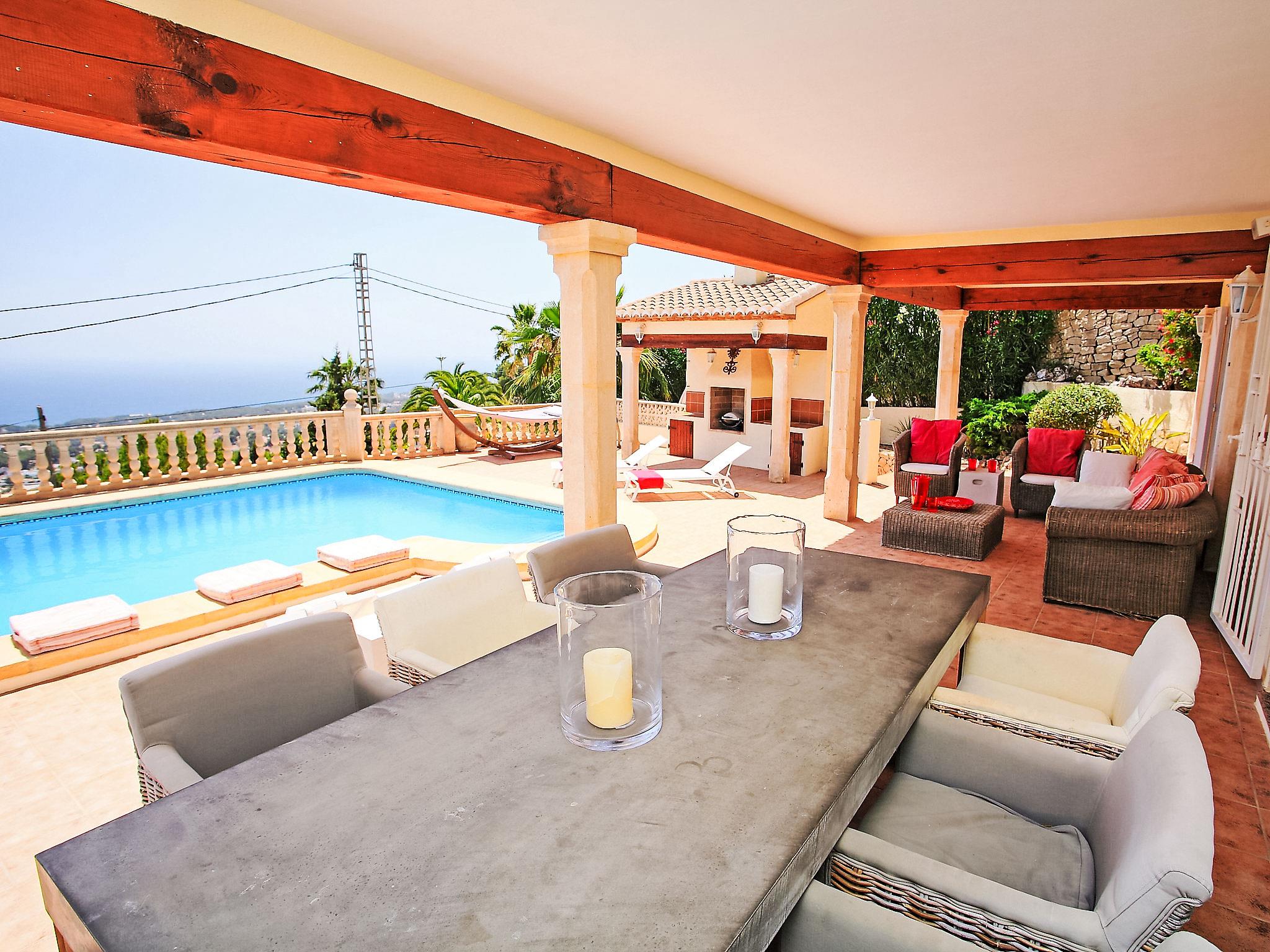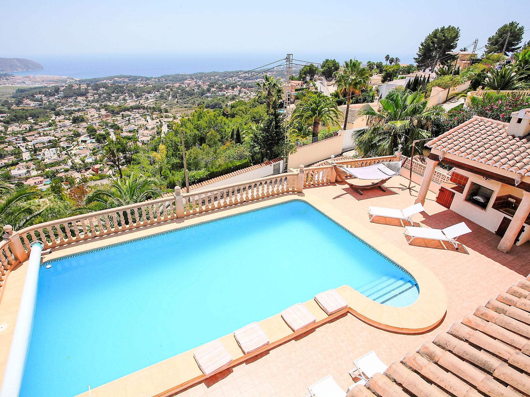 Beautiful, comfortable, luxurious villa "Karibuni", 2 storeys. In the district of Benimeit, in a quiet, sunny position on a slope. Private: property 900 m2 (fenced), garden, swimming pool angular (5 x 10 m, depth 150 - 200 cm, seasonal availability: 01.Jan. - 31.Dec.) with internal staircase. Outdoor shower. In the house: washing machine, tumble dryer. Supermarket 2 km, bar 2 km, bus stop 3.8 km, sandy beach "Playa L'Ampolla" 4.2 km. Please note: suitable for families. The owner does not accept any youth groups.