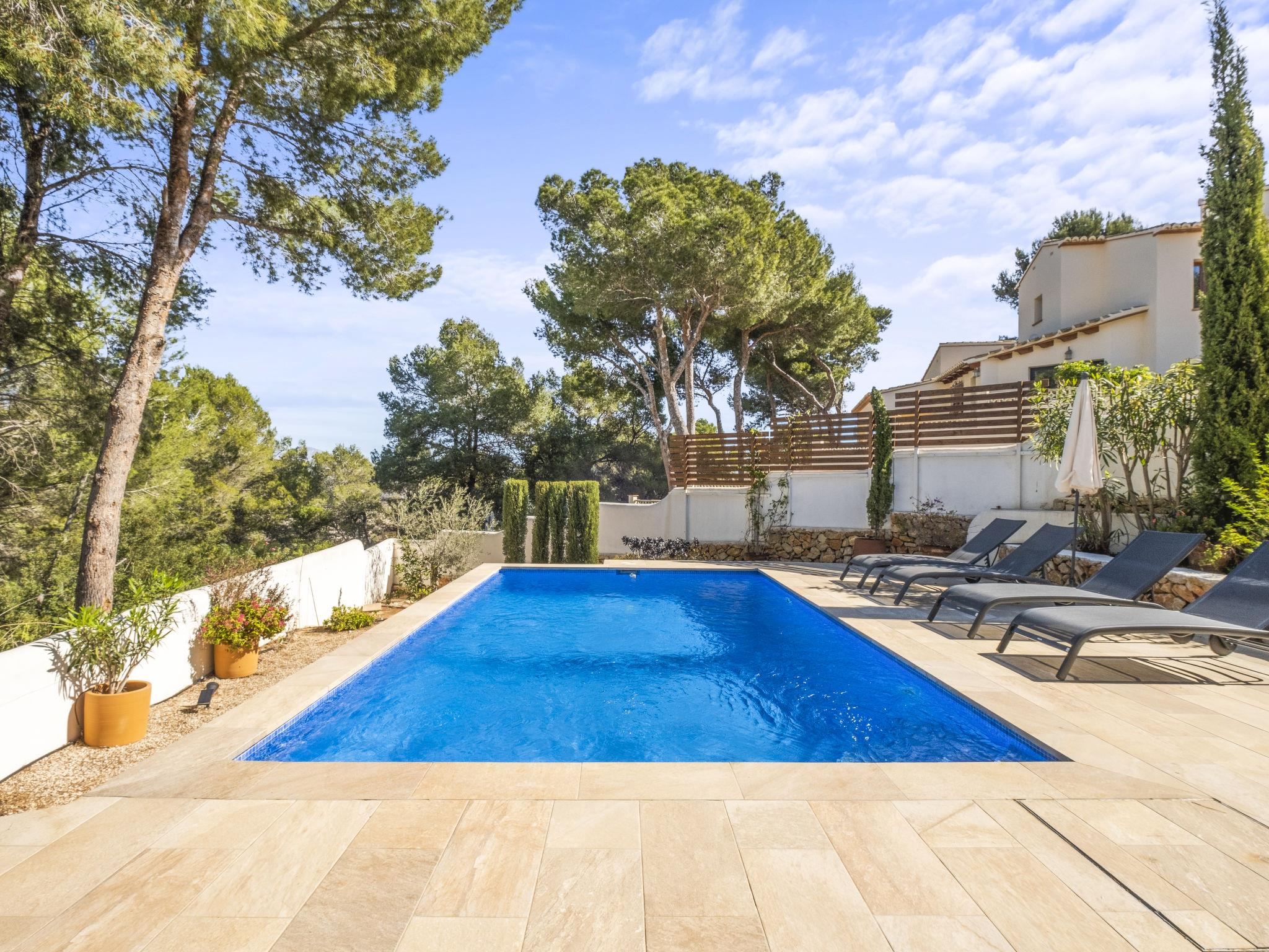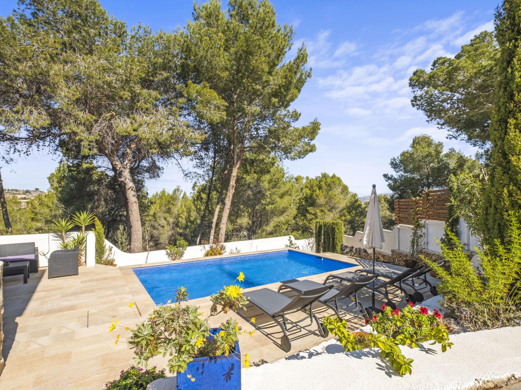 Benimeit: Beautiful, cosy house "El Rinconcito", renovated. 4 km from the centre of Moraira, in a secluded, quiet, elevated position in the residential district, 4 km from the sea, 4 km from the beach. Private: property 600 m2 (fenced), beautiful, well-kept garden, swimming pool angular (6 x 3 m, depth 120 - 150 cm, seasonal availability: 01.Jan. - 31.Dec.) with internal staircase. WC in the pool area. In the house: washing machine. Parking on the premises. Supermarket 2.5 km, restaurant 2.5 km, bar 2.5 km, bus stop 4 km, sandy beach "Playa L'Ampolla" 4 km. Golf course (19 hole) 4 km. Nearby attractions: El Castillo de Guadalest 60 km, Aqualandia 45 km, Las Fuentes d'Algar 42 km, Altea 33 km, Valencia 120 km, Alicante 80 km. Please note: car recommended. The owner does not accept any youth groups.