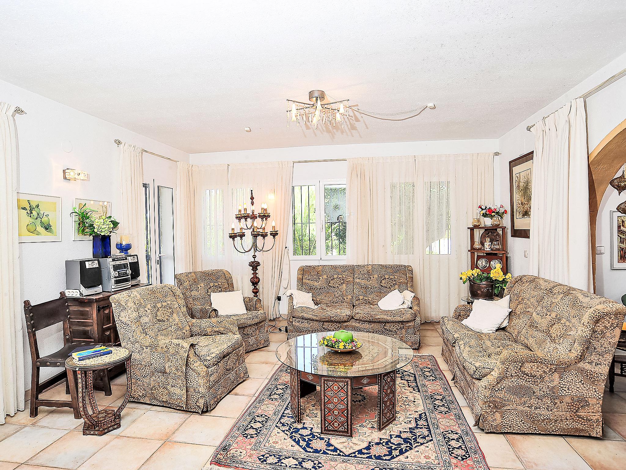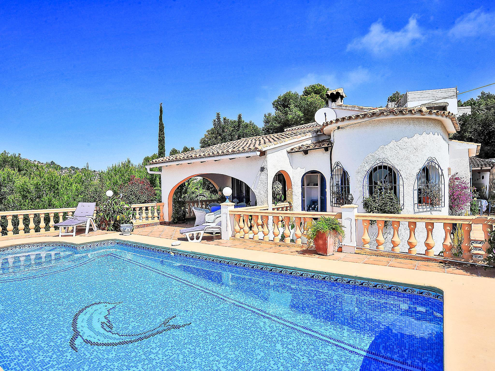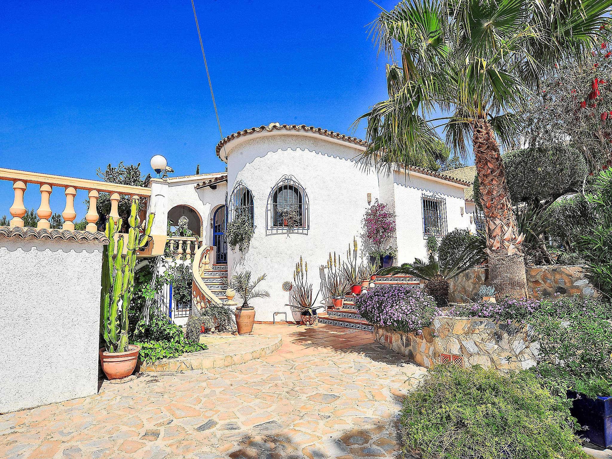 Very beautiful, comfortable house "Mirada al Sol", 2 storeys. In a quiet, sunny position, 1.3 km from the sea, 1.3 km from the beach. Private: large, beautiful, well-kept garden 1'100 m2 (fenced), swimming pool angular (4 x 8 m, seasonal availability: 01.Jan. - 31.Dec.) with internal staircase. Outdoor shower. In the house: central heating system. Parking (for 2 cars) on the premises. Supermarket, restaurant, bar 500 m, bus stop 2.5 km, sandy beach 1.3 km. Tennis 1.7 km. Please note: suitable for families, baby equipment (included). The owner does not accept any youth groups.