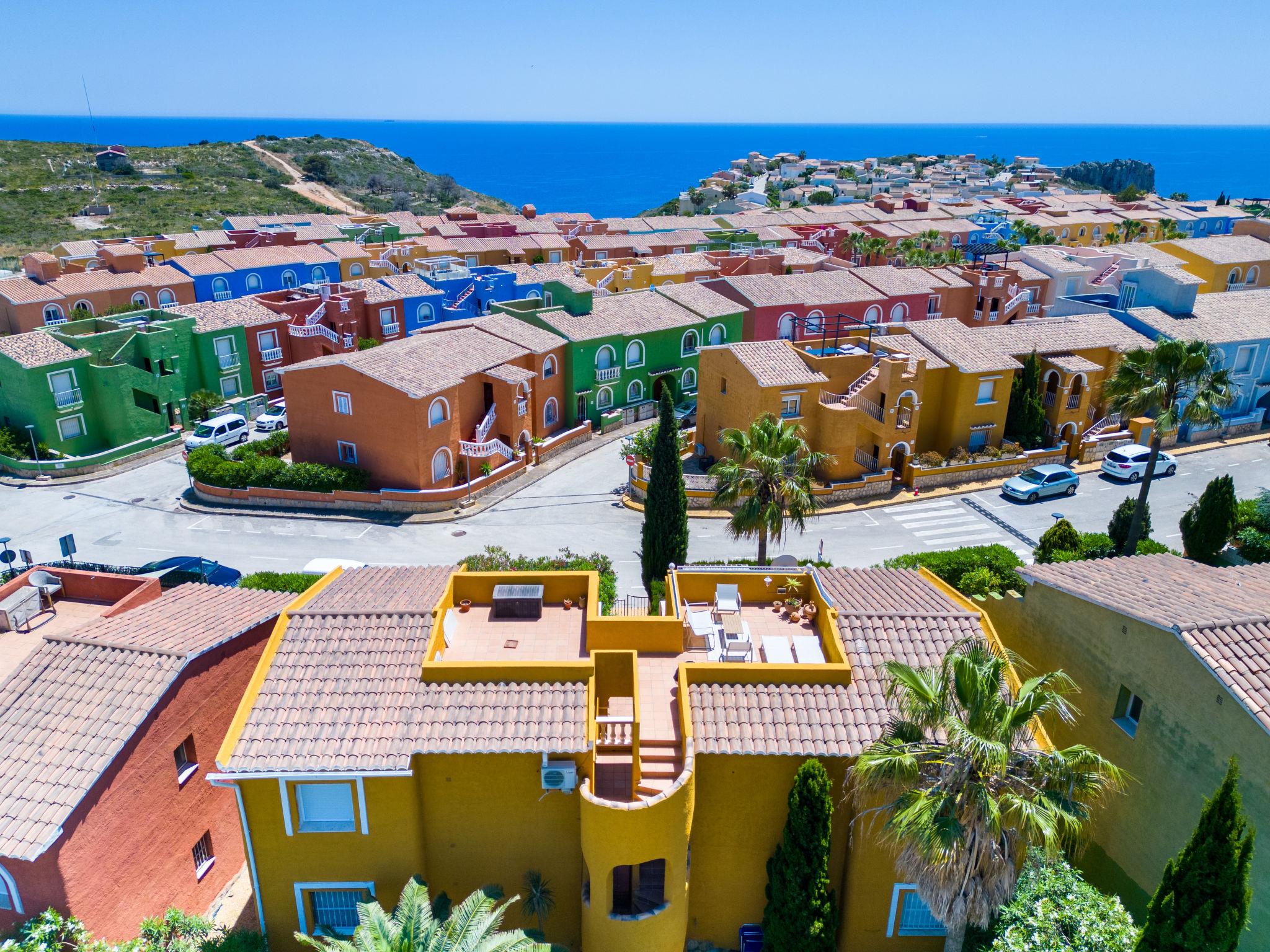 Cumbre del Sol: Large, beautiful holiday development "Pueblo de la Paz". 8 km from the centre of Moraira, in the district Cumbre del Sol, in a quiet, sunny position in the residential district, traffic calmed area, 1.8 km from the sea, 1.8 km from the beach. For shared use: beautiful, well-kept garden, swimming pool (60 x 16 m, seasonal availability: 01.Apr. - 31.Oct.) with internal staircase. Children's pool, outdoor shower, terrace. Grocery, supermarket 500 m, restaurant 600 m, bus stop 4 km, sandy beach "Playa Arenal" 8 km, rocky beach "Cala Moraig" 1.8 km. Sports harbour 9 km, marina 9 km, golf course 11 km. Nearby attractions: Aqualandia, Mundomar, Terra Mítica, Terra Natura, Benidorm Palace (Benidorm), Les Fonts de l'Algar, Castillo de Guadalest. The owner does not accept any youth groups.