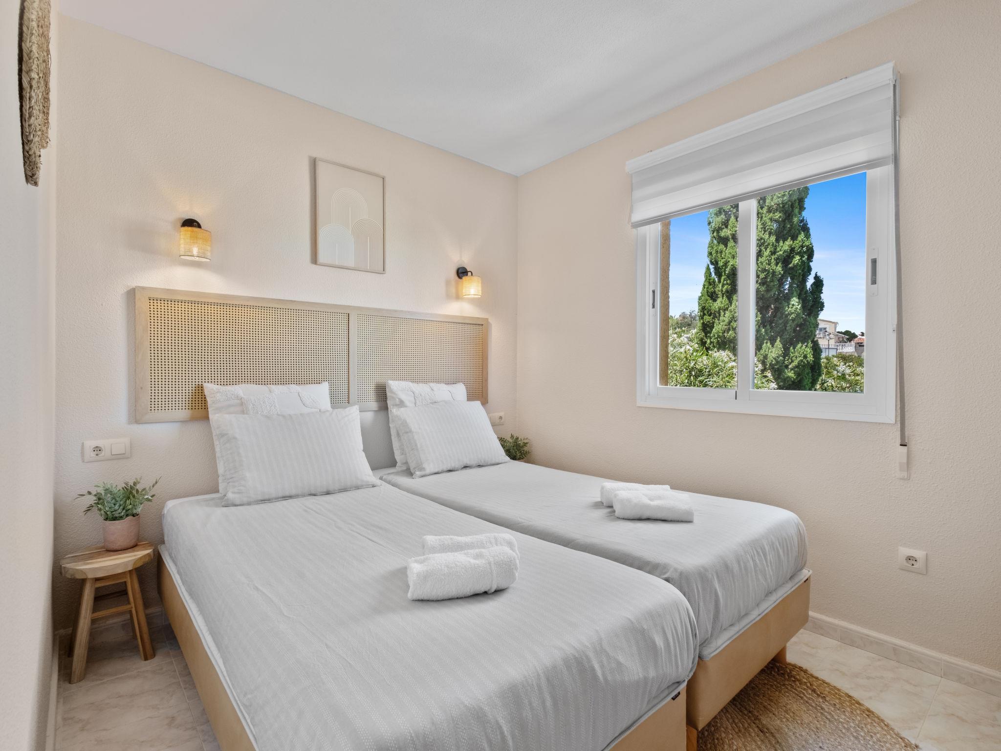 "Pueblo de la Paz", 3-room apartment 62 m2 on 1st floor. Spacious and bright, renovated in 2025, comfortable and beautiful furnishings: living/dining room with satellite TV, digital TV, air conditioning and forced-air heating. Exit to the terrace. 1 room with 1 double bed. 1 room with 2 beds. Open kitchen (oven, 4 ceramic glass hob hotplates, toaster, kettle, microwave, electric coffee machine). Shower/WC. Large terrace. Terrace furniture, sitting area. Beautiful view of the resort. Facilities: washing machine, iron, hair dryer. Internet (WiFi, free). Please note: non-smoking house. No lift. CV-VUT0518489-A // Reg. Nr.: ESFCTU0000030380000383860000000000000CV-VUT0518489-A2