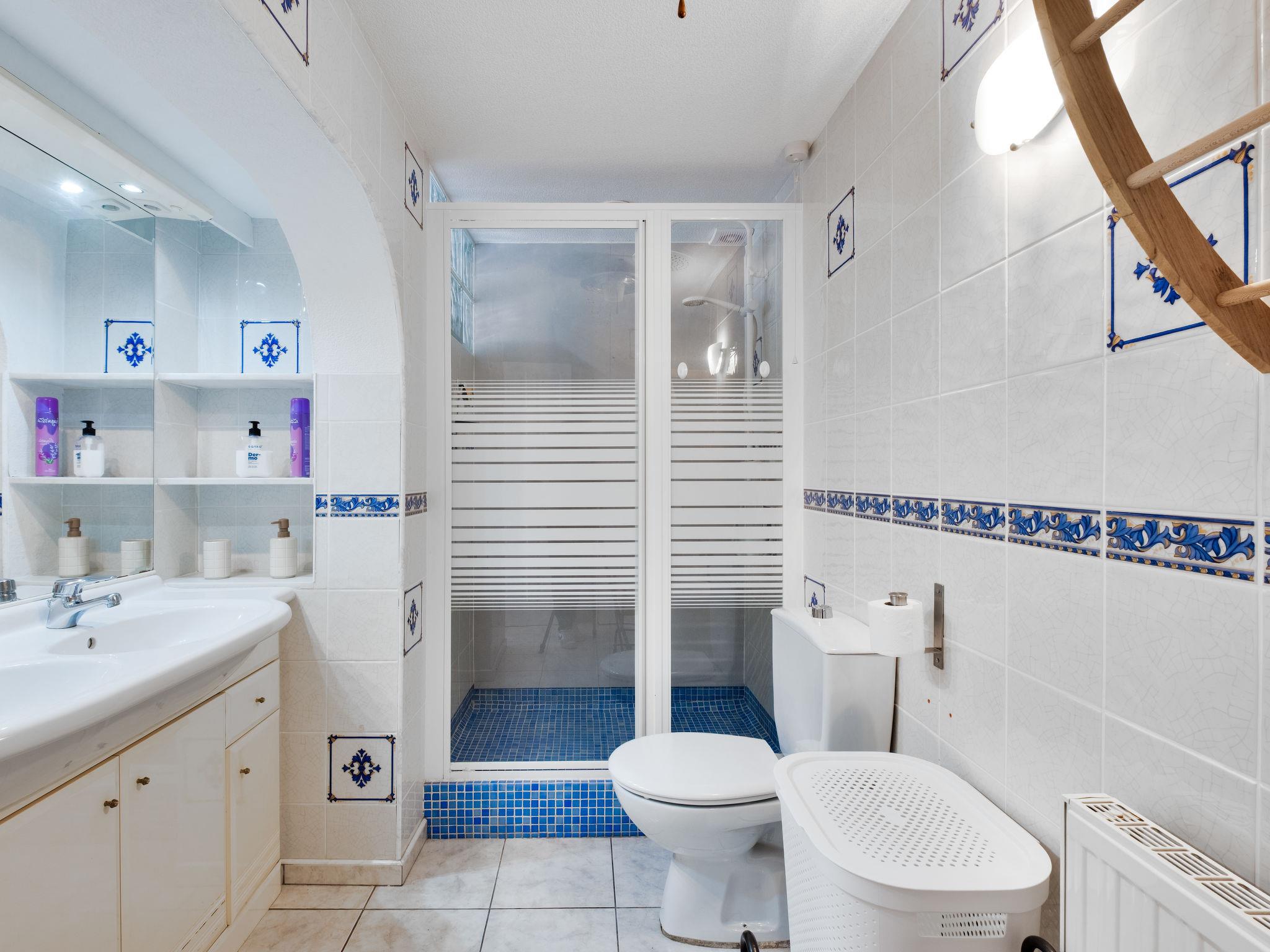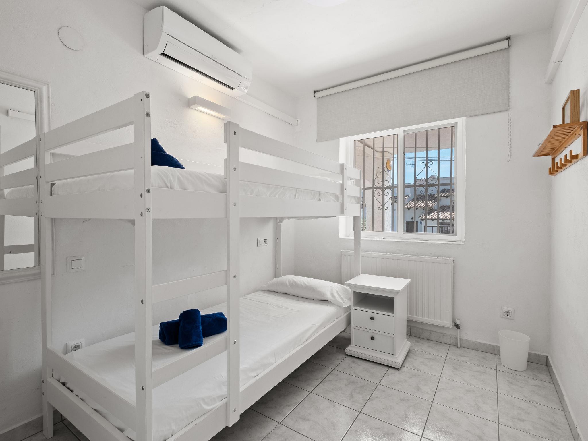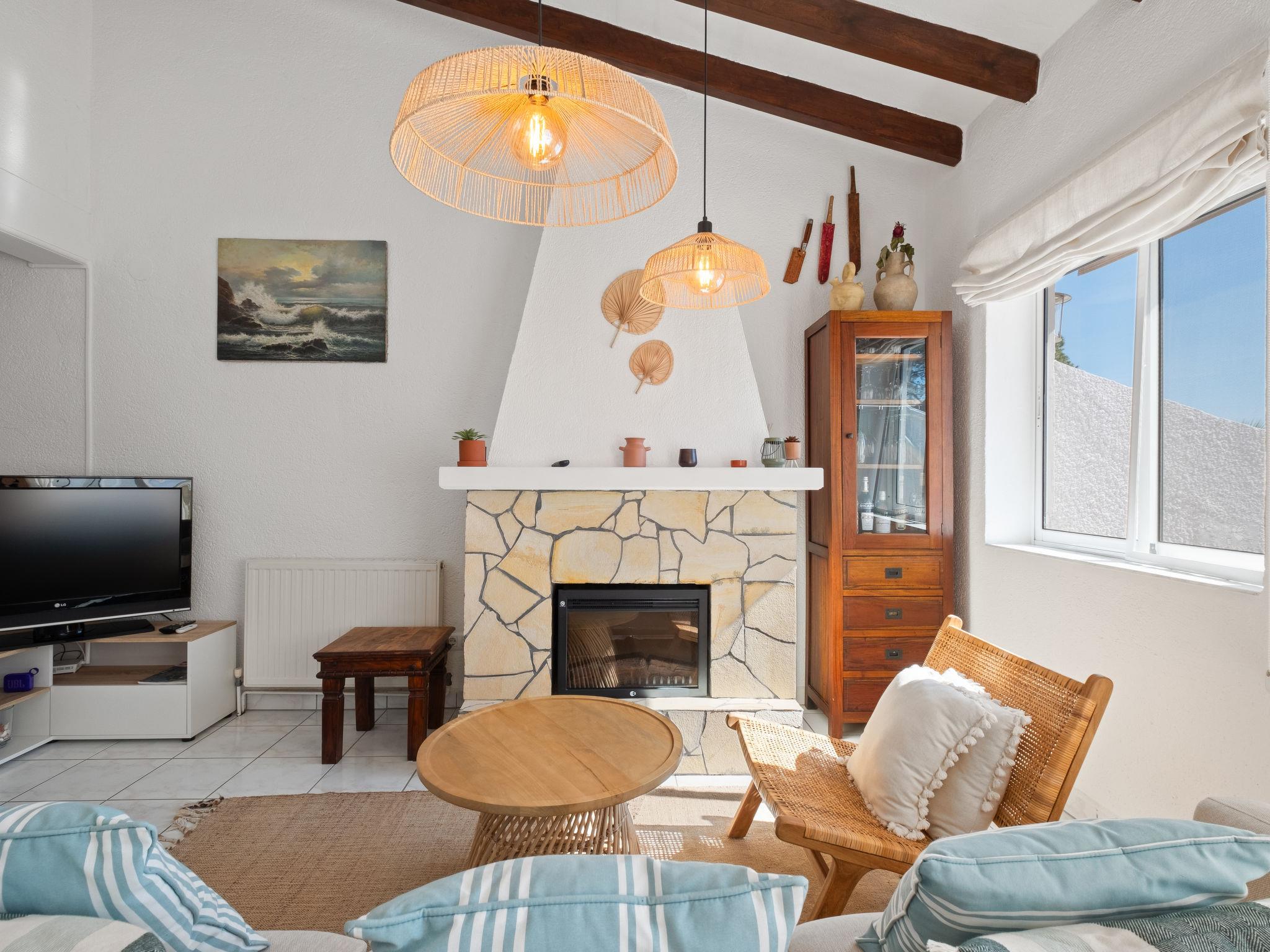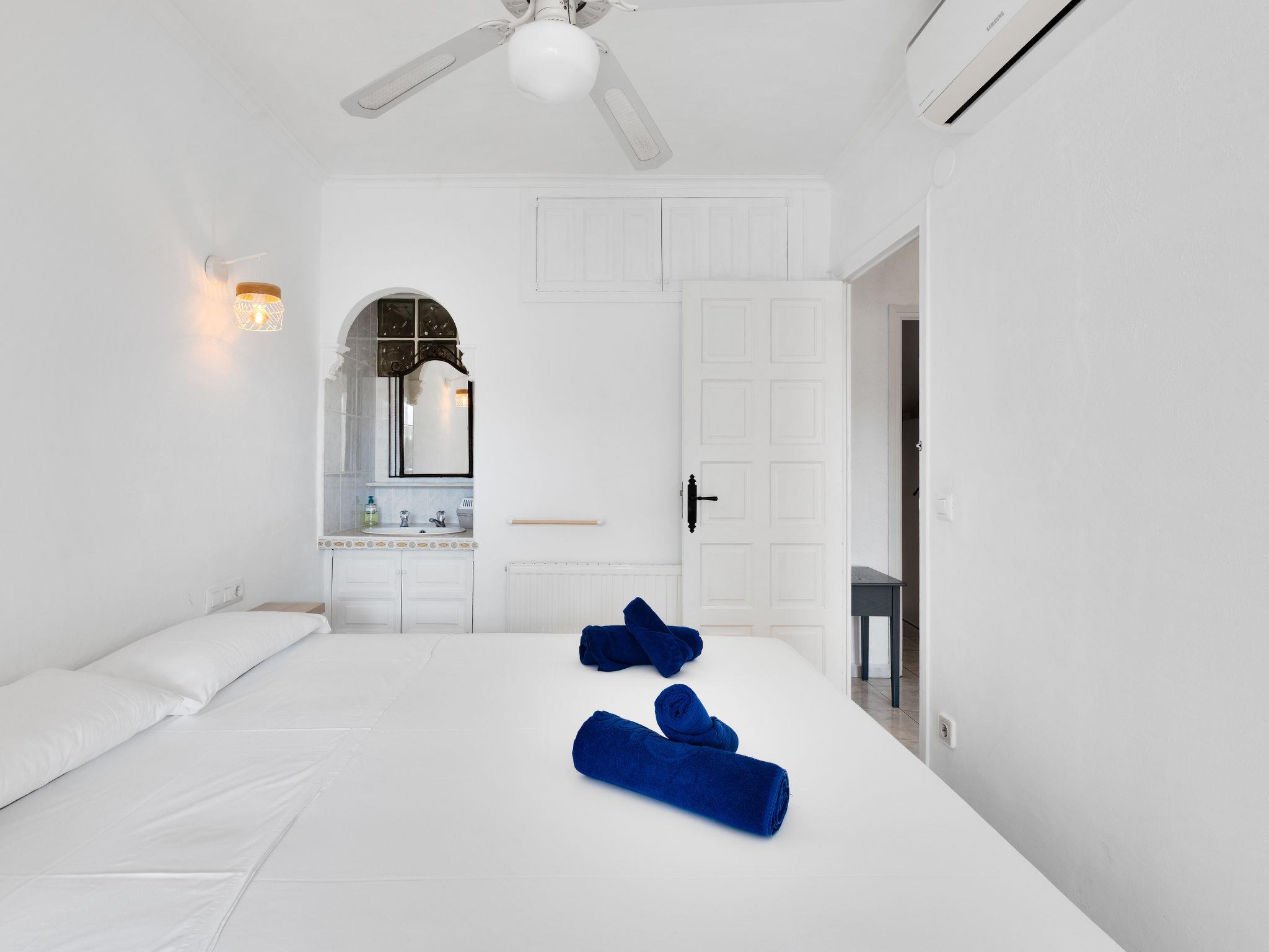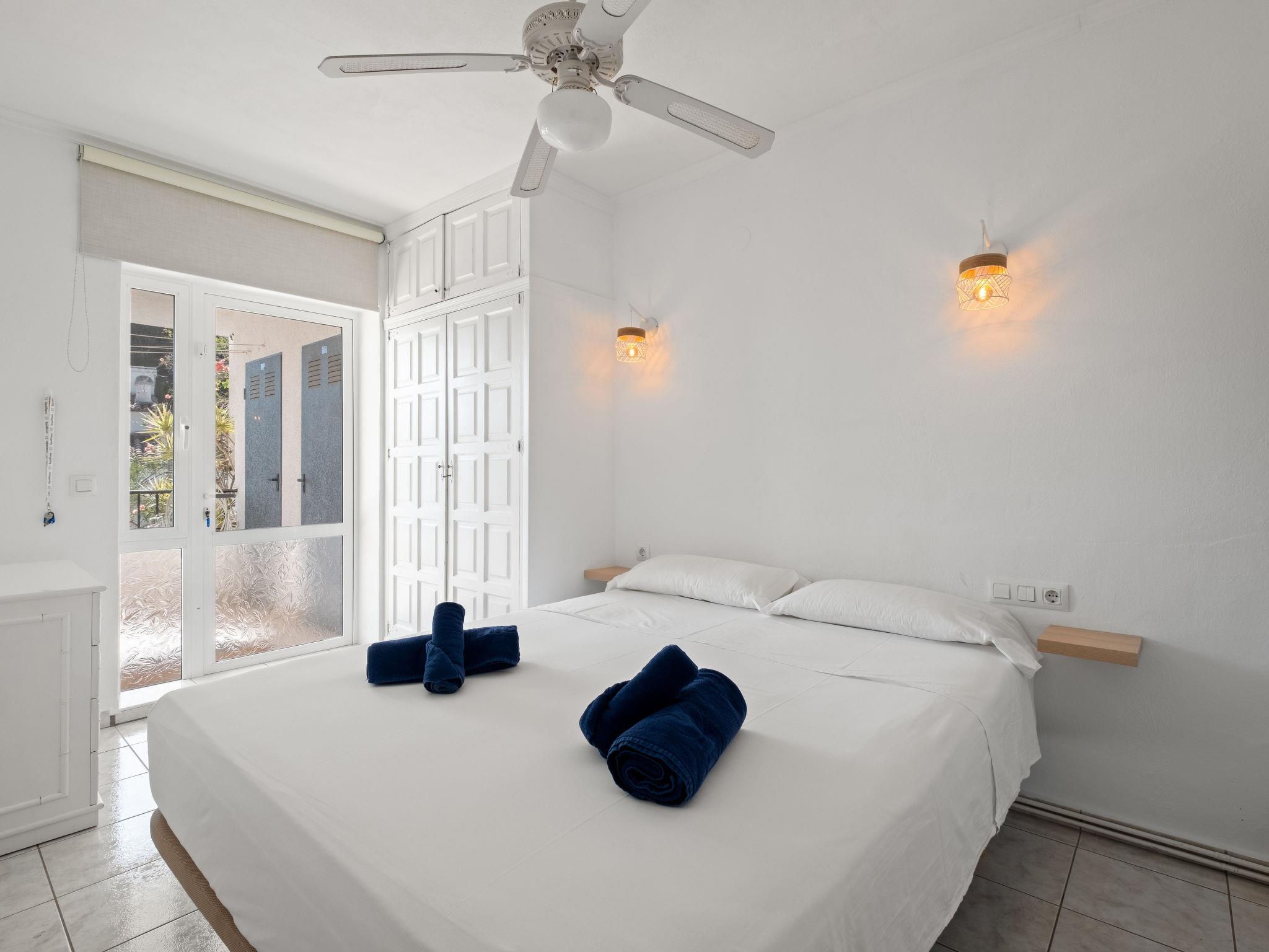 Els Pins: Beautiful terraced house "Lisa", 2 storeys. 3 km from the centre of Moraira, in a quiet, sunny position residential area (villas), traffic calmed area, 2 km from the sea, 2 km from the beach. For shared use: swimming pool (19 x 8 m, seasonal availability: 01.Jan. - 31.Dec.). Children's pool, outdoor shower, tennis, terrace. Private: property (fenced), garden. Terrace. Shop 1 km, grocery 1 km, supermarket 1 km, restaurant 650 m, bus stop 2 km, ferry 3 km, sandy beach "Playa Ampolla", rocky beach "Playa La Galera" 1.5 km. Sports harbour 4 km, marina 4 km, golf course (12 hole) 1.5 km. The owner does not accept any youth groups.