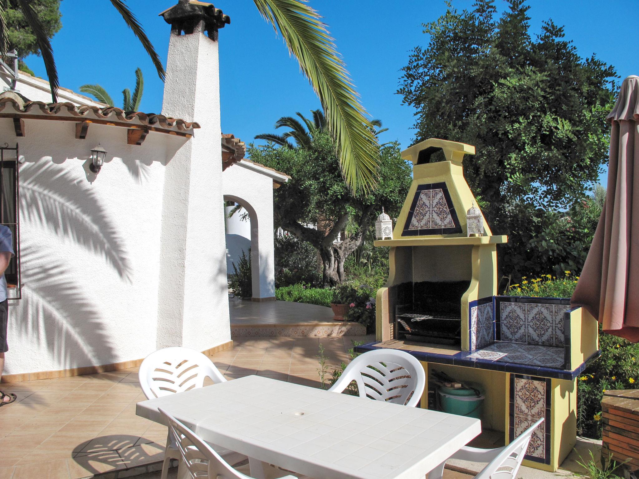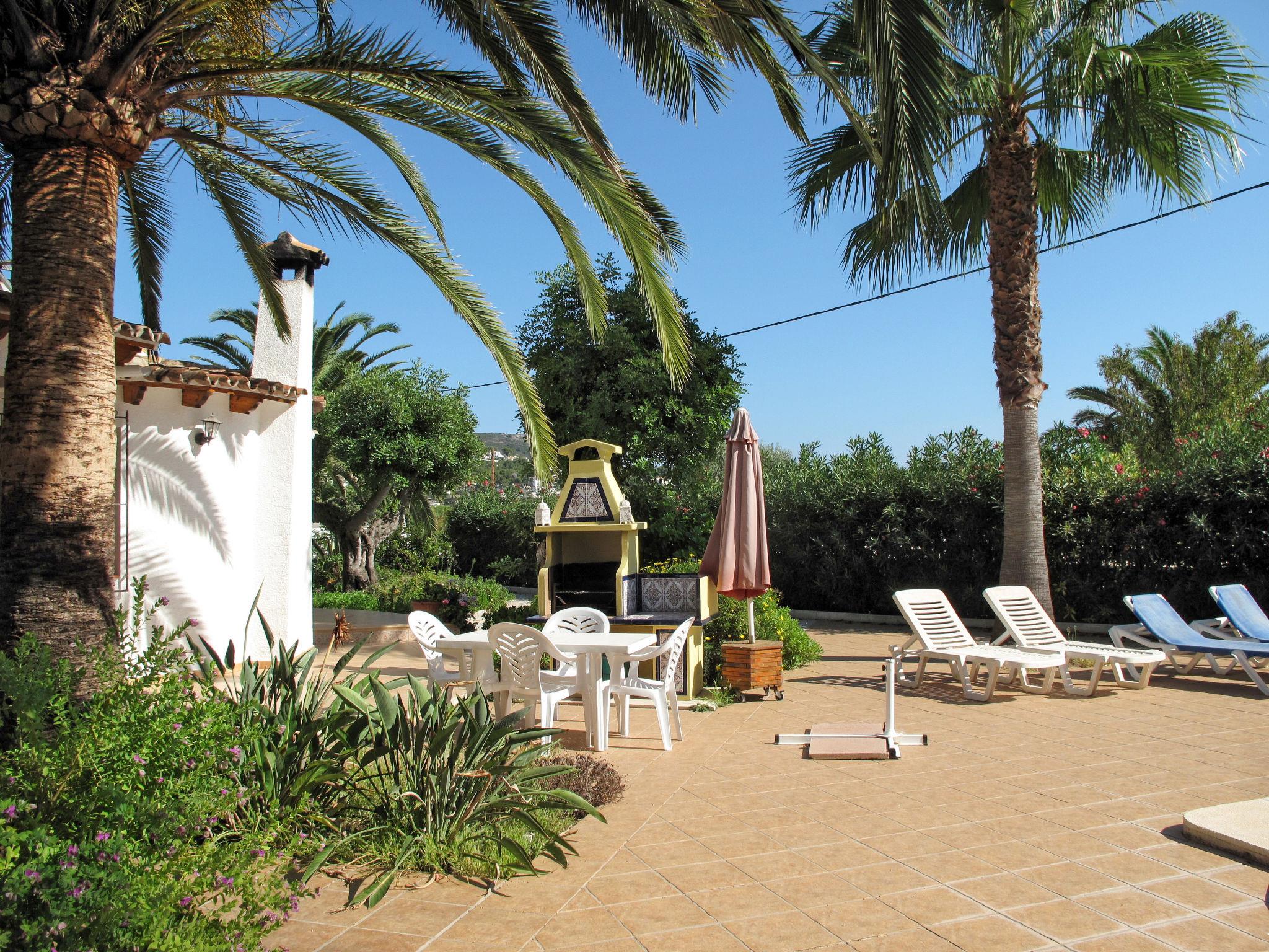 House "Jaen". In the district of Camarrocha 2 km from the centre of Moraira, 130 km from the centre of Valencia, 2 km from the sea. Private: property 800 m2, well-kept garden with trees, swimming pool angular (8 x 4 m, depth 120 - 180 cm, seasonal availability: 01.Jan. - 31.Dec.). Outdoor shower, parking on the premises. Shop 1.5 km, restaurant 1 km, bus stop "Teulada" 750 m, railway station "Teulada" 5.2 km, ferry "Denia" 32 km, sandy beach 2 km. Tennis 1 km.