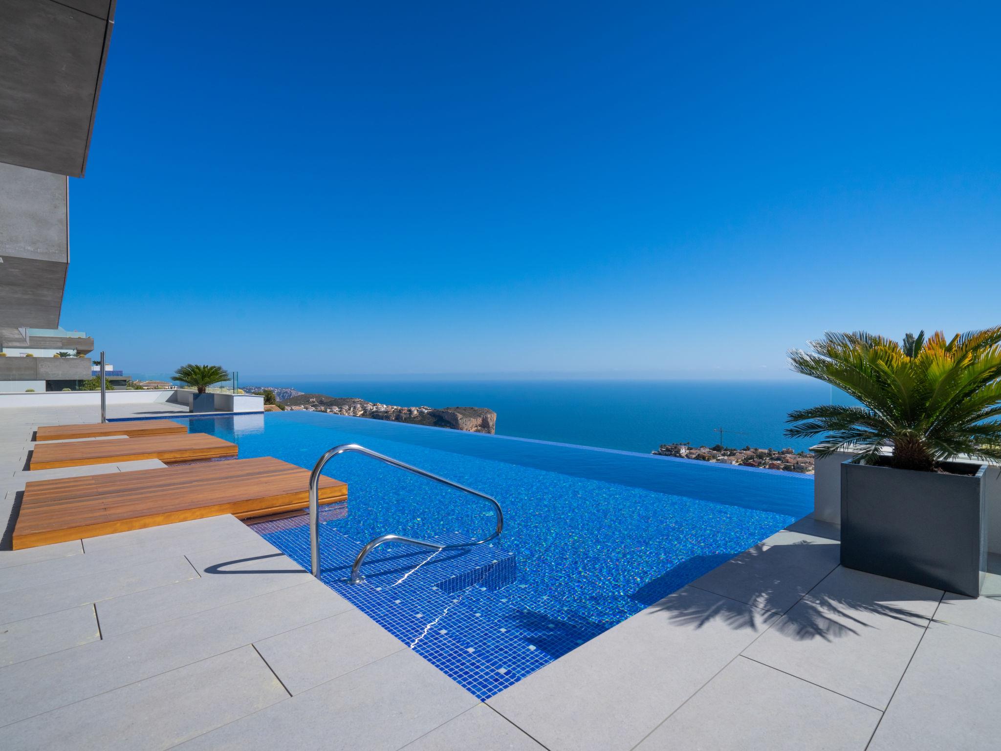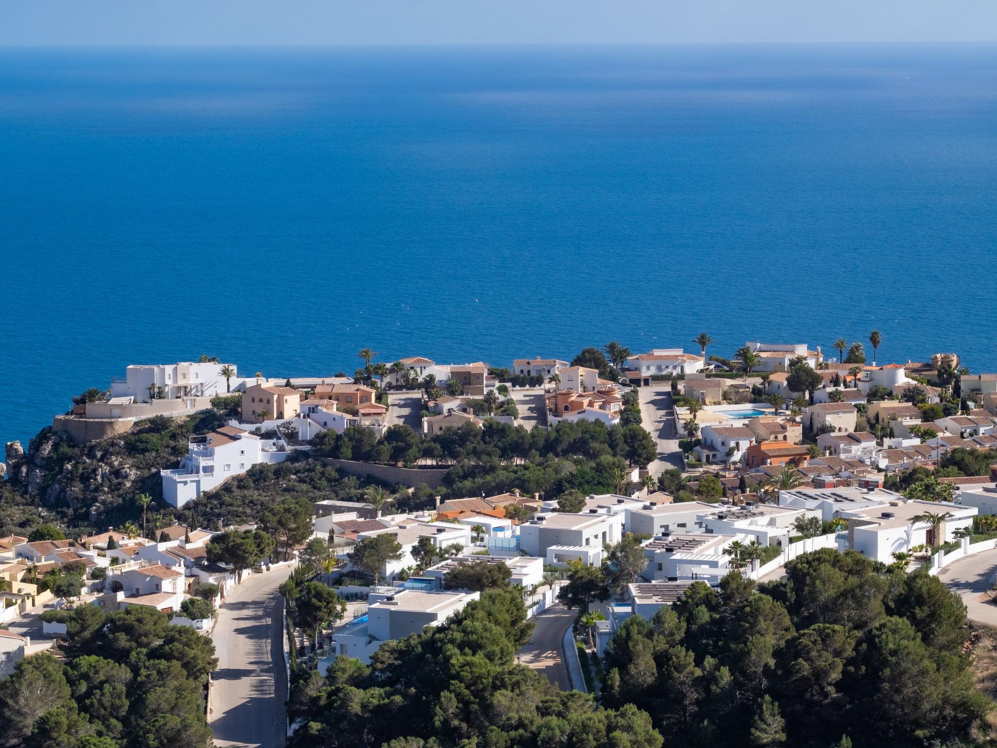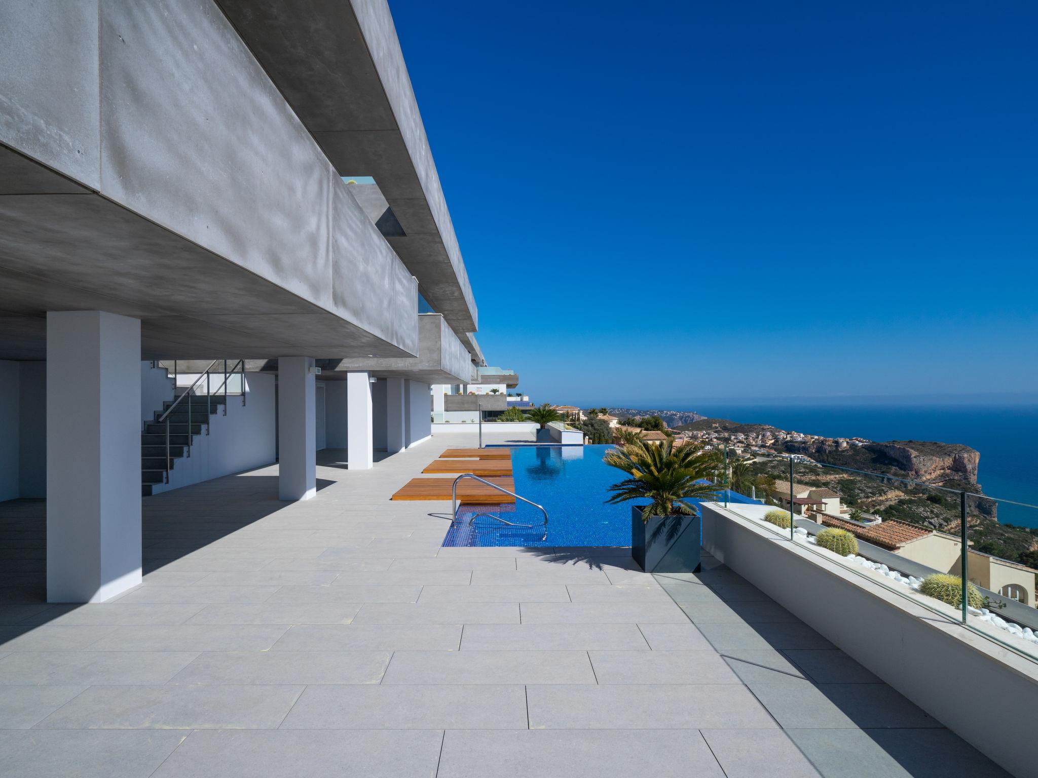 Cumbre del Sol: Very modern, beautiful apartment block "Blue Infinity 1", built in 2021. In the resort 6 km from the centre of Moraira, in a sunny, elevated position on top of a hill, traffic calmed area, 2 km from the sea, 2 km from the beach. For shared use: property (fenced), swimming pool (seasonal availability: 01.Jan. - 31.Dec.) with internal staircase. Shower/WC in the pool area, terrace. In the house: sauna, fitness room, solarium, hamam, lift. Grocery 2 km, supermarket 2 km, bus stop "Benitachell" 4.8 km, railway station "Teulada" 8.4 km, ferry "Denia" 23.7 km, sandy beach "Playa de la Ampolla" 6 km, rocky beach "Cala Moraig" 2 km. Sports harbour 6 km, marina 6 km, golf course (18 hole) 9 km. Nearby attractions: Aqualandia, Mundomar, Terra Mítica, Terra Natura, Benidorm Palace (Benidorm), Les Fonts de l'Algar, Castillo de Guadalest. The owner does not accept any youth groups.