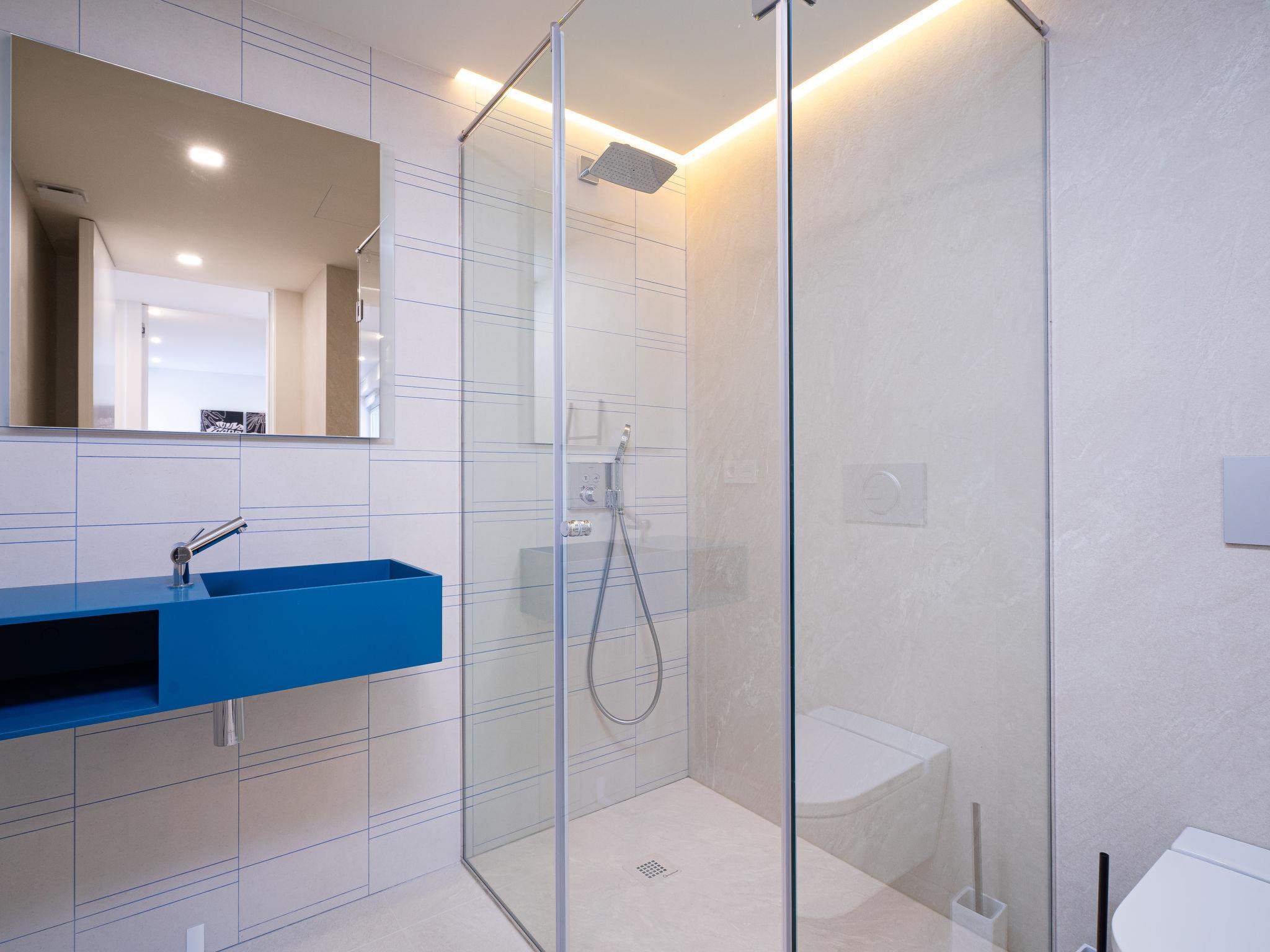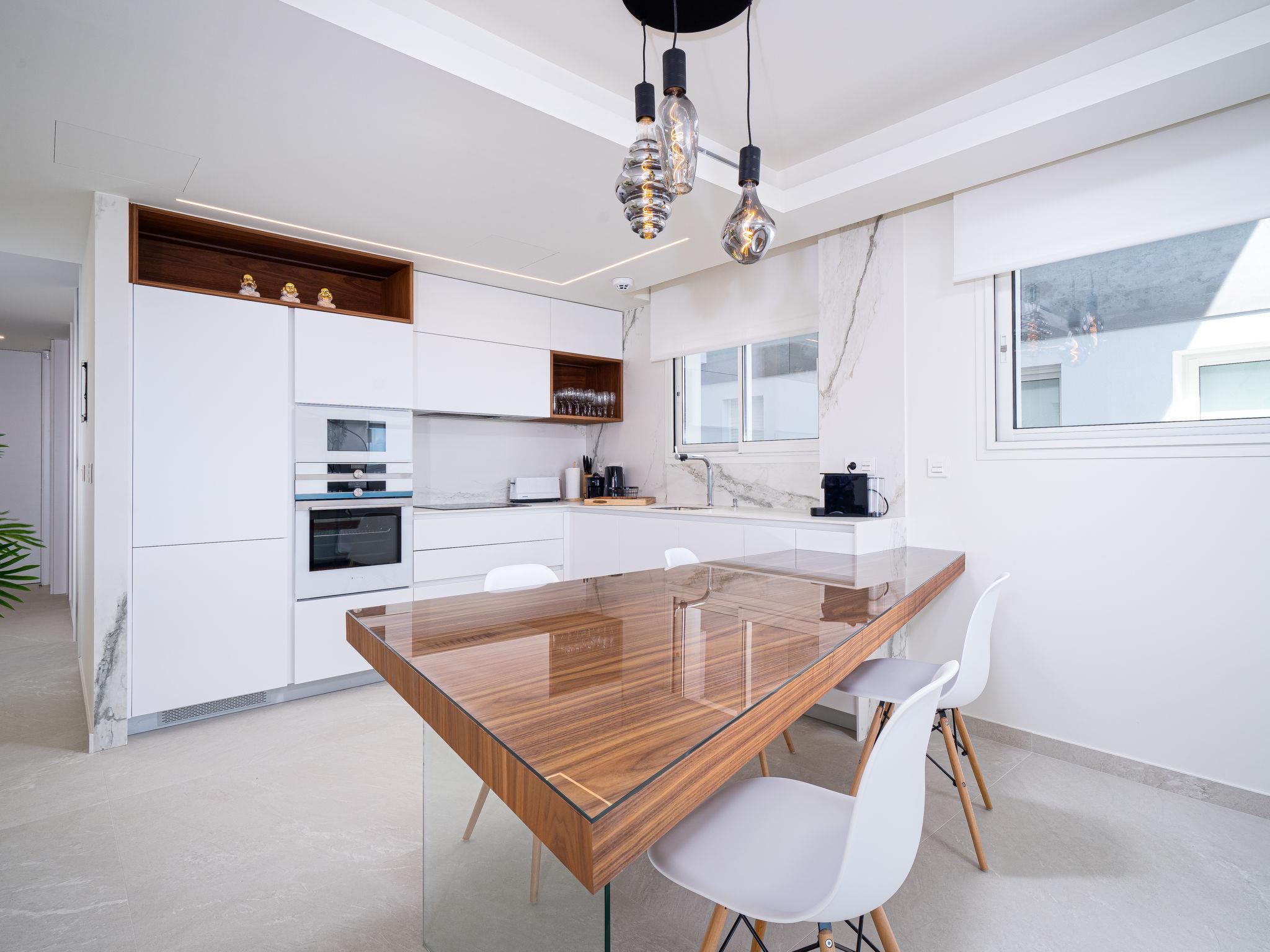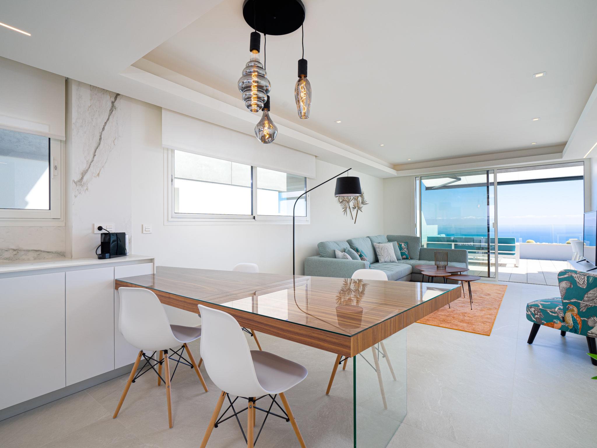 "Blue Infinity 1", 4-room apartment 120 m2. Object suitable for 4 adults + 2 children. Bright, beautiful and modern furnishings: open living/dining room with digital TV, air conditioning and forced-air heating. Exit to the terrace. 1 room with 1 french bed (1 x 160 cm, length 200 cm), shower/WC, double hand-basin, air conditioning and forced-air heating. Exit to the terrace. 1 room with 1 french bed (1 x 160 cm, length 200 cm), air conditioning and forced-air heating. 1 room with 1 pull-out bed (2 pers. 2 x 90 cm, length 200 cm), air conditioning and forced-air heating. Open kitchen (oven, dishwasher, 3 induction hot plates, toaster, kettle, microwave, electric coffee machine). Shower/WC. Large terrace. Terrace furniture. Panoramic view of the sea and the countryside. Facilities: washing machine, iron, children's high chair, baby cot for up to 2 year olds, hair dryer. Internet (WiFi, free). Parking. VT-505806-A // Reg. Nr.: ESFCTU00000303800099837600000000000000000VT-505806-A7
