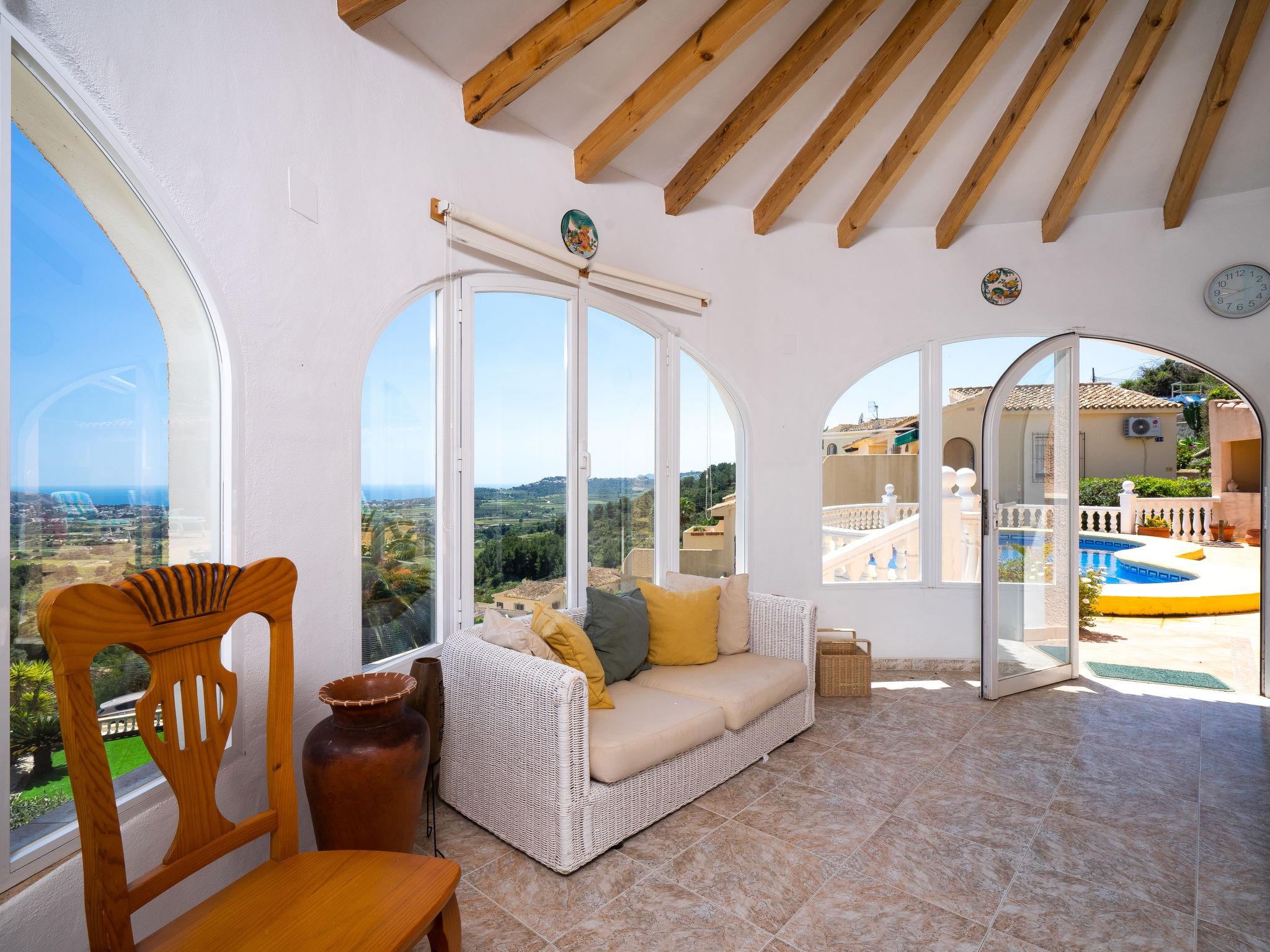 Castellons Vida: Beautiful, cosy house "Castellons Vida". In the resort Moraira, in a quiet, sunny, elevated position residential area (villas), traffic calmed area, 8 km from the sea, 8 km from the beach. Private: property 312 m2 (fenced), swimming pool (7 x 4 m, depth 120 - 200 cm, seasonal availability: 01.Jan. - 31.Dec.). Supermarket 5 km, bus stop "Teulada" 2.1 km, railway station "Teulada" 1.8 km, ferry "Denia" 21.5 km, sandy beach "Playa de la Ampolla" 9 km. Sports harbour 7 km, golf course (18 hole) 10 km. Nearby attractions: Aqualandia, Mundomar, Terra Mítica, Terra Natura, Benidorm Palace (Benidorm), Les Fonts de l'Algar, Castillo de Guadalest. The owner does not accept any youth groups.