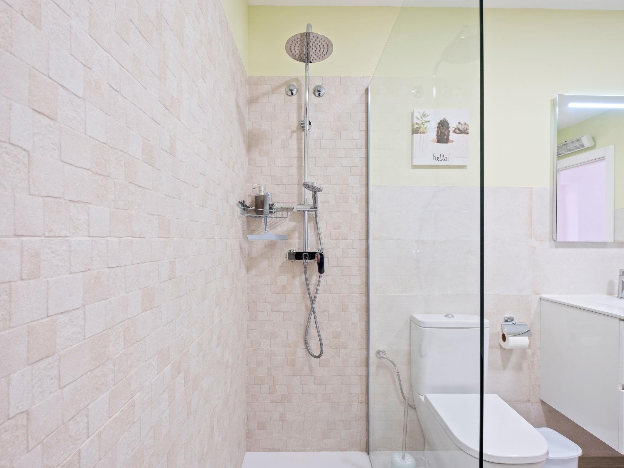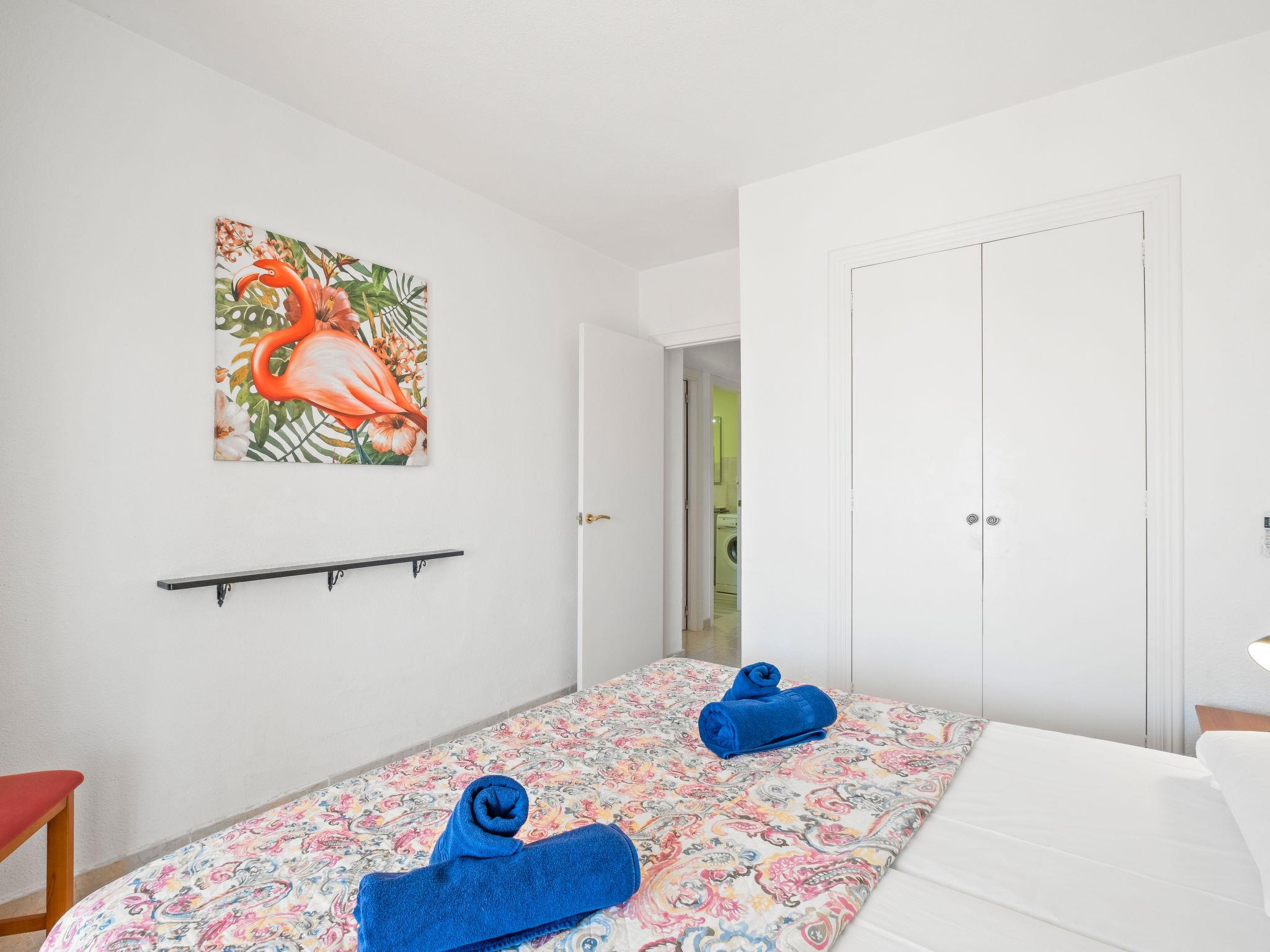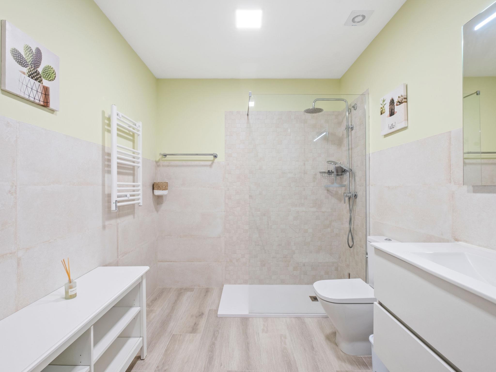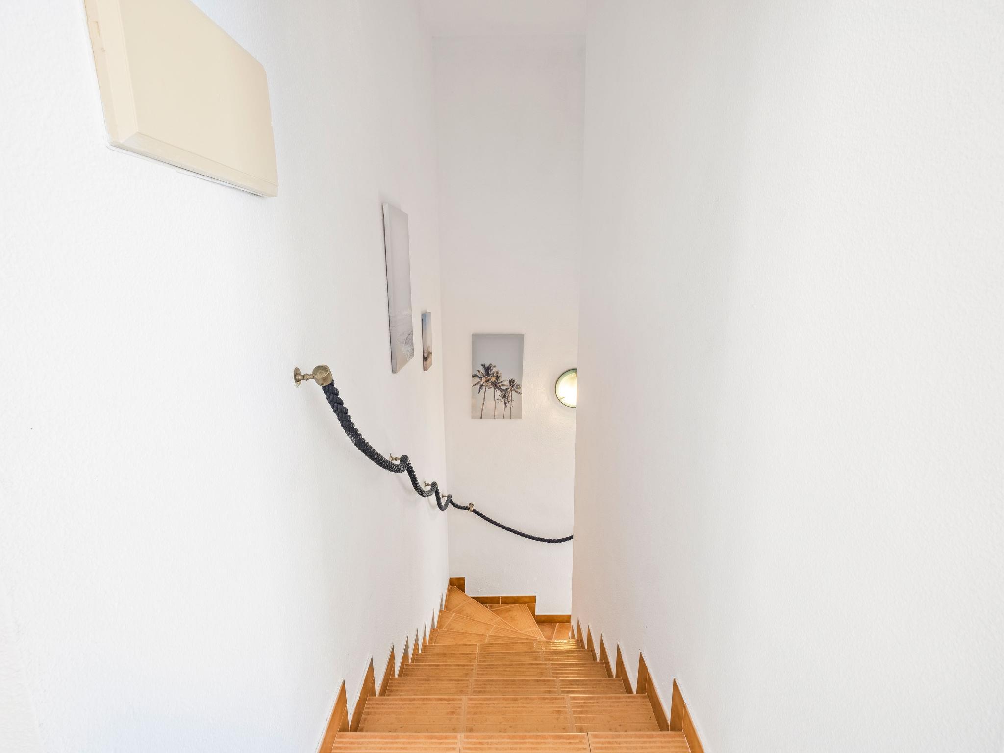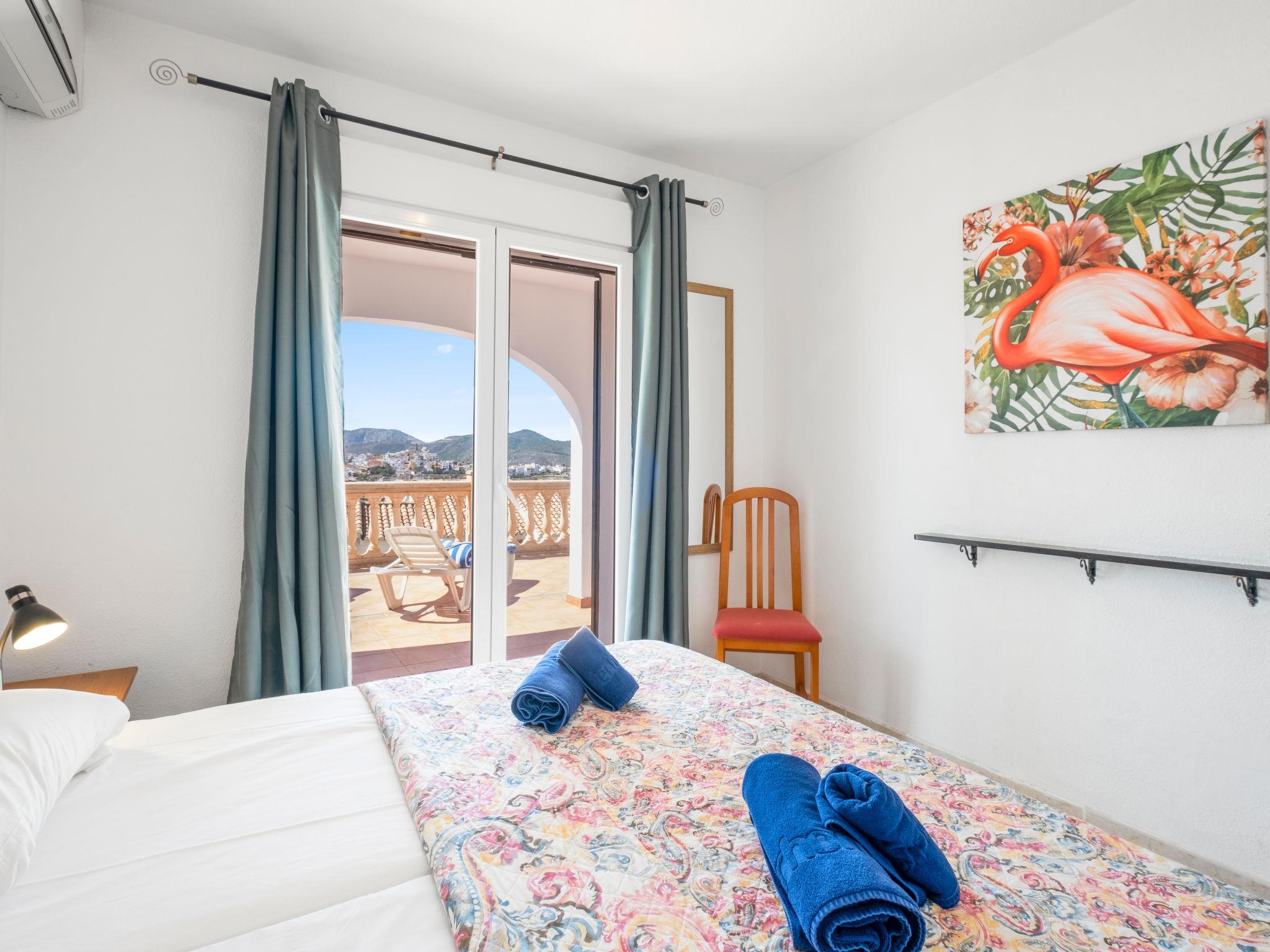 "Las Mimosas", 3-room bungalow 110 m2. Bright, comfortable and cosy furnishings: open living/dining room with digital TV, air conditioning and forced-air heating. Exit to the terrace. Small, open kitchen (oven, 4 ceramic glass hob hotplates, toaster, kettle, microwave, electric coffee machine). Bath/WC, sep. WC. On the lower ground floor: 1 room with 1 french bed (1 x 180 cm, length 190 cm), air conditioning and forced-air heating. Exit to the terrace. 1 room with 1 french bed (160 cm, length 200 cm), air conditioning and forced-air heating. Exit to the terrace. Terrace. Terrace furniture, deck chairs. Very beautiful view of the countryside and the resort. Facilities: washing machine, iron, hair dryer. Internet (WiFi, free). Please note: non-smoking house. TV only DE. VT-481203-A // Reg. Nr.: ESFCTU00000303800002700700000000000000000VT-481203-A9