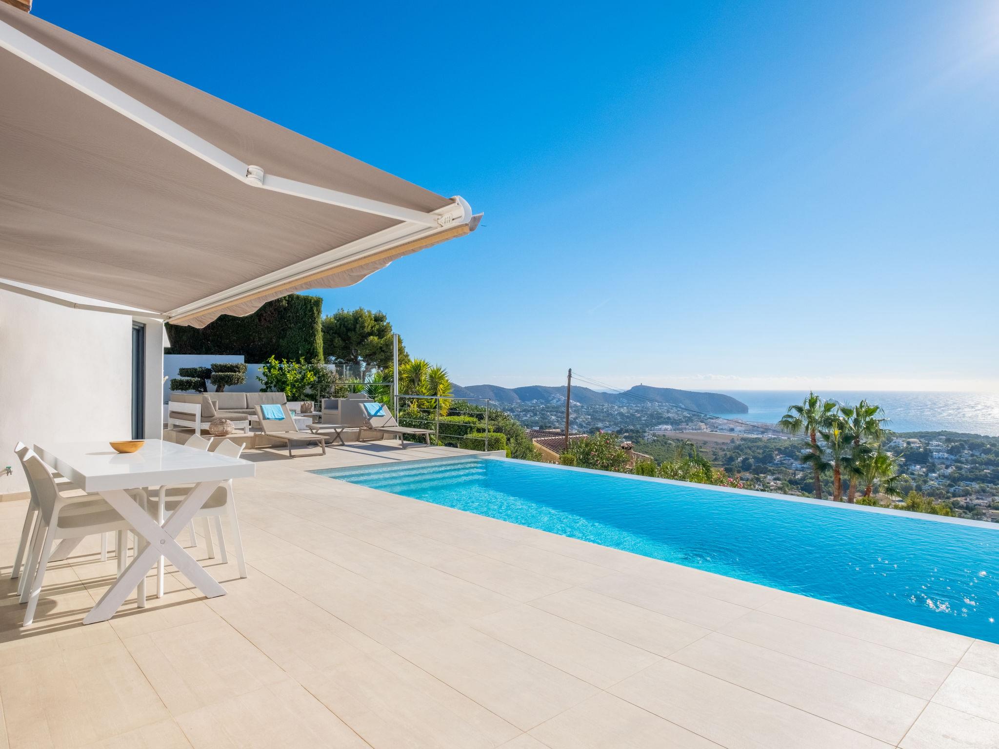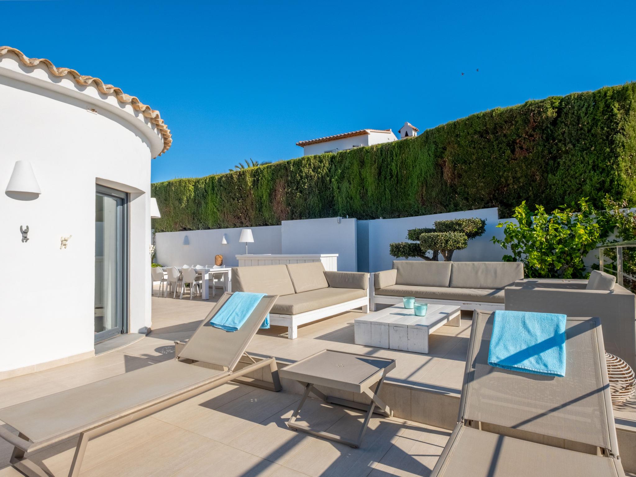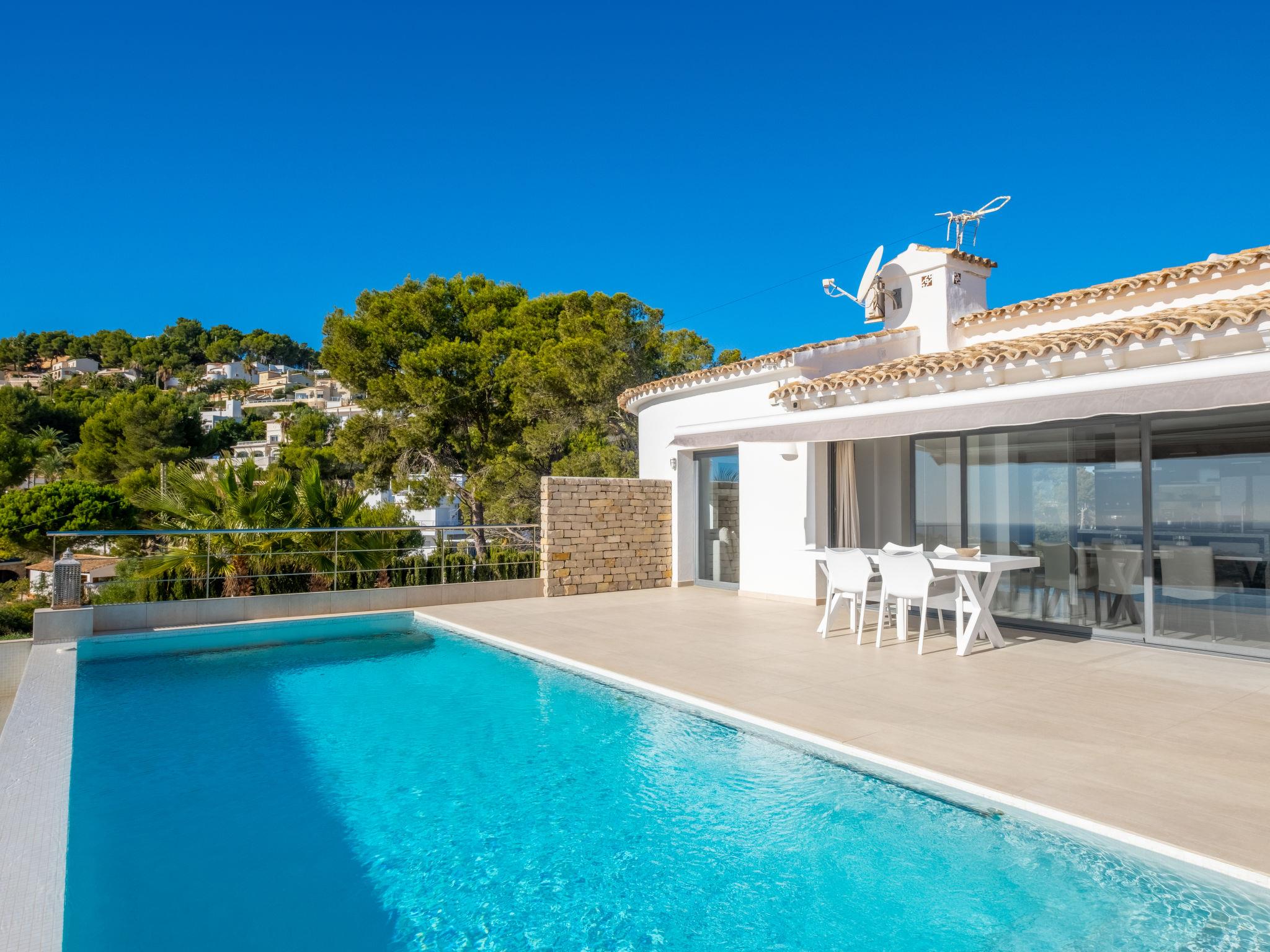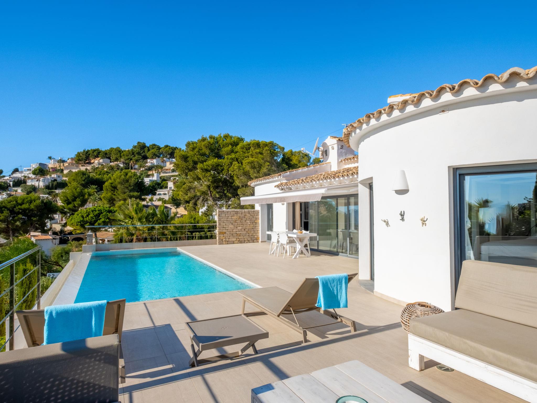 Beautiful villa "Casawaouw", 2 storeys. 3 km from the centre of Moraira, 13 km from the centre of Calpe, in a sunny position residential area (villas), traffic calmed area, 3 km from the sea, 300 km from the beach. Private: property 896 m2 (fenced), beautiful, well-kept garden, swimming pool (8 x 4 m, depth 120 - 190 cm, seasonal availability: 01.Jan. - 31.Dec.). Terrace, garden furniture. Grocery 3 km, supermarket 3 km, restaurant 2 km, bus stop "Moraira" 3.7 km, railway station "Teulada" 4.3 km, ferry "Denia" 30.3 km, sandy beach "Playa de la Ampolla" 3 km. Sports harbour 4 km, marina 4 km, golf course (18 hole) 3 km. Nearby attractions: Aqualandia, Mundomar, Terra Mítica, Terra Natura, Benidorm Palace (Benidorm), Les Fonts de l'Algar, Castillo de Guadalest. The owner does not accept any youth groups.