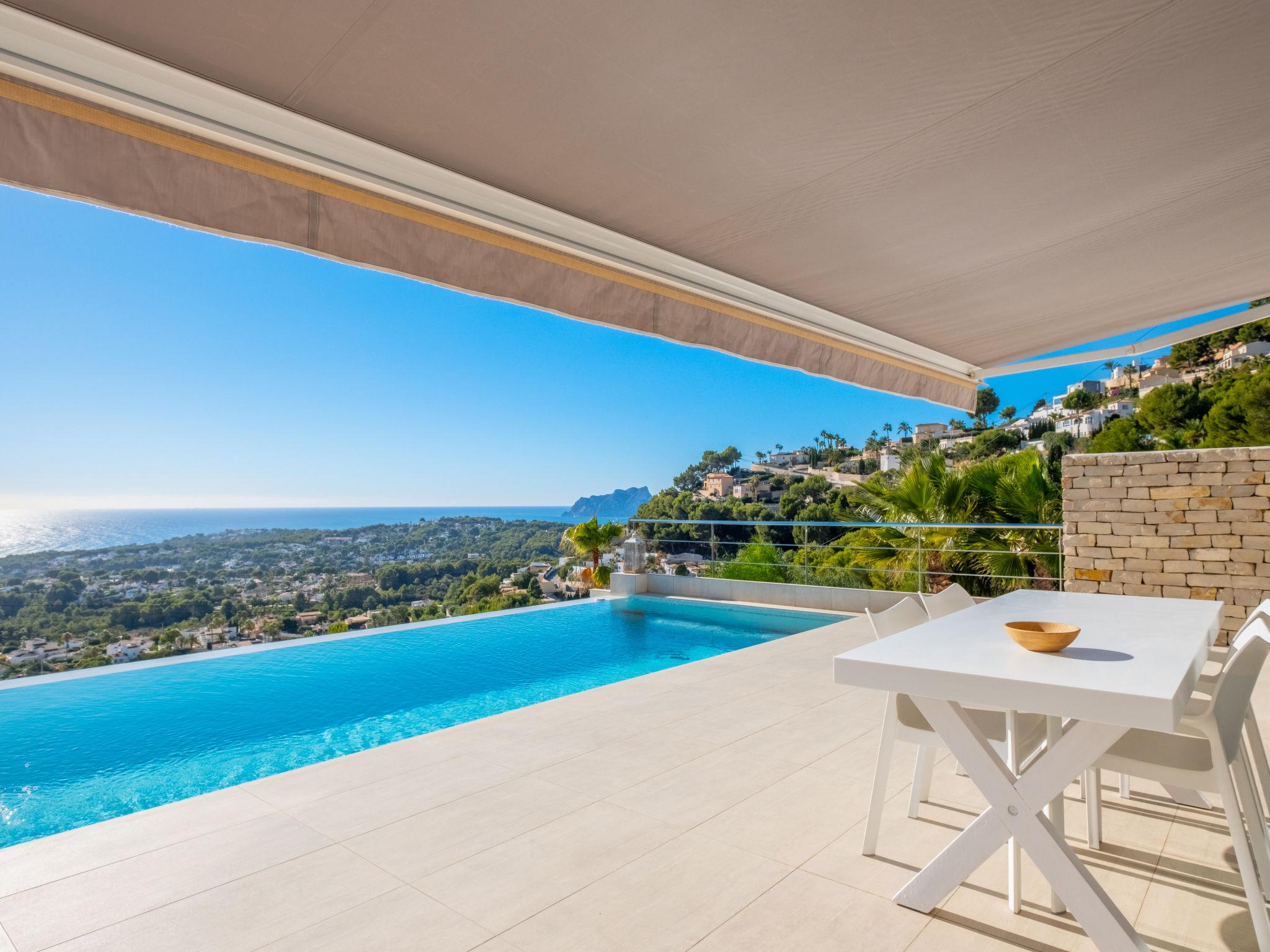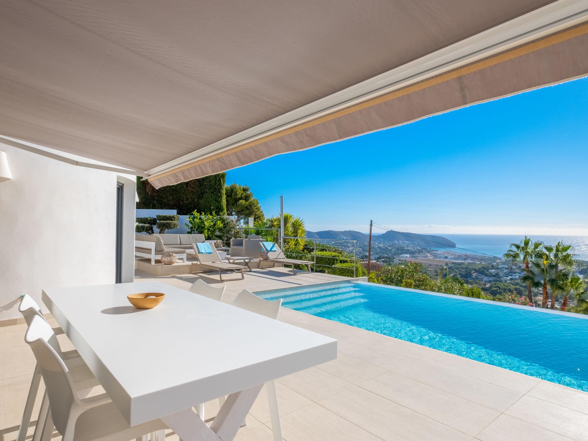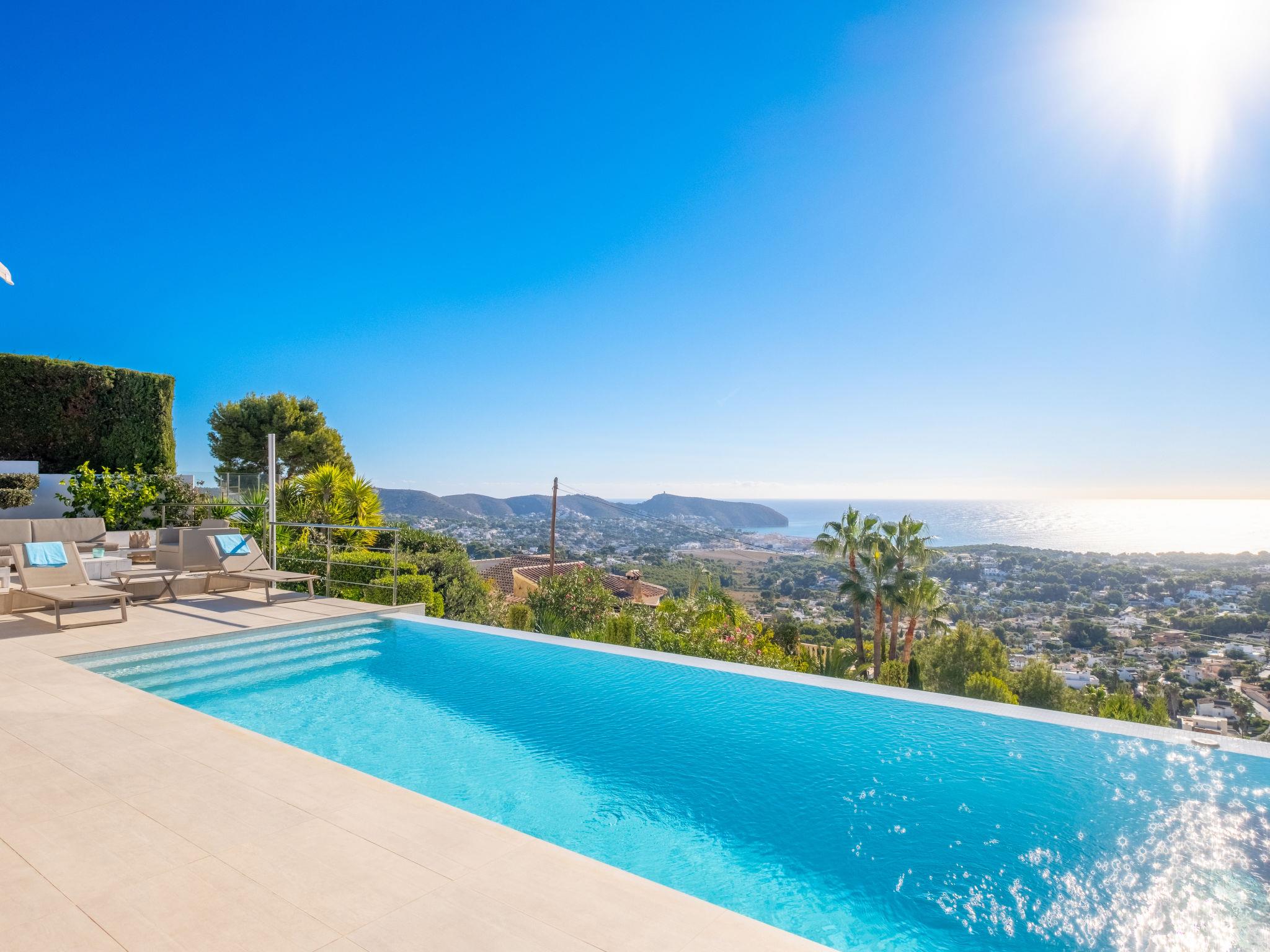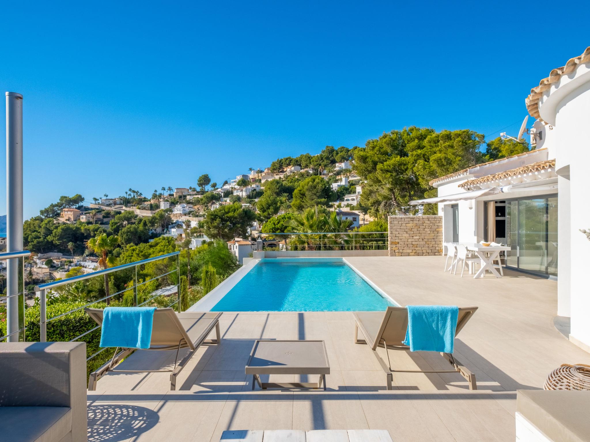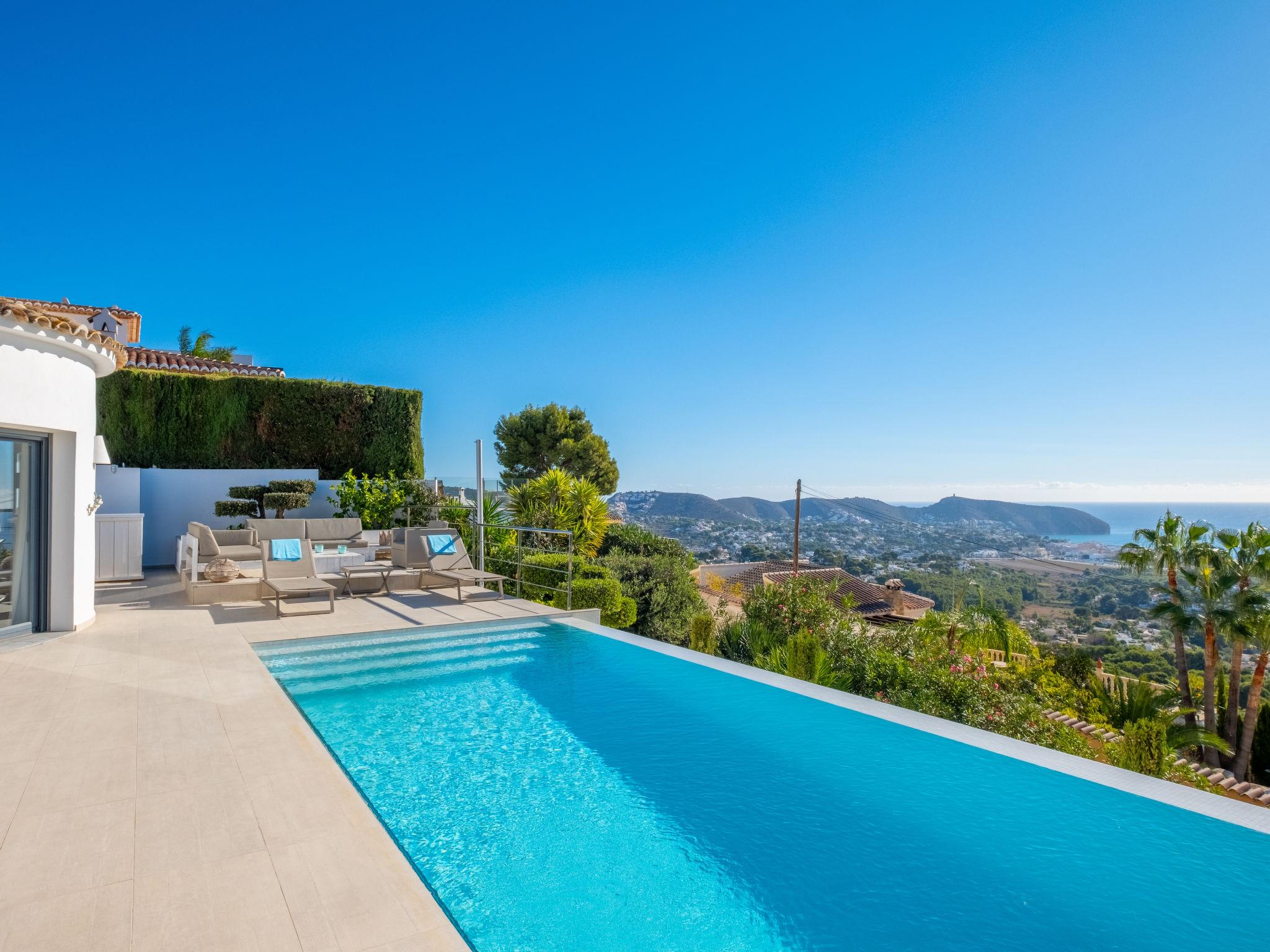 Beautiful villa "Casawaouw", 2 storeys. 3 km from the centre of Moraira, 13 km from the centre of Calpe, in a sunny position residential area (villas), traffic calmed area, 3 km from the sea, 300 km from the beach. Private: property 896 m2 (fenced), beautiful, well-kept garden, swimming pool (8 x 4 m, depth 120 - 190 cm, seasonal availability: 01.Jan. - 31.Dec.). Terrace, garden furniture. Grocery 3 km, supermarket 3 km, restaurant 2 km, bus stop "Moraira" 3.7 km, railway station "Teulada" 4.3 km, ferry "Denia" 30.3 km, sandy beach "Playa de la Ampolla" 3 km. Sports harbour 4 km, marina 4 km, golf course (18 hole) 3 km. Nearby attractions: Aqualandia, Mundomar, Terra Mítica, Terra Natura, Benidorm Palace (Benidorm), Les Fonts de l'Algar, Castillo de Guadalest. The owner does not accept any youth groups.