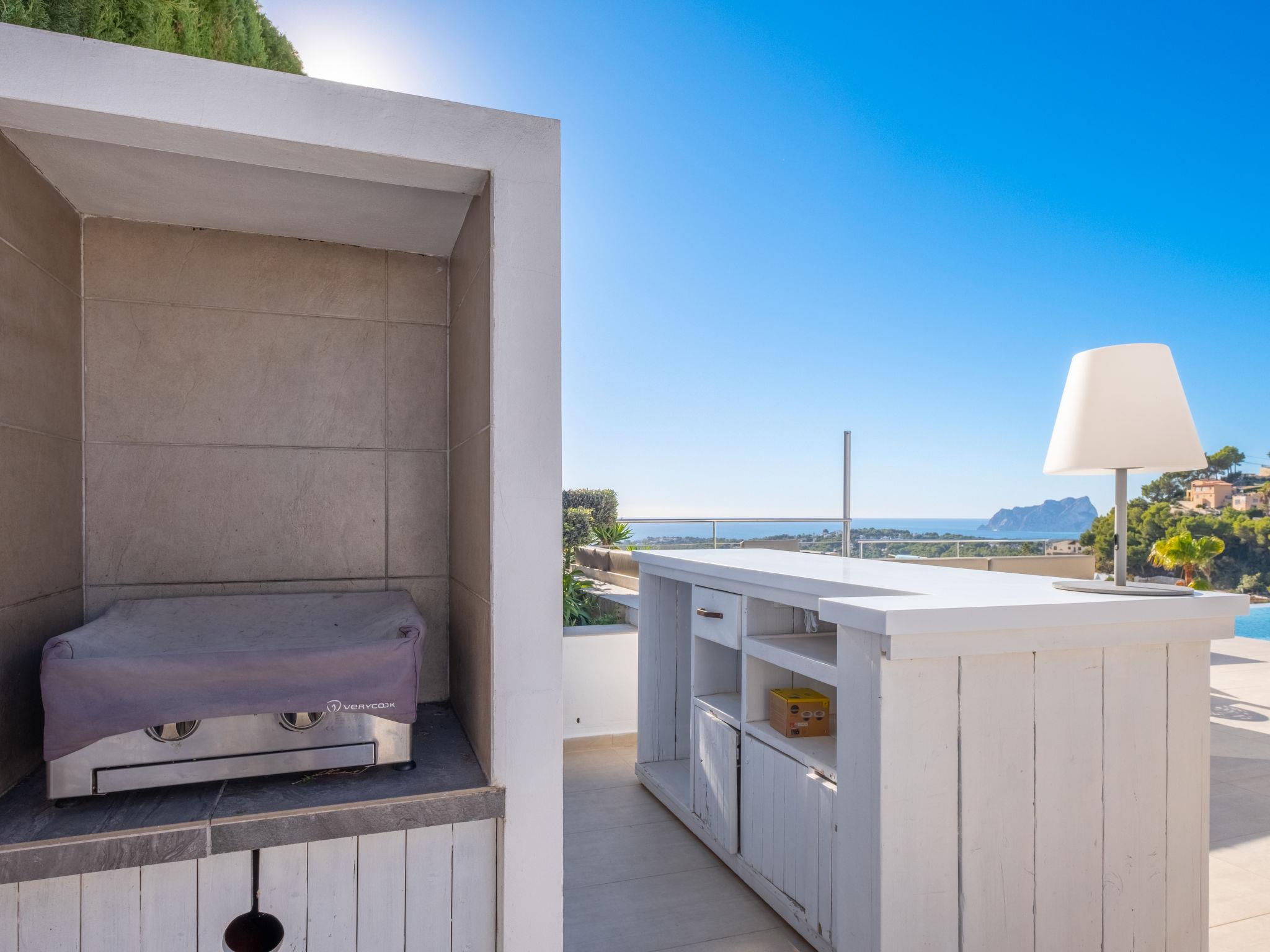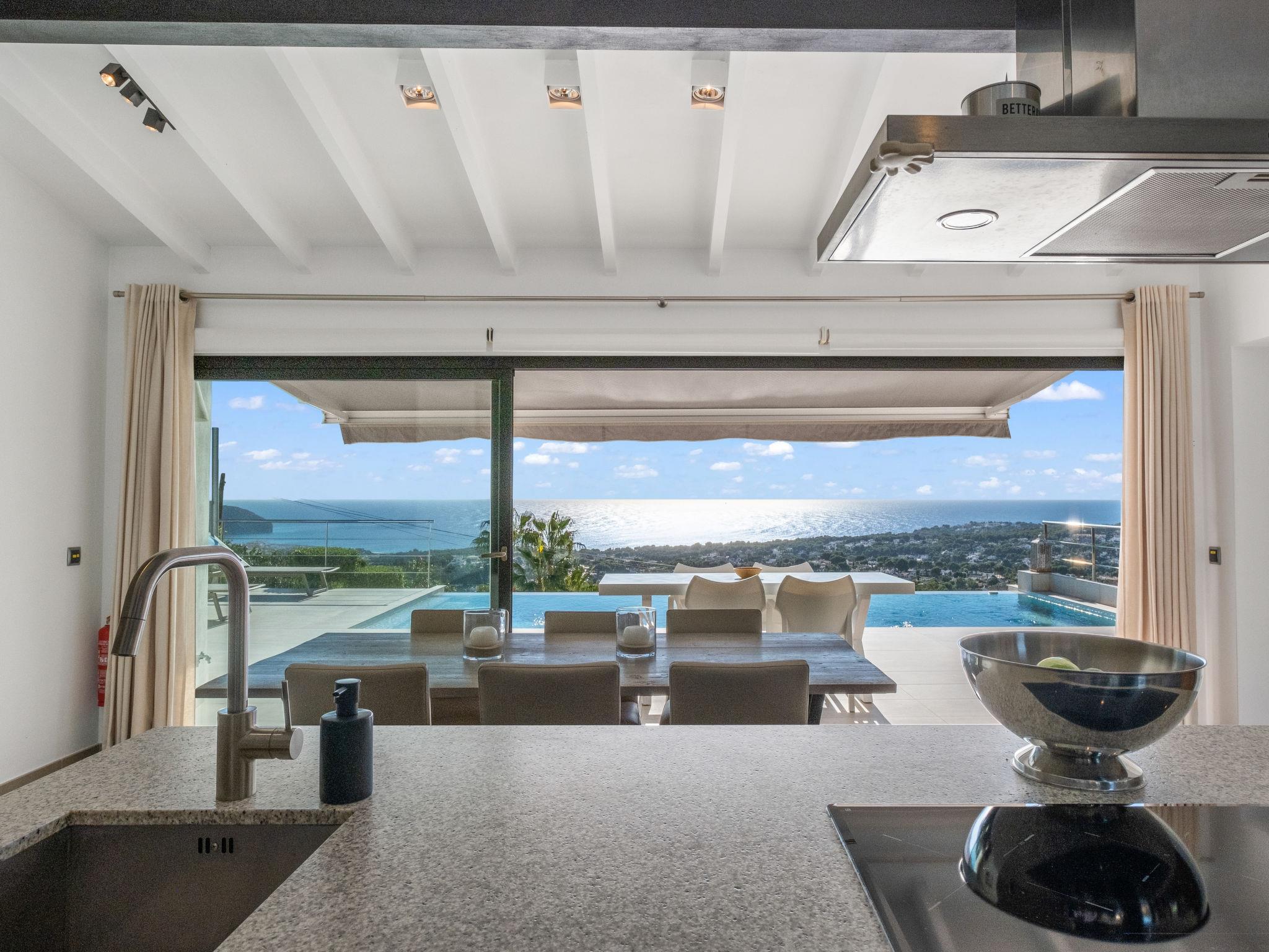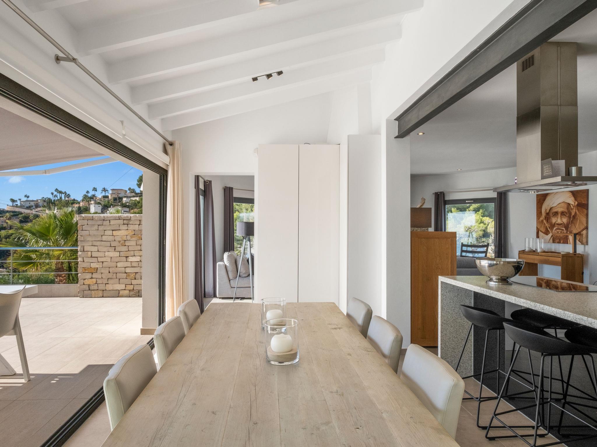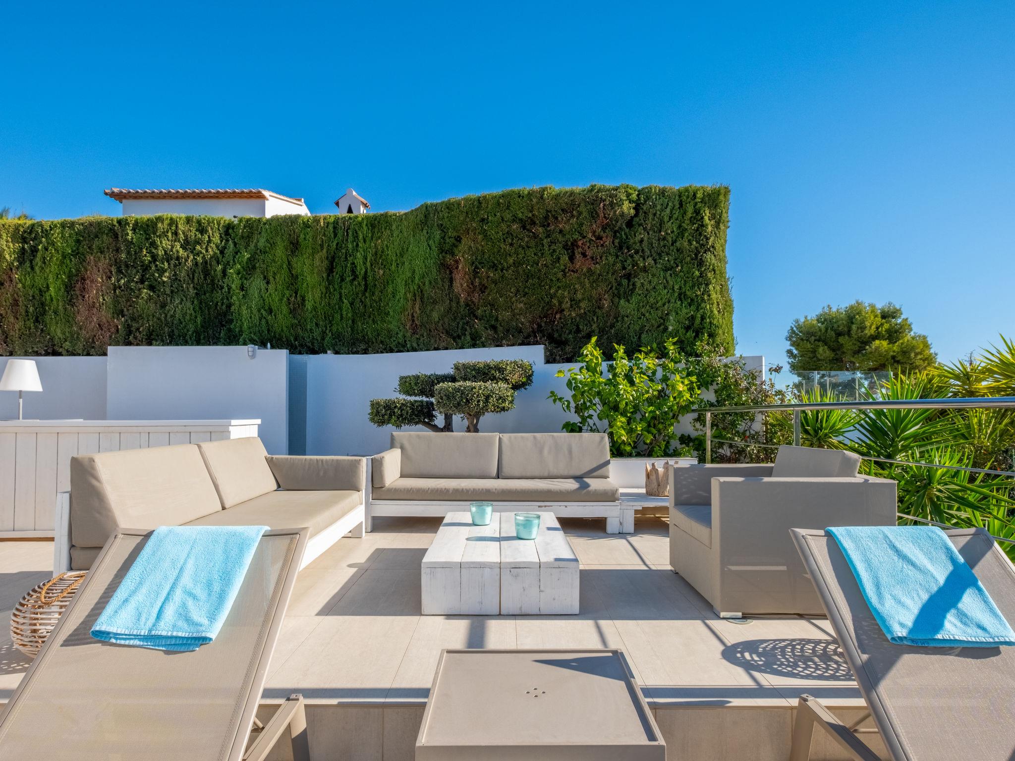 Beautiful villa "Casawaouw", 2 storeys. 3 km from the centre of Moraira, 13 km from the centre of Calpe, in a sunny position residential area (villas), traffic calmed area, 3 km from the sea, 300 km from the beach. Private: property 896 m2 (fenced), beautiful, well-kept garden, swimming pool (8 x 4 m, depth 120 - 190 cm, seasonal availability: 01.Jan. - 31.Dec.). Terrace, garden furniture. Grocery 3 km, supermarket 3 km, restaurant 2 km, bus stop "Moraira" 3.7 km, railway station "Teulada" 4.3 km, ferry "Denia" 30.3 km, sandy beach "Playa de la Ampolla" 3 km. Sports harbour 4 km, marina 4 km, golf course (18 hole) 3 km. Nearby attractions: Aqualandia, Mundomar, Terra Mítica, Terra Natura, Benidorm Palace (Benidorm), Les Fonts de l'Algar, Castillo de Guadalest. The owner does not accept any youth groups.