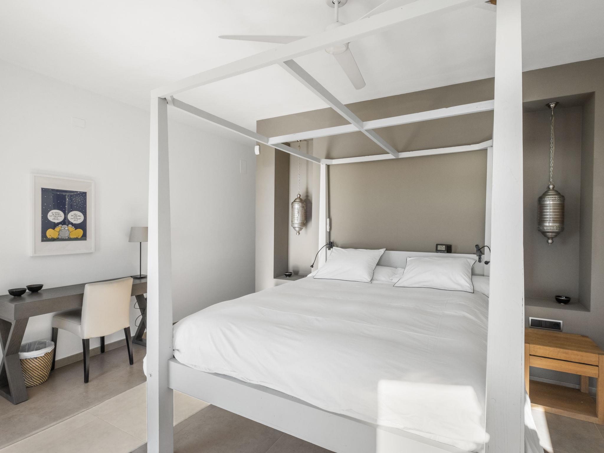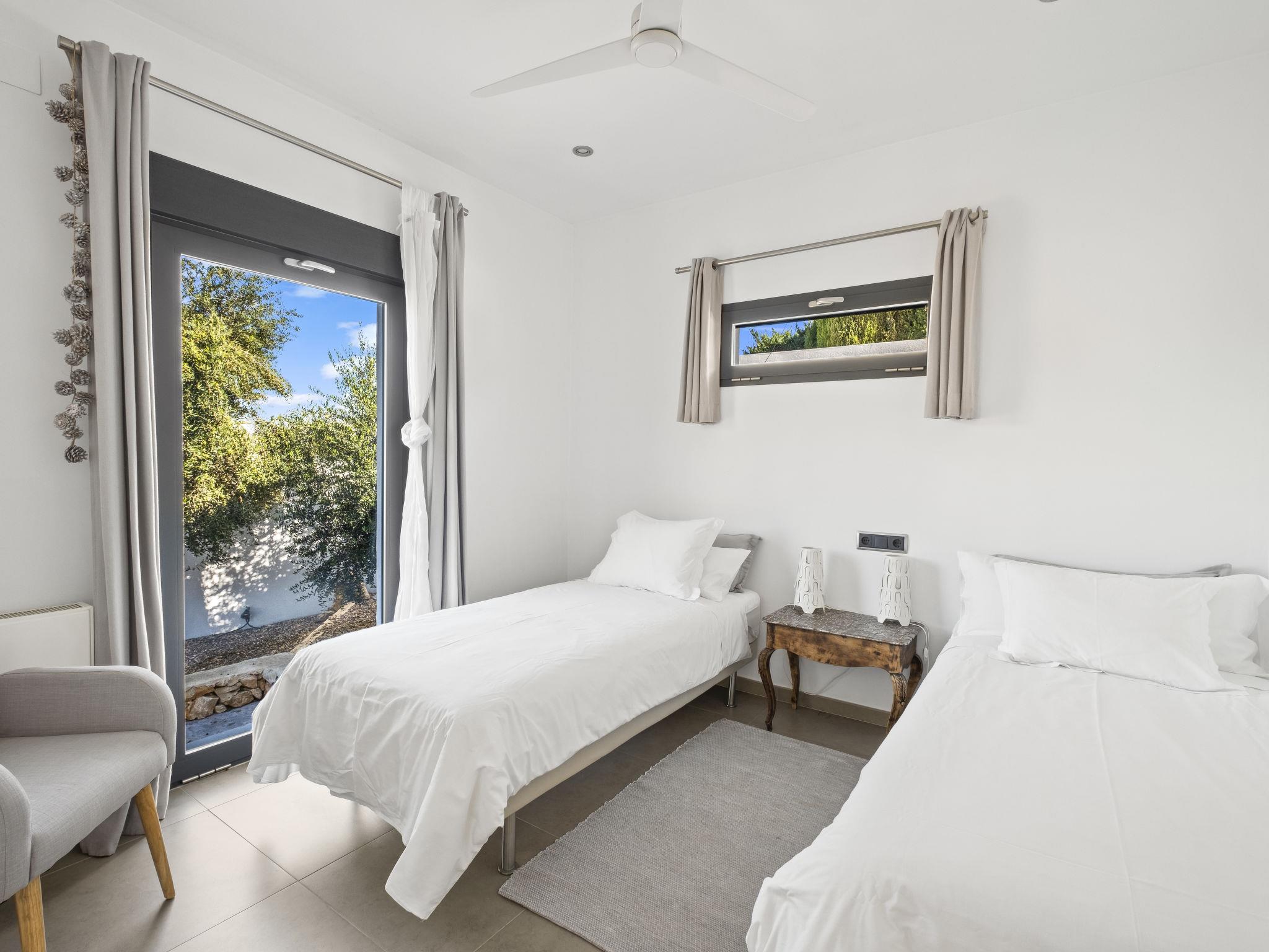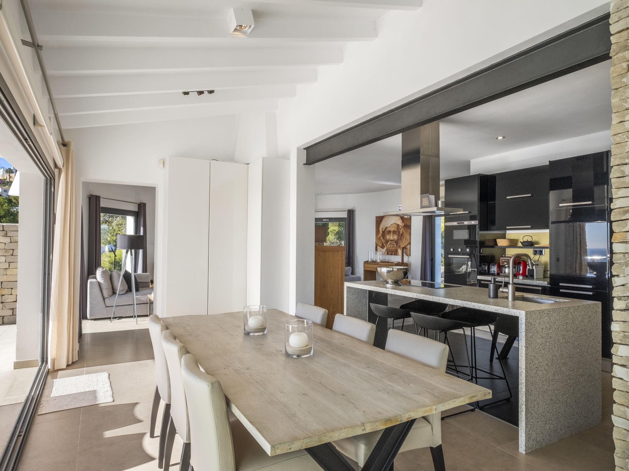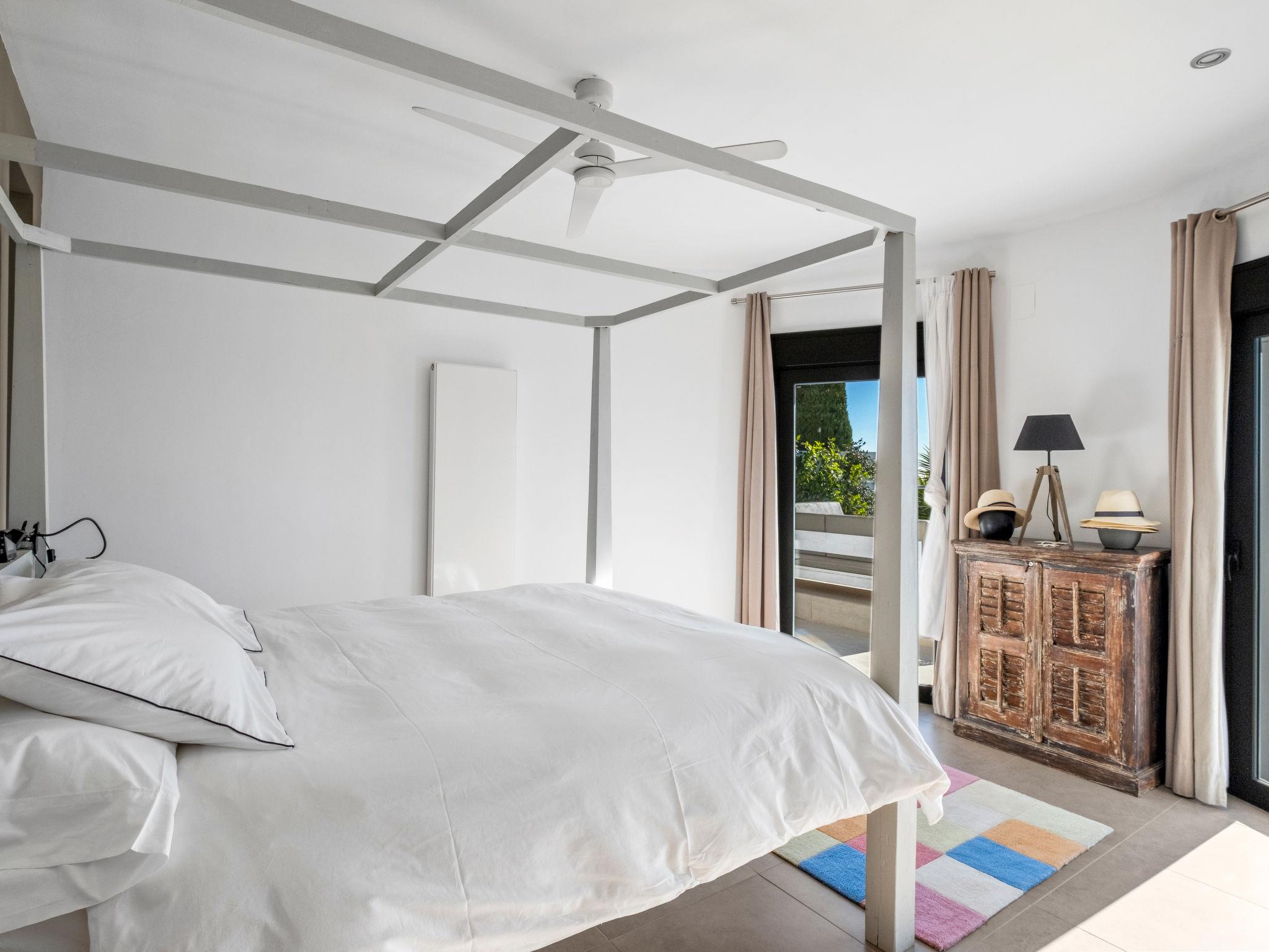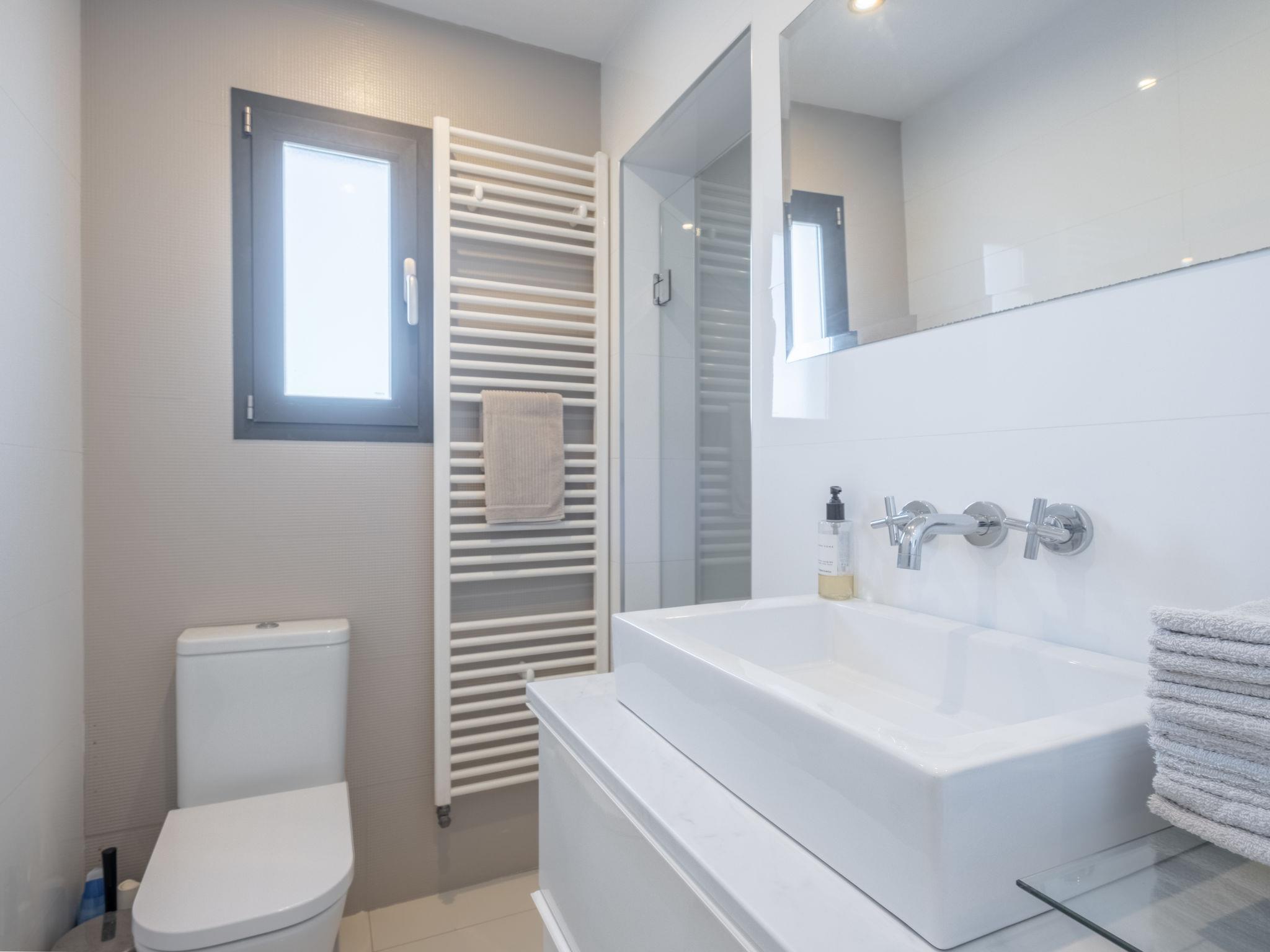 "Casawaouw", 5-room villa 230 m2 on 2 levels. Spacious and bright, beautiful and modern furnishings: open living/dining room with satellite TV, digital TV, air conditioning and forced-air heating. Exit to the terrace, to the swimming pool. 1 room with 1 french bed (160 cm, length 200 cm), shower/WC and fan. Exit to the terrace. 1 room with 1 french bed (160 cm, length 200 cm), fan. 1 room with 2 beds (90 cm, length 200 cm), fan. Open kitchen (oven, dishwasher, 3 induction hot plates, toaster, kettle, microwave, electric coffee machine). Exit to the terrace. Shower/WC. On the lower ground floor: (exterior staircase) with kitchen corner. 1 room with 1 double bed (2 x 90 cm, length 200 cm), bath/shower/WC and digital TV. Exit to the terrace. Large terrace. Terrace furniture, deck chairs, sitting area. Panoramic view of the sea and the resort. Facilities: washing machine, iron, hair dryer. Internet (WiFi, free). Parking (3 cars). Please note: non-smoking house. No internal connecting door between the floors. VT-511679-A // Reg. Nr.: ESFCTU00000303800069677700000000000000000VT-511679-A8
