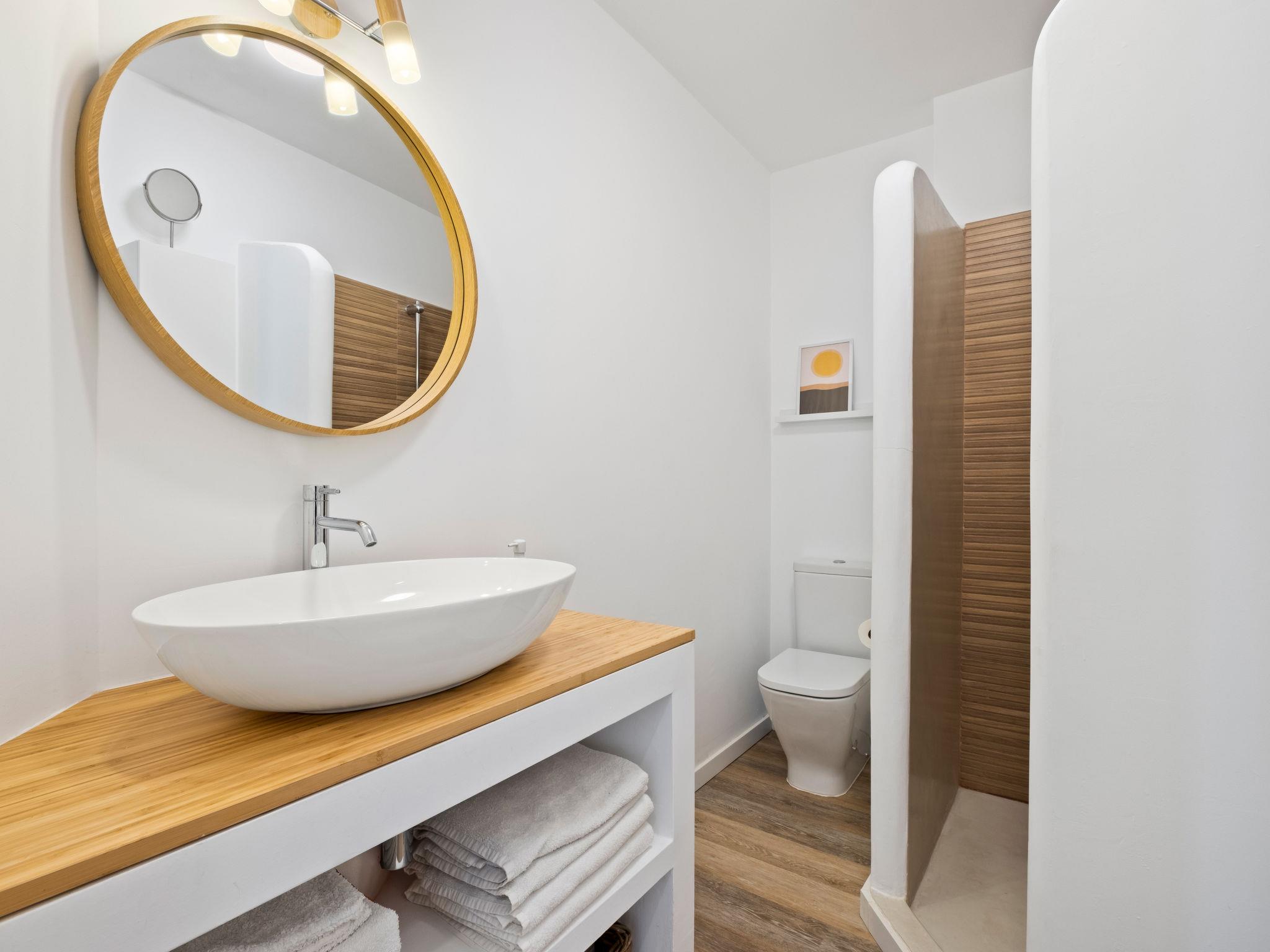 "Montecala", 3-room apartment 65 m2. Spacious and bright, fully renovated, beautiful and cosy furnishings: living/dining room with satellite TV, air conditioning and forced-air heating. Exit to the terrace. 1 room with 1 french bed (1 x 180 cm, length 200 cm), TV. 1 room with 2 beds (90 cm, length 200 cm). Open kitchen (oven, dishwasher, 3 induction hot plates, toaster, kettle, microwave, electric coffee machine). Shower/WC. Large terrace. Terrace furniture. Beautiful view of the valley and the resort. Facilities: washing machine, children's high chair, baby cot for up to 2 year olds, hair dryer. Internet (WiFi, free). Parking. Please note: non-smoking house. CV-VUT0519365-A // Reg. Nr.: ESFCTU0000030380000619950000000000000CV-VUT0519365-A0