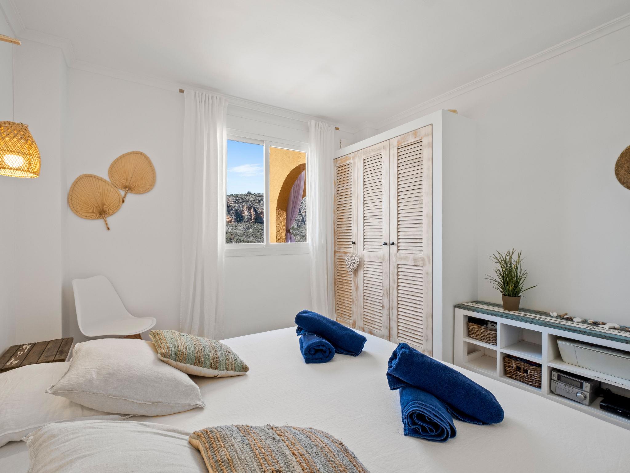 Cumbre del Sol: Beautiful apartment block "Montecala". In the district of Cumbre del Sol 7 km from the centre of Moraira, in a quiet, sunny position residential area (villas), traffic calmed area, 3 km from the sea, 3 km from the beach. For shared use: 3 swimming pools (80 m2, depth 100 - 120 cm, seasonal availability: 01.Jan. - 31.Dec.) with internal staircase. Children's pool, outdoor shower, public parking on the road. Bus stop "Benitachell" 6 km, railway station "Teulada" 9.6 km, ferry "Denia" 25.5 km, sandy beach "Playa L'Ampolla" 7 km pebble beach "Cala Moraig" 3 km, shingle beach "Cala Llebeig" 350 m. Please note: car recommended, no lift. The owner does not accept any youth groups.