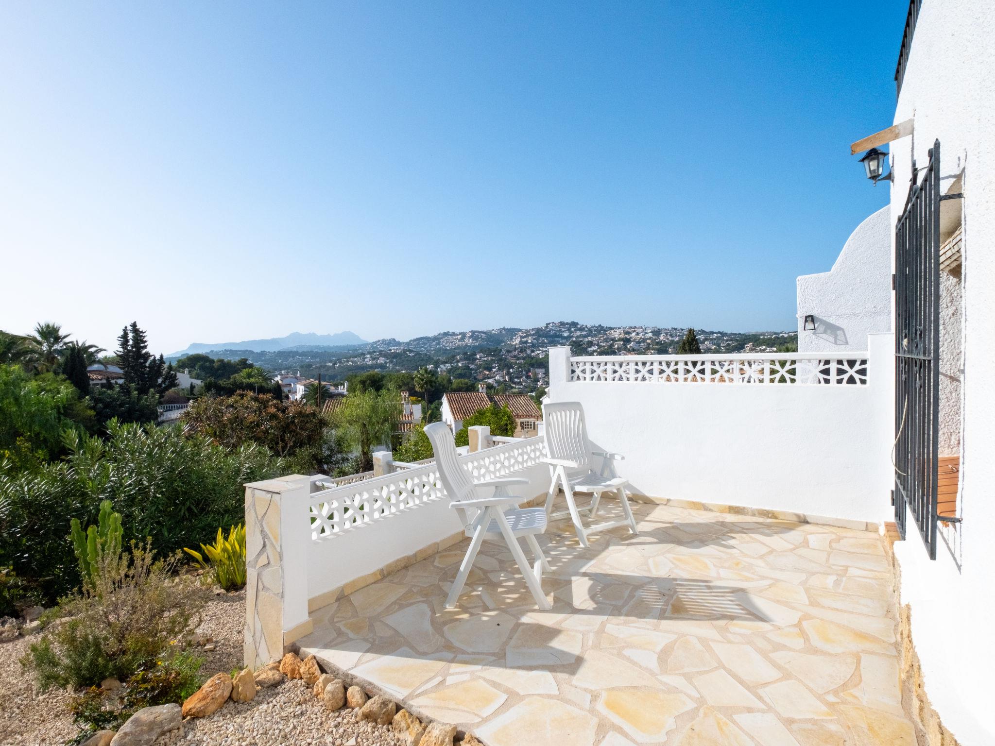 Beautiful, cosy terraced house "Casita Blanca", 2 storeys. In a quiet, sunny position, 1.2 km from the sea, 1.2 km from the beach. For shared use: large, beautiful, well-kept garden, swimming pool round (depth 120 - 200 cm, seasonal availability: 01.Jan. - 31.Dec.). Children's pool, tennis. Private: small, beautiful, well-kept garden. In the house: central heating system. Roofed, parking on the premises. Shop, supermarket, restaurant, bar 600 m, bus stop "Moraira" 1.4 km, railway station "Teulada" 6.5 km, ferry "Denia" 23.9 km, sandy beach 1.2 km, outdoor swimming pool 150 m. Tennis 100 m.