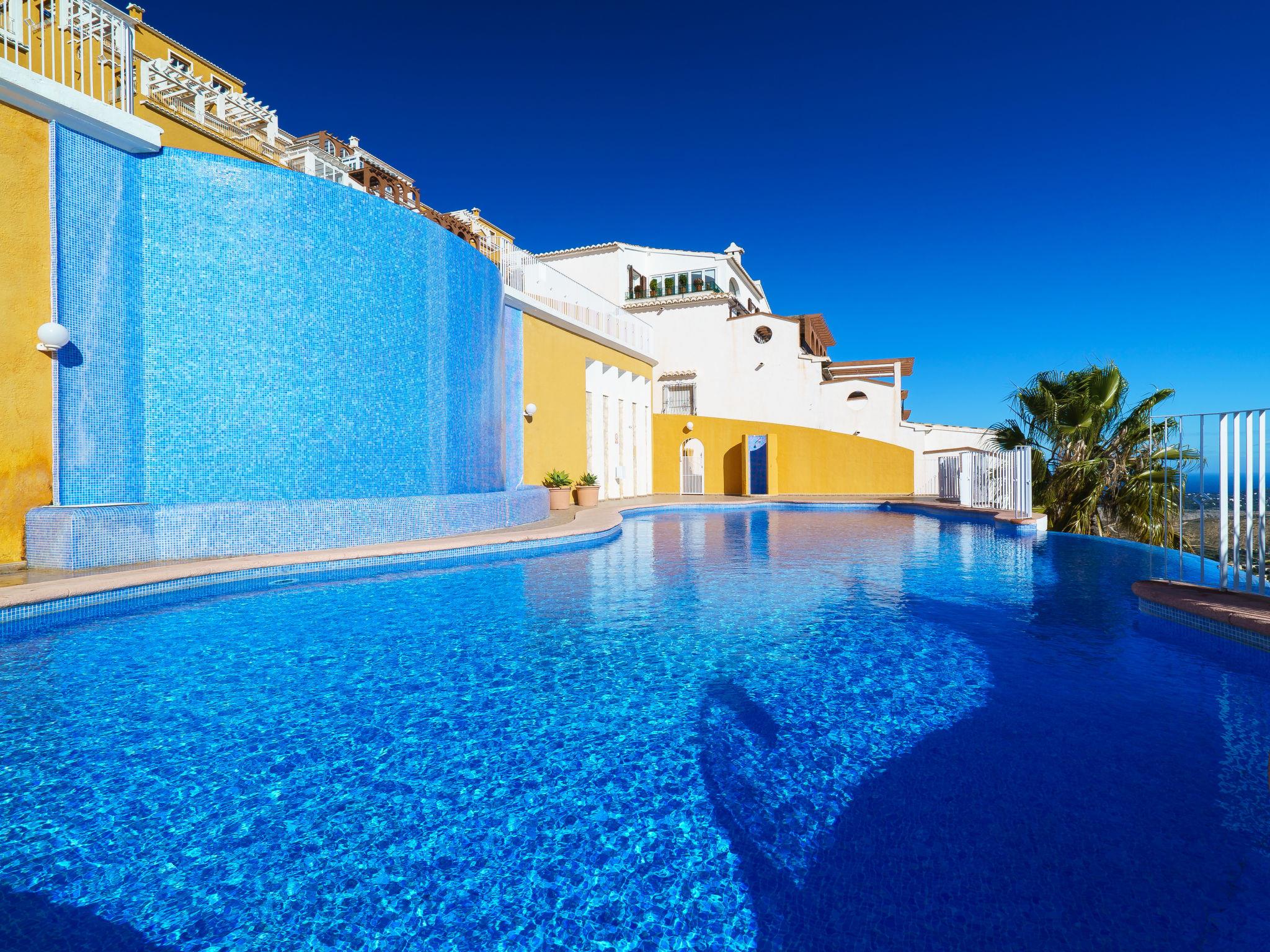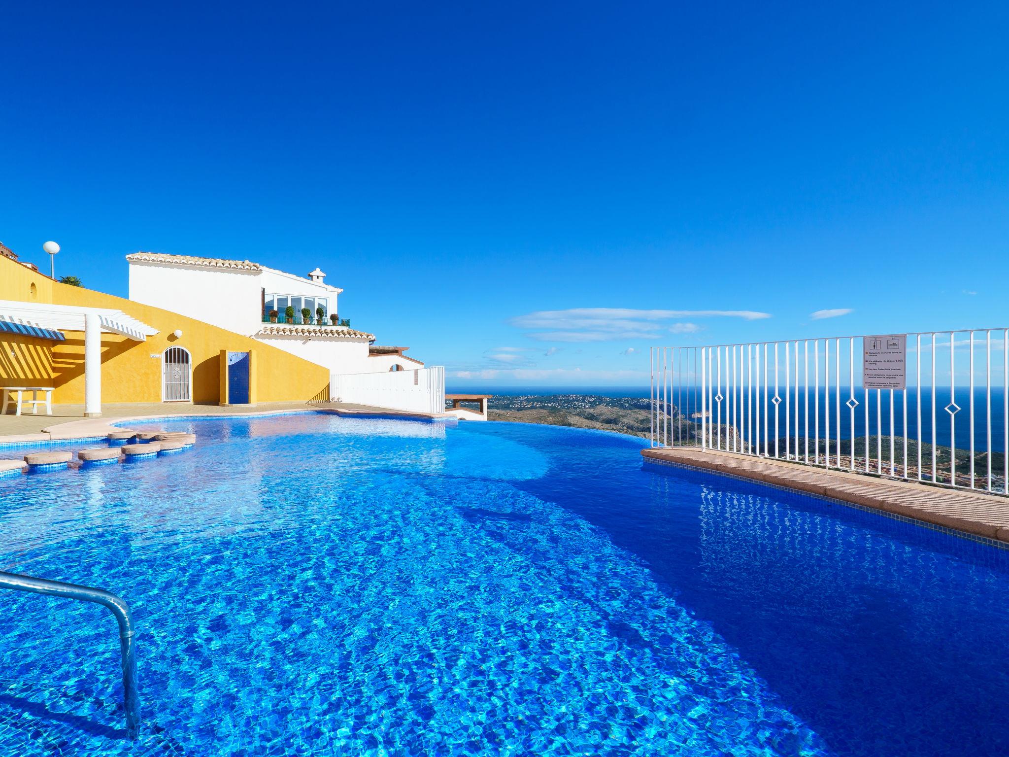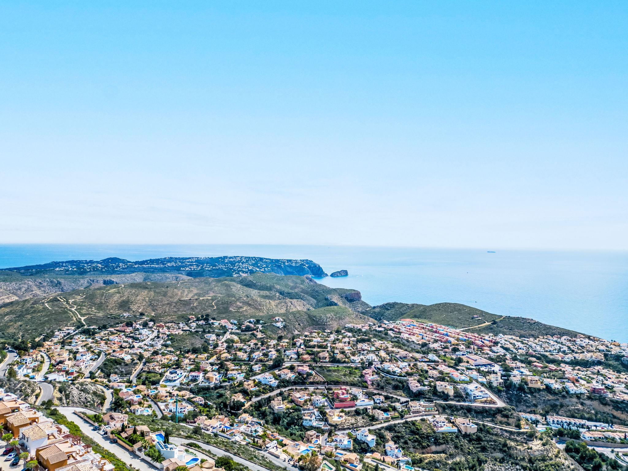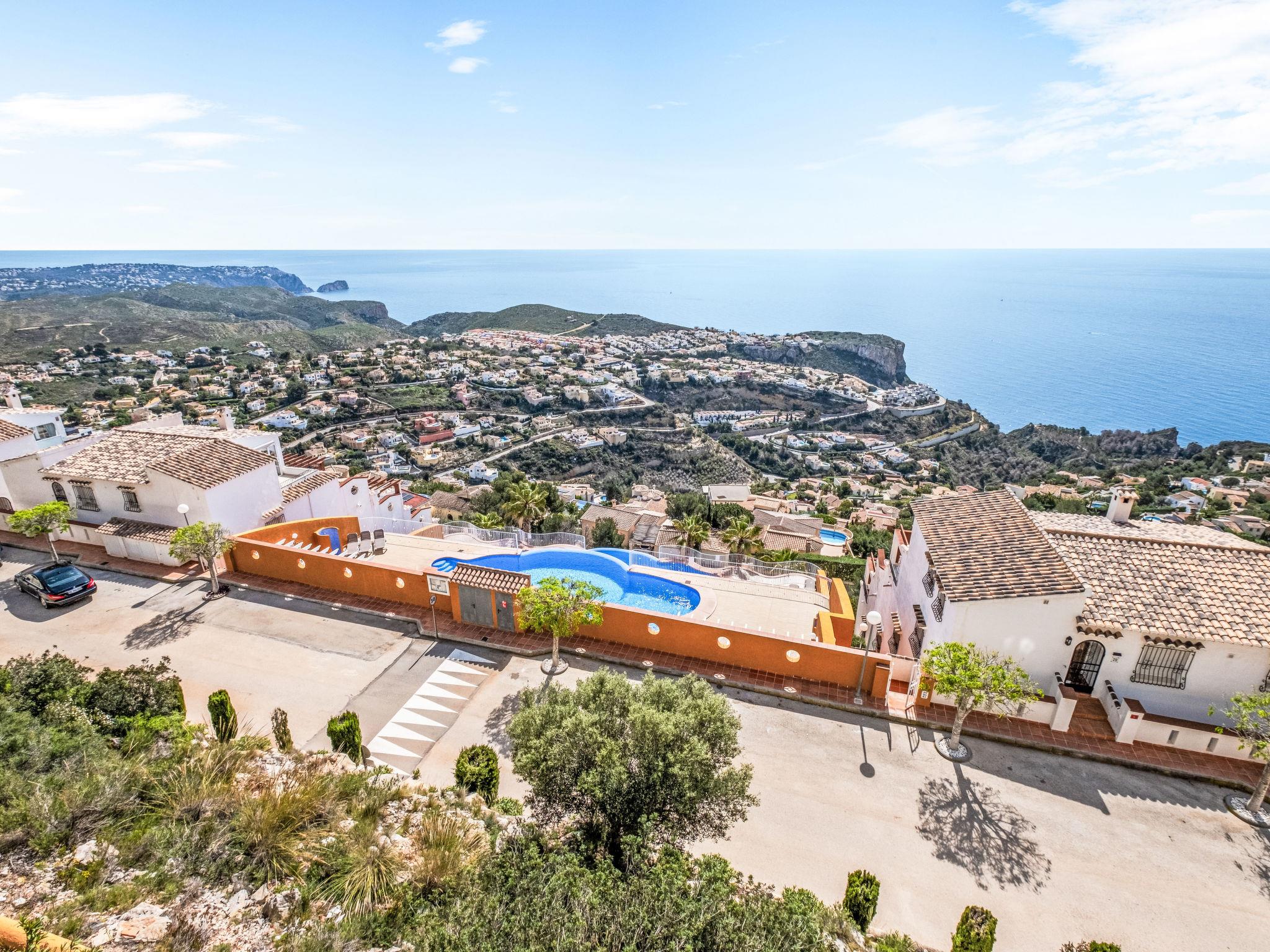 Apartment block "Pueblo Panorama". In the district of Cumbre del Sol, in a quiet, sunny position in the residential district, 4 km from the sea, 4 km from the beach. For shared use: 2 swimming pools (8 x 18 m, depth 120 - 150 cm, seasonal availability: 01.Jan. - 31.Dec.). In the house: internet access, WiFi, washing machine. Stepped path (53 steps) to the house. Shop 4.3 km, supermarket 4.3 km, shopping centre 4.3 km, restaurant 4.3 km, bus stop "Benitachell" 4 km, railway station "Teulada" 8.5 km, ferry "Denia" 22.5 km, sandy beach "Playa Ampolla" 8 km pebble beach "Cala Moraig" 4 km, outdoor swimming pool 10 m. Please note: car recommended. Suitable for families, suitable for seniors. The owner does not accept any youth groups.