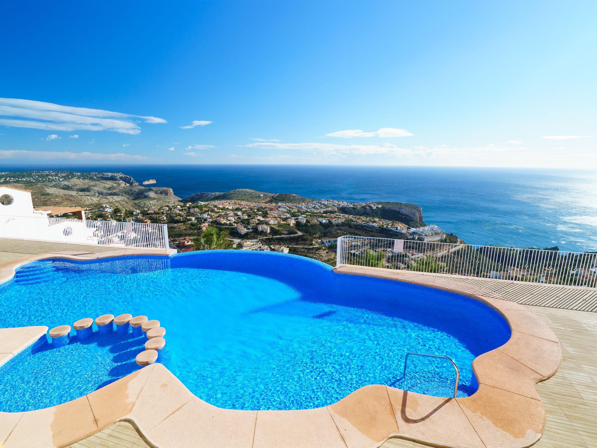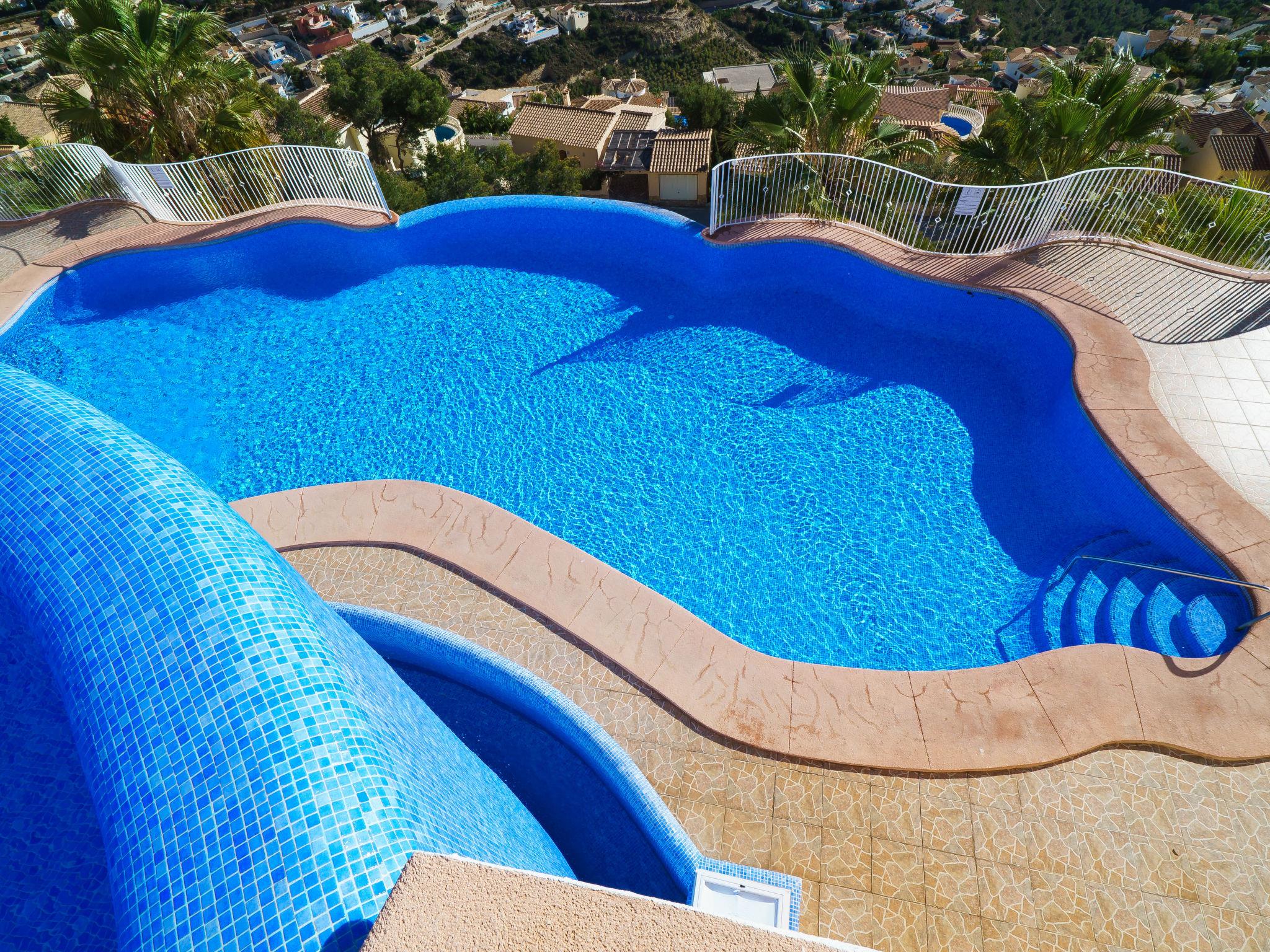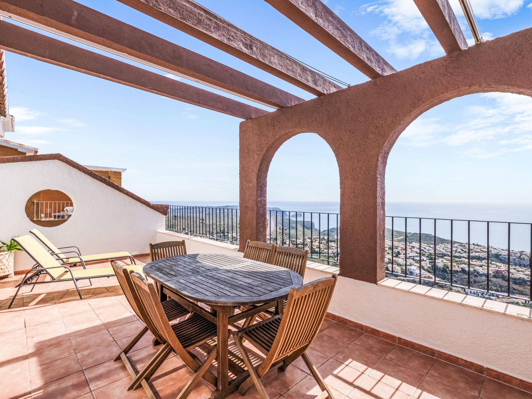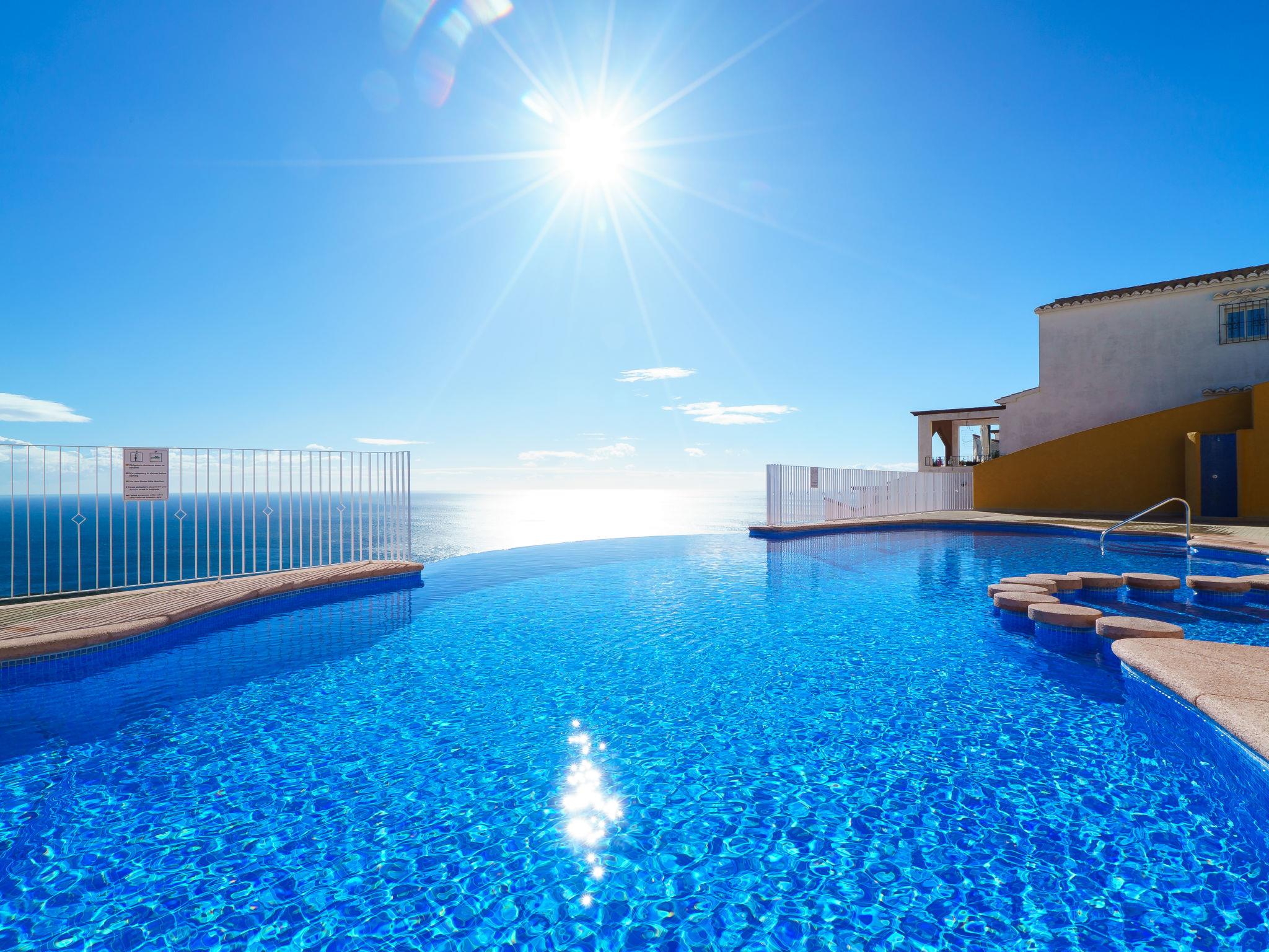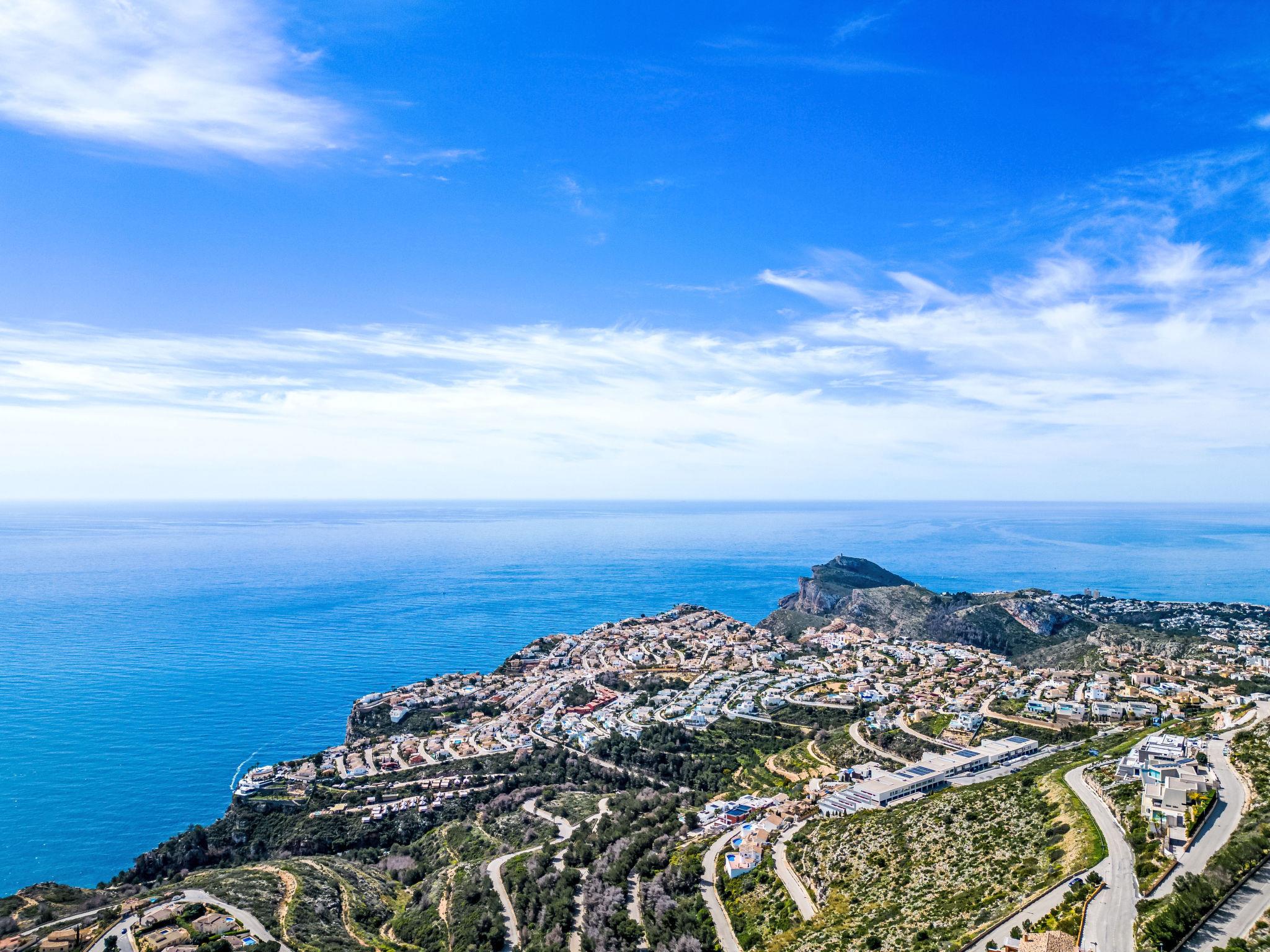 Apartment block "Pueblo Panorama". In the district of Cumbre del Sol, in a quiet, sunny position in the residential district, 4 km from the sea, 4 km from the beach. For shared use: 2 swimming pools (8 x 18 m, depth 120 - 150 cm, seasonal availability: 01.Jan. - 31.Dec.). In the house: internet access, WiFi, washing machine. Stepped path (53 steps) to the house. Shop 4.3 km, supermarket 4.3 km, shopping centre 4.3 km, restaurant 4.3 km, bus stop "Benitachell" 4 km, railway station "Teulada" 8.5 km, ferry "Denia" 22.5 km, sandy beach "Playa Ampolla" 8 km pebble beach "Cala Moraig" 4 km, outdoor swimming pool 10 m. Please note: car recommended. Suitable for families, suitable for seniors. The owner does not accept any youth groups.