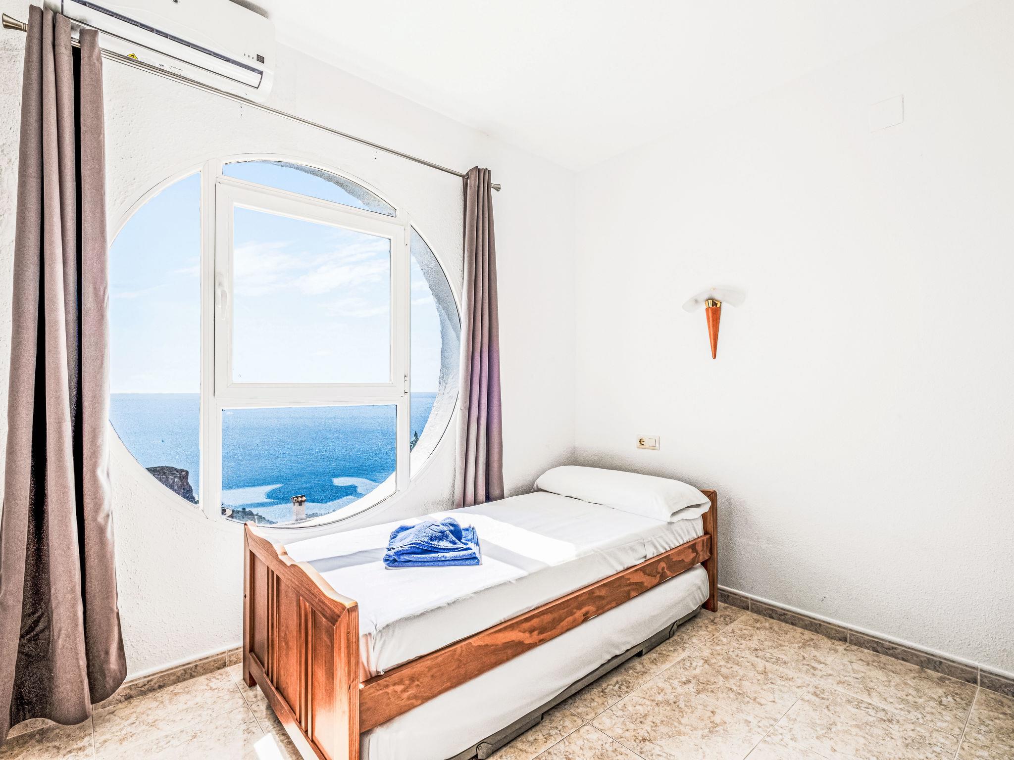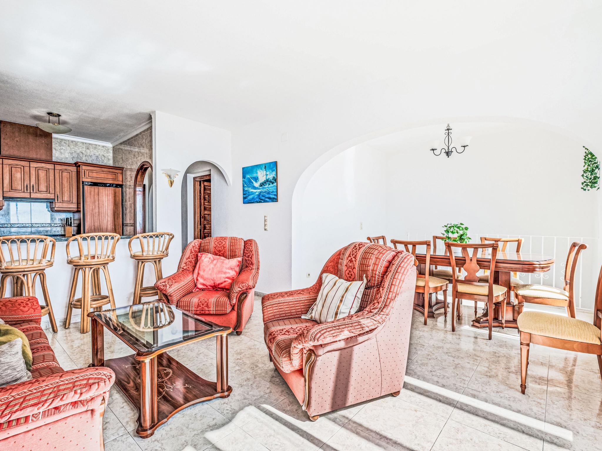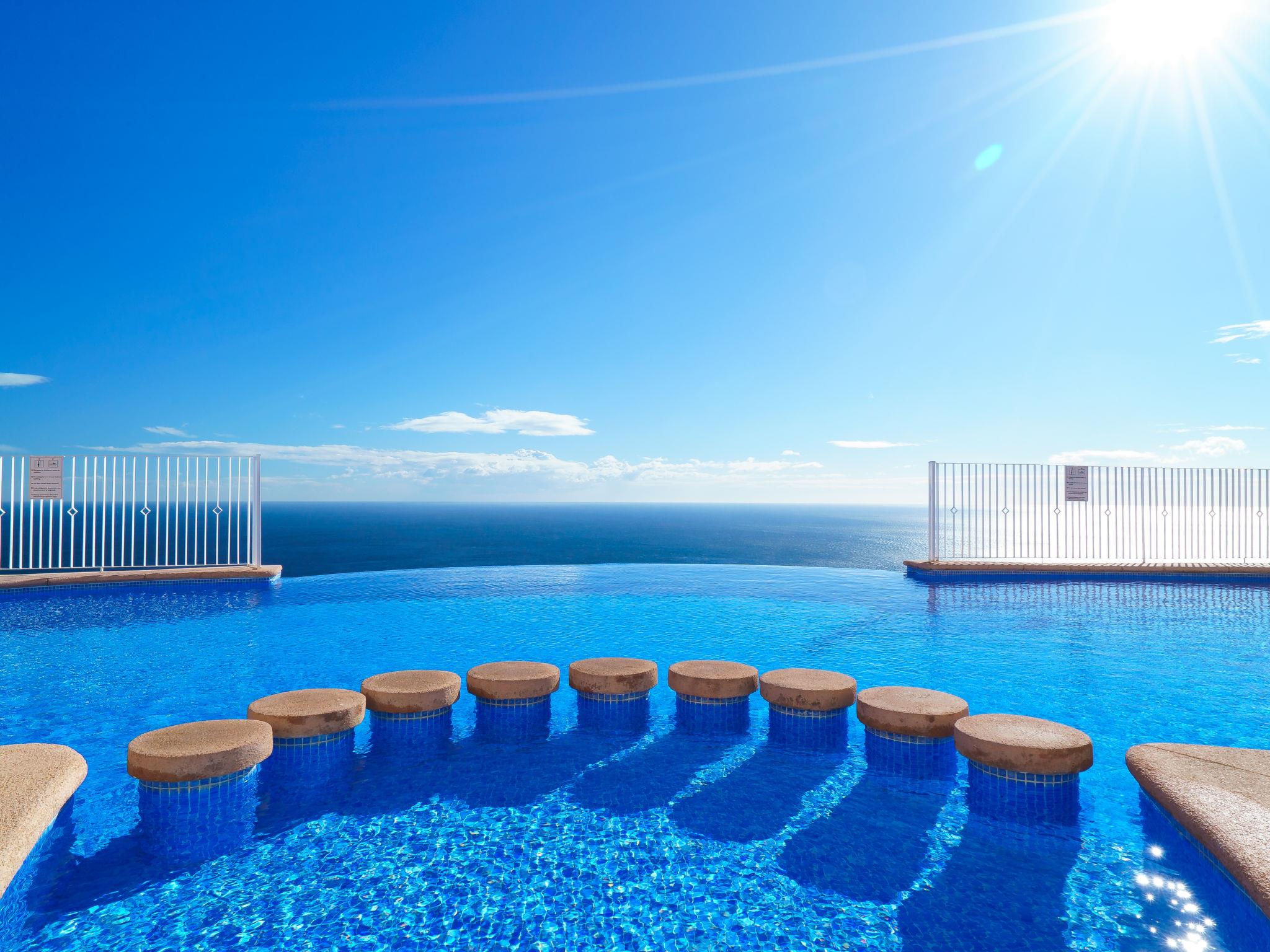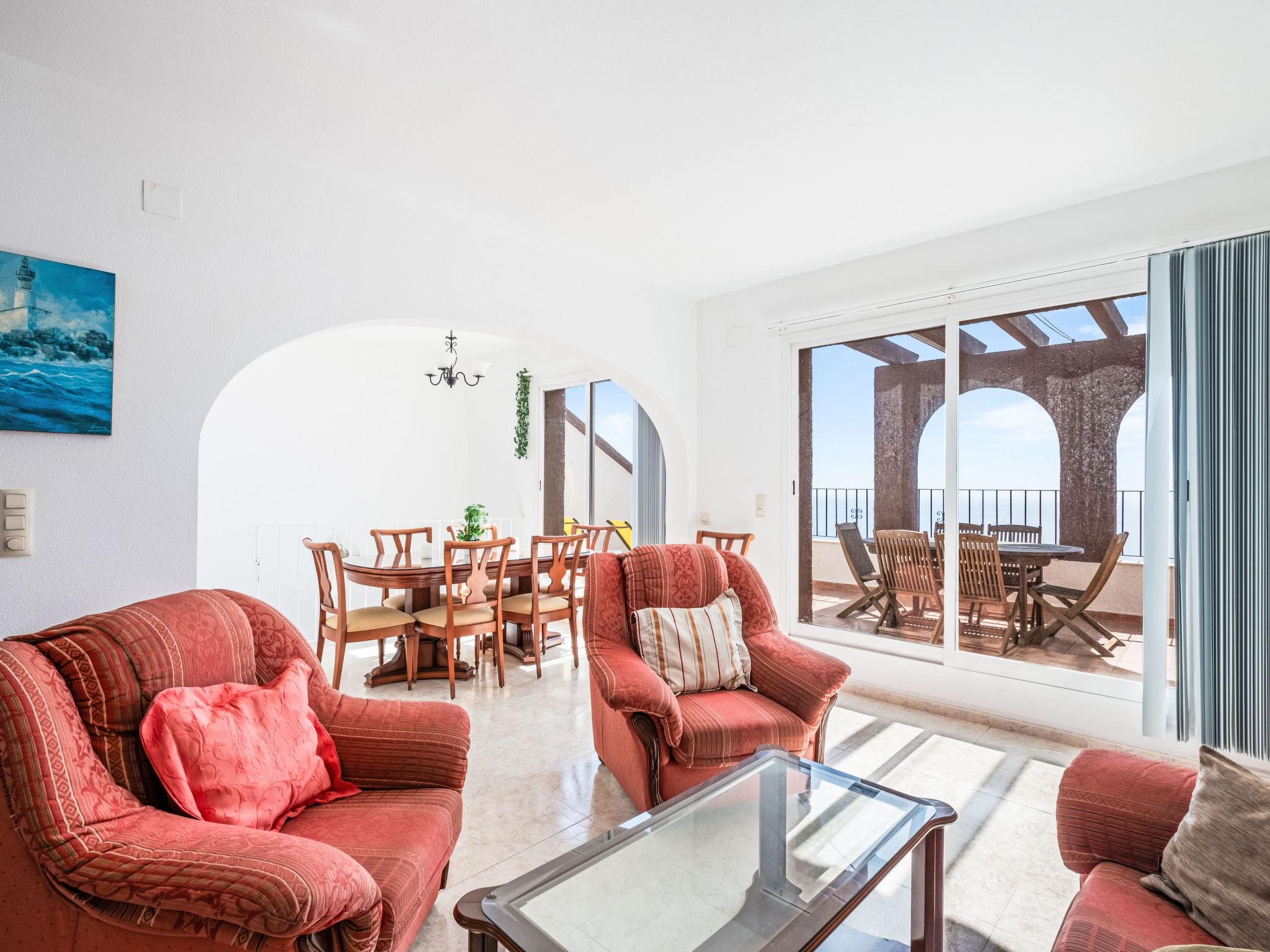 Apartment block "Pueblo Panorama". In the district of Cumbre del Sol, in a quiet, sunny position in the residential district, 4 km from the sea, 4 km from the beach. For shared use: 2 swimming pools (8 x 18 m, depth 120 - 150 cm, seasonal availability: 01.Jan. - 31.Dec.). In the house: internet access, WiFi, washing machine. Stepped path (53 steps) to the house. Shop 4.3 km, supermarket 4.3 km, shopping centre 4.3 km, restaurant 4.3 km, bus stop "Benitachell" 4 km, railway station "Teulada" 8.5 km, ferry "Denia" 22.5 km, sandy beach "Playa Ampolla" 8 km pebble beach "Cala Moraig" 4 km, outdoor swimming pool 10 m. Please note: car recommended. Suitable for families, suitable for seniors. The owner does not accept any youth groups.