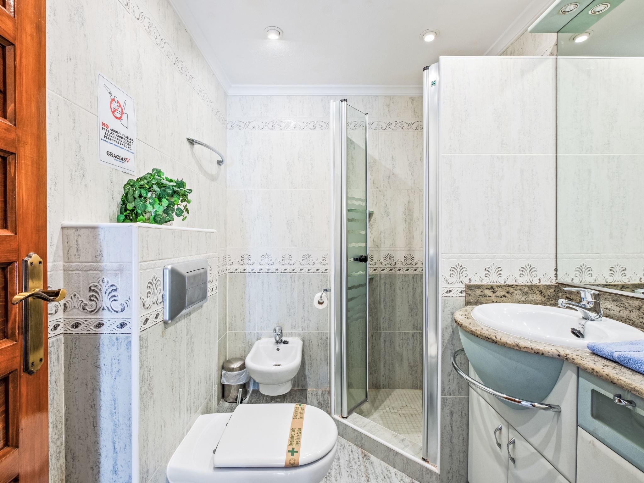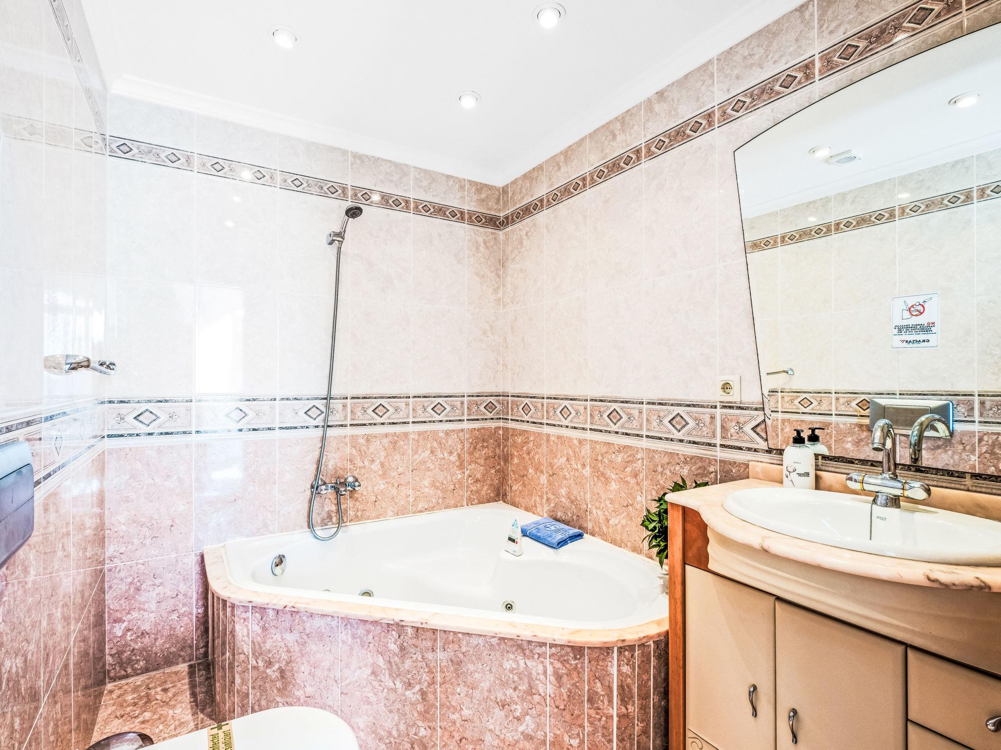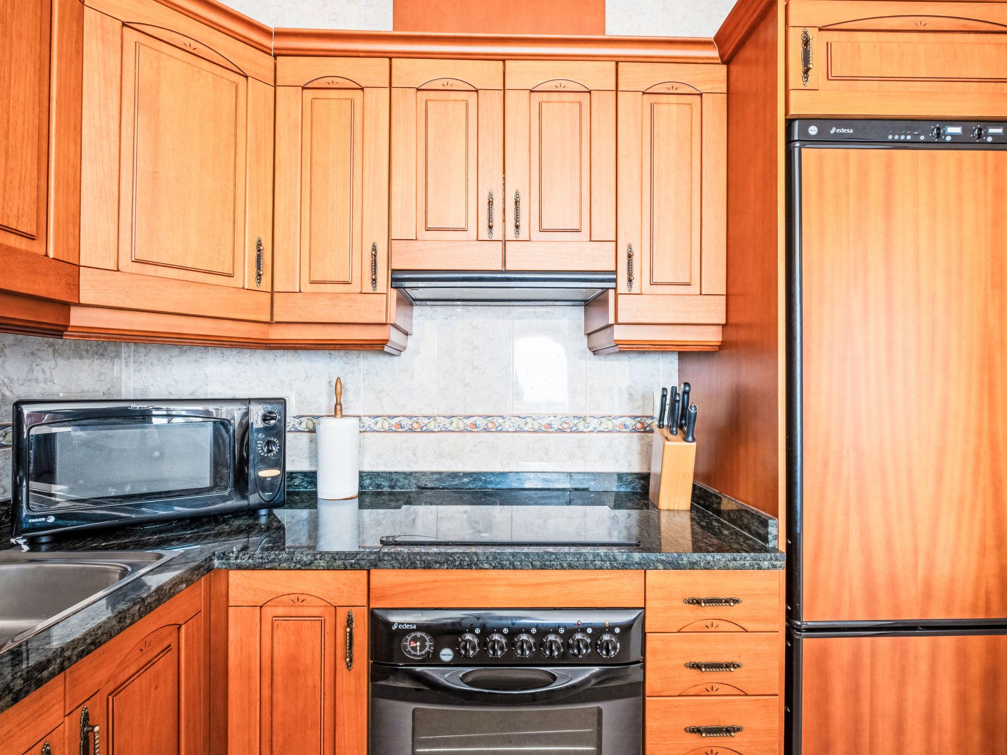 "Pueblo Panorama", 4-room apartment 125 m2 on 2 levels. Bright, comfortable and cosy furnishings: living/dining room with digital TV, air conditioning and forced-air heating. Exit to the terrace. 1 room with 1 french bed (1 x 160 cm, length 200 cm). Kitchen (oven, dishwasher, 4 ceramic glass hob hotplates, toaster, kettle, microwave, electric coffee machine). Shower/bidet/WC, double hand-basin. On the lower ground floor: 1 room with 1 french bed (1 x 160 cm, length 200 cm). 1 room with 1 x 2 bunk beds (80 cm, length 190 cm), 1 pull-out bed (2 pers. 2 x 80 cm, length 190 cm), air conditioning and forced-air heating. Bath/WC. Large terrace. Terrace furniture. Panoramic view of the sea and the resort. Facilities: washing machine, iron, hair dryer. Internet (WiFi, free). Please note: non-smoking house. R00000001