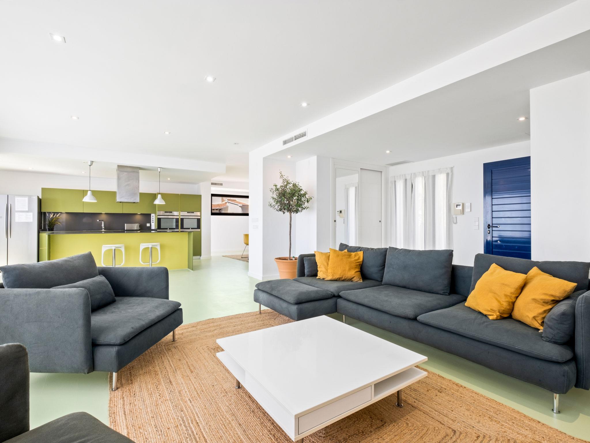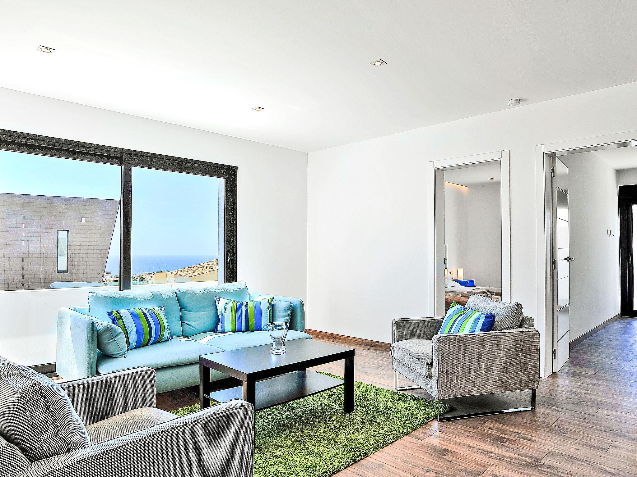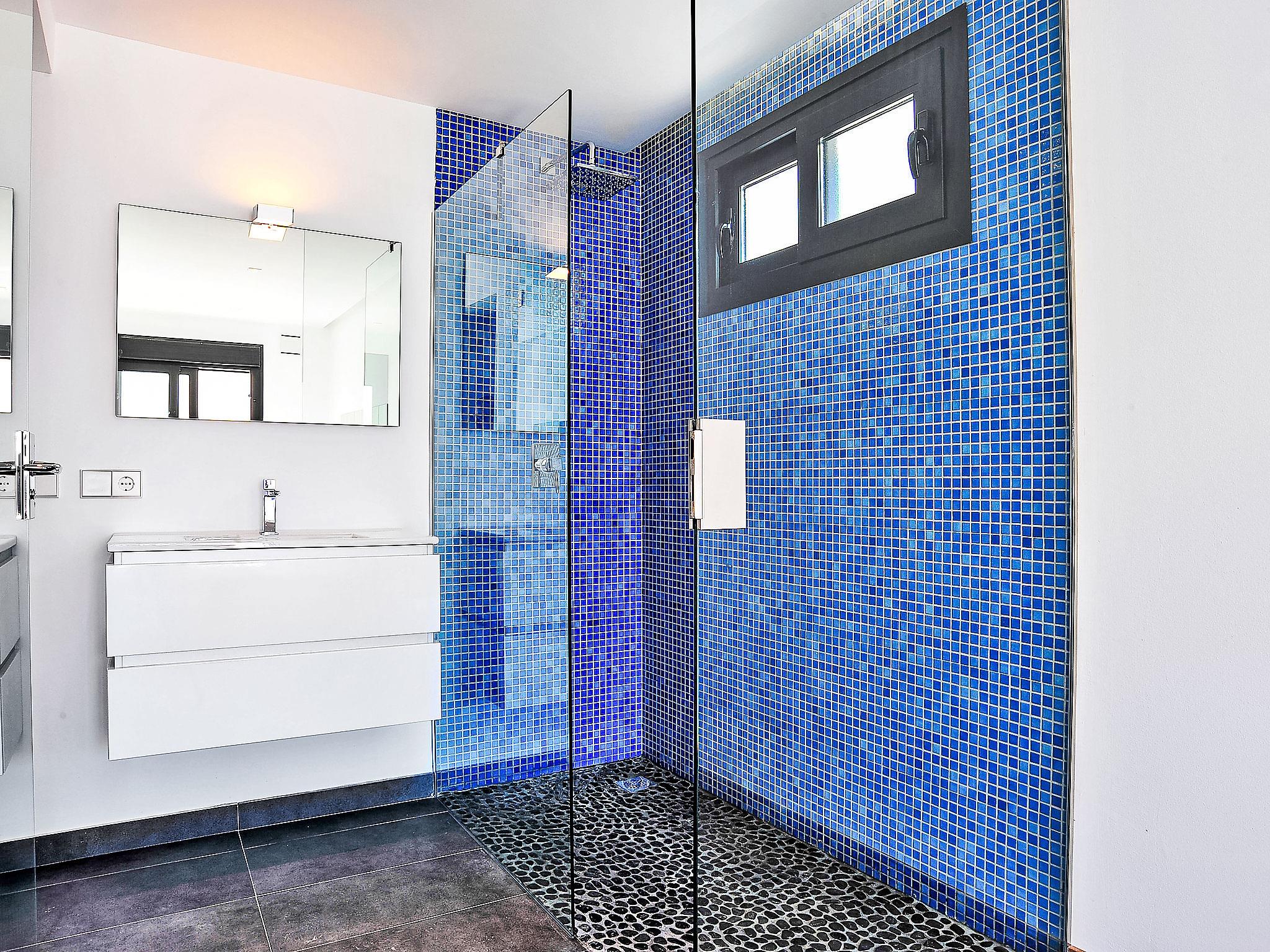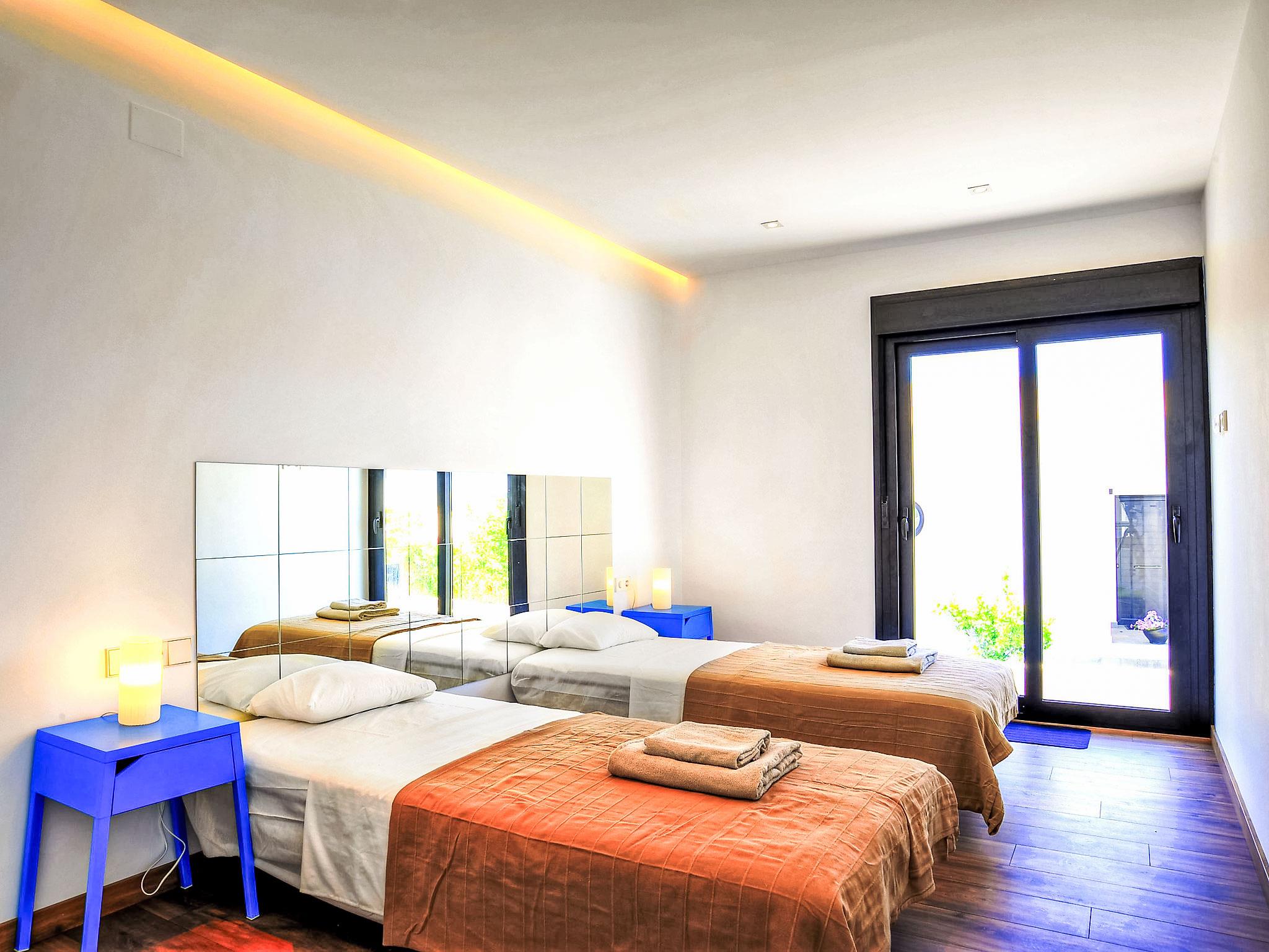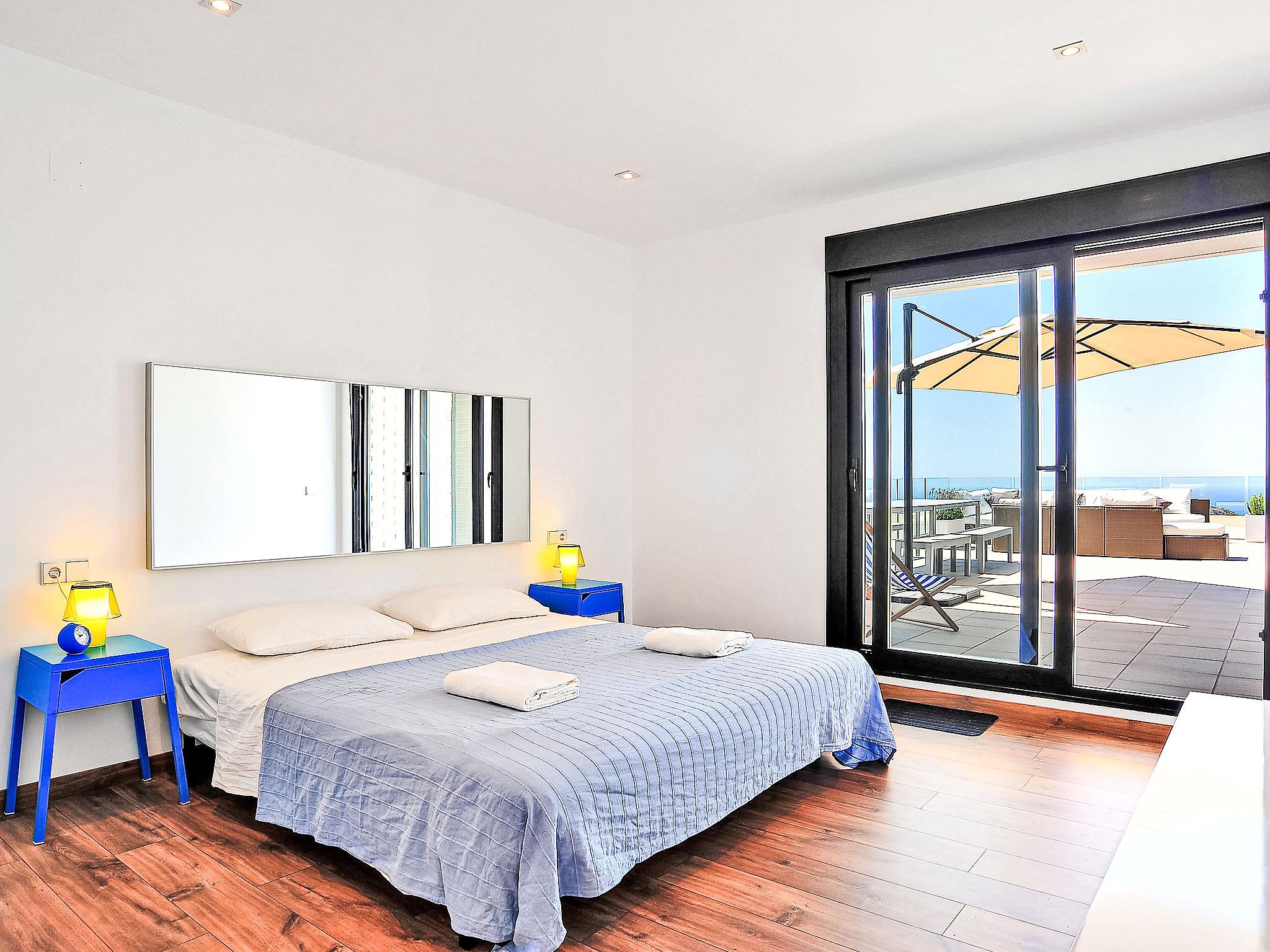 Cumbre del Sol: Very modern, beautiful villa "Megin", 2 storeys, built in 2014. In the district of Cumbre del Sol 5.5 km from the centre of Moraira, in a quiet, sunny position, 2 km from the sea, 2 km from the beach. Private: property 800 m2 (fenced), garden, swimming pool angular (4 x 8 m, depth 150 - 200 cm, seasonal availability: 01.Jan. - 31.Dec.) with internal staircase. In the house: air conditioning. Parking on the premises. Shop 3 km, supermarket 3 km, restaurant 3 km, bus stop "Benitachell" 5.1 km, railway station "Teulada" 8.7 km, ferry "Denia" 24.3 km, pebble beach "Cala Moraig" 2 km. The owner does not accept any groups. The owner does not accept any youth groups. Neighbourhood highly sensitive to noise. Quietness and good behaviour expected.