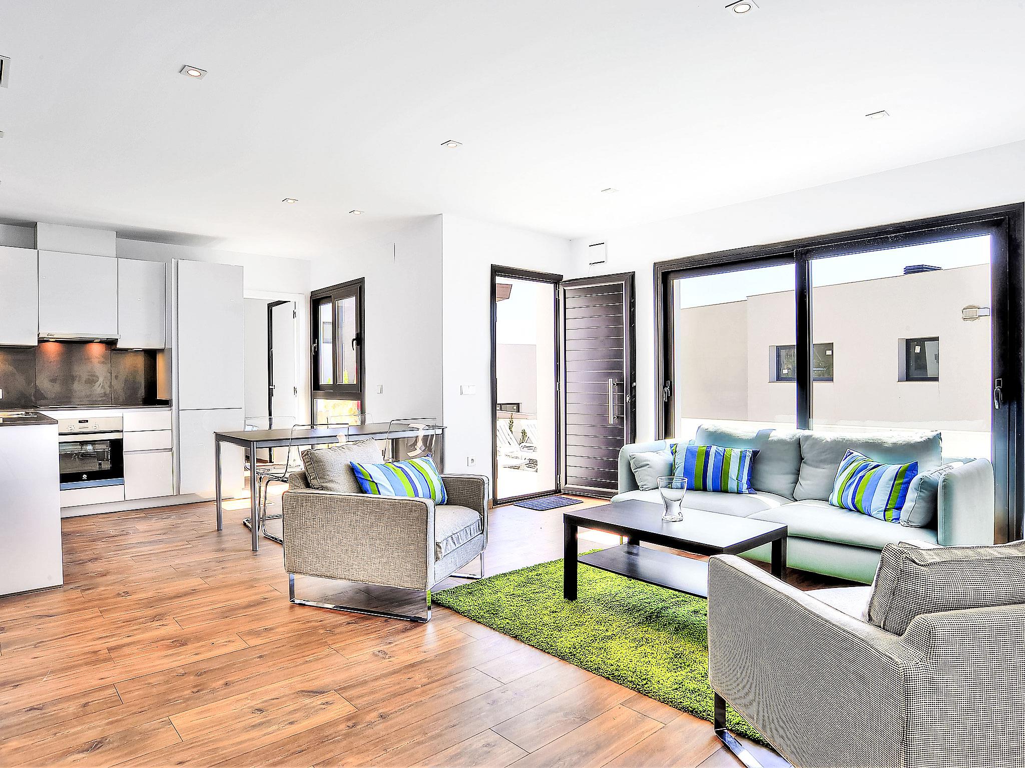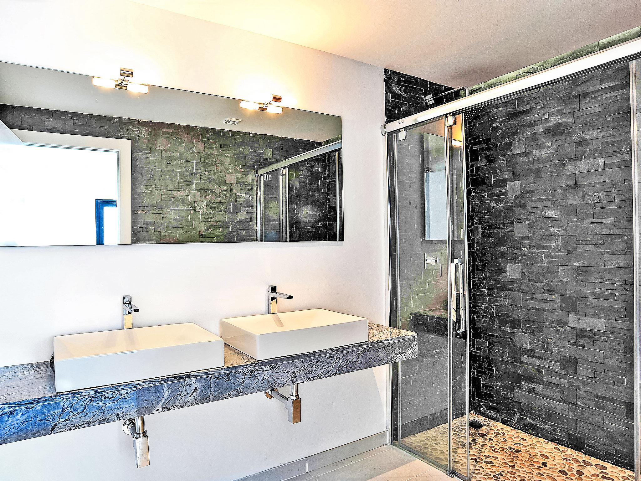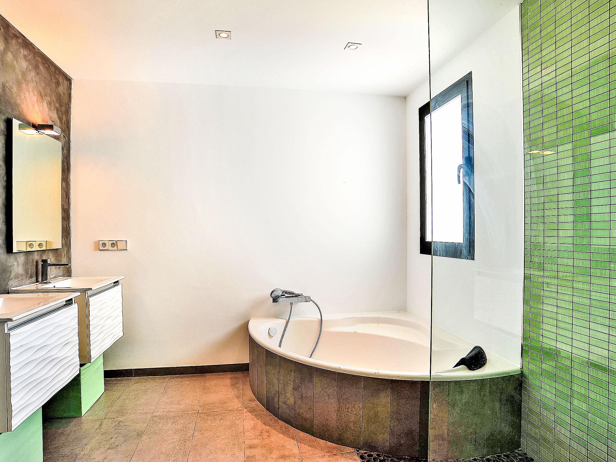 "Megin", 7-room villa 250 m2 on 2 levels. Spacious and bright, very modern and stylish furnishings: large living/dining room 100 m2. Exit to the terrace, to the swimming pool. 1 double bedroom with 2 beds (90 cm, length 200 cm), bath/shower/bidet/WC and double hand-basin. Exit to the terrace, to the swimming pool. Open kitchen (oven, dishwasher, 4 induction hot plates, freezer, electric coffee machine). Sep. WC. Underfloor heating. On the lower ground floor: living/dining room with satellite TV and flat screen. Exit to the terrace. 1 room with 2 beds (90 cm, length 200 cm). 1 double bedroom with 2 beds (90 cm, length 200 cm). Exit to the garden. 1 room with 1 double bed (2 x 90 cm, length 200 cm), shower/WC. Open kitchen (oven, dishwasher, 4 induction hot plates, freezer, electric coffee machine). Shower/WC, double hand-basin. Underfloor heating. Large terrace 130 m2 partly roofed, small terrace. Terrace furniture, barbecue, deck chairs (7). Marvellous panoramic view of the sea and the countryside. Facilities: washing machine, iron, baby cot. Internet (WiFi, free). Parking (2 cars). Please note: suitable for families. Non-smokers only. AT-441013-A // Reg. Nr.: ESFCTU00000303800006711900000000000000000AT-441013-A7