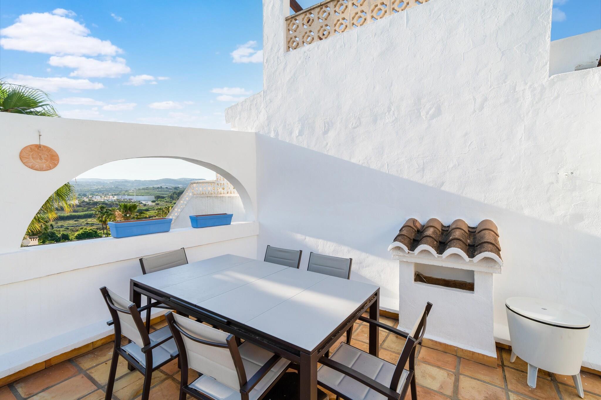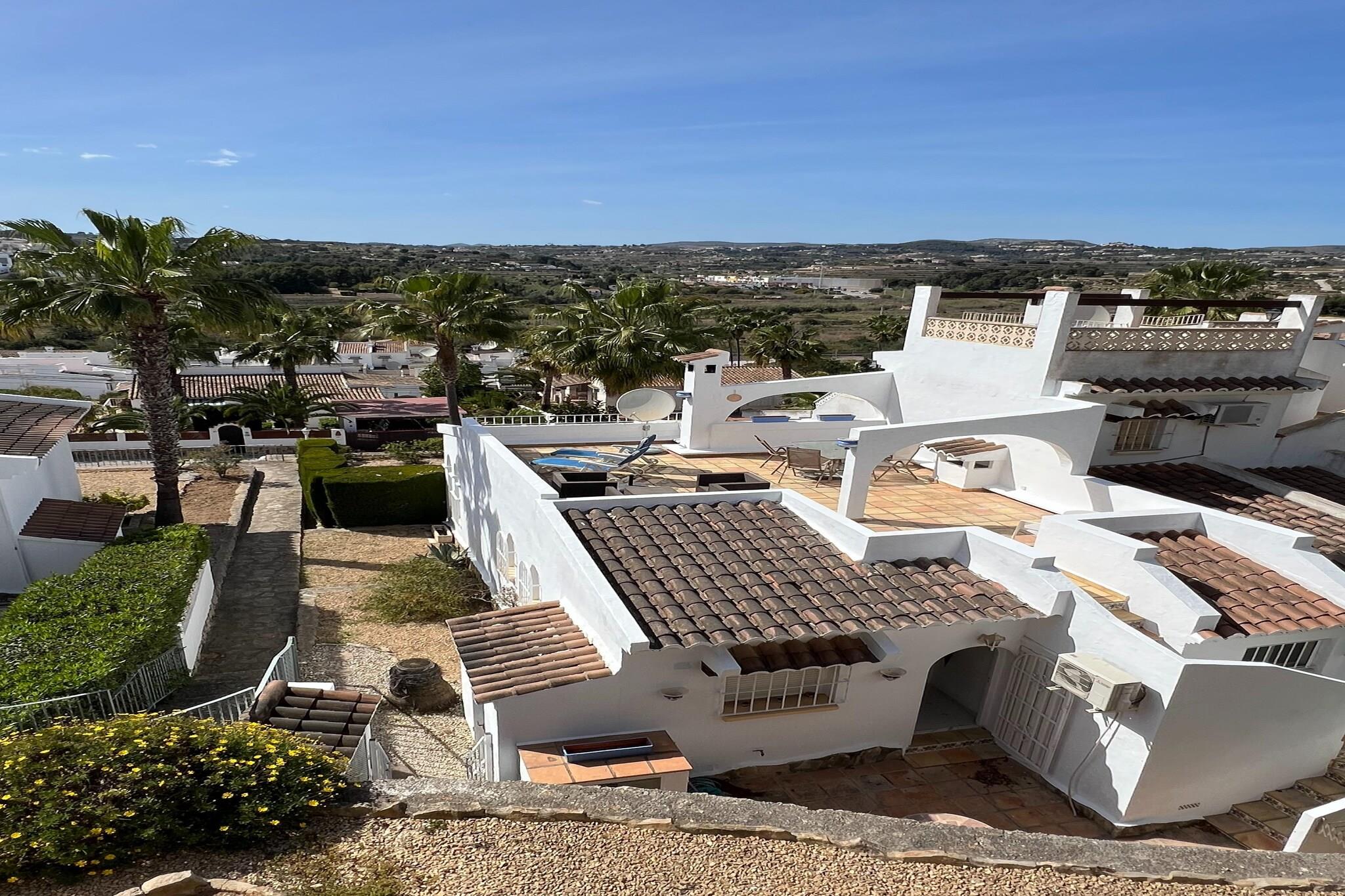 Bungalow med smuk sydvendt tagterrasse og udsigt over havet i Moraira