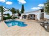 Fritliggende villa med privat swimmingpool og stor veranda med udendørs køkken nær Moraira på Costa Blanca. Villaen har en naya (38 m2), hvor du kan sidde udenfor. Det udendørs køkken har en indbygget grill. Villaen ligger på sin egen lukkede grund på 1230 m2, så du har masser af privatliv. Villaen ligger 800 m fra stranden og 1 km væk kommer du til den tidligere autentiske fiskerby Moraira. Moraira er halvvejs mellem Valencias byer (ca. 110 km) og Alicante (ca. 80 km) og er en livlig fiskerby med dejlige sandstrande og småstenstrande beliggende mellem små bugter. Moraira har mange gode restauranter og har også en havn. Den umiddelbare nærhed er ideel til sportslige aktiviteter som: gå, cykle, golf og endda sejle. I det omkringliggende område er der forskellige golfbaner.