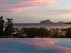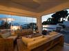 Der Infinity-Pool ist circa 9 x 4 Meter groß. Das Haus hat Hanglage. Von der Garage gibt es einen Lift zum Haus.