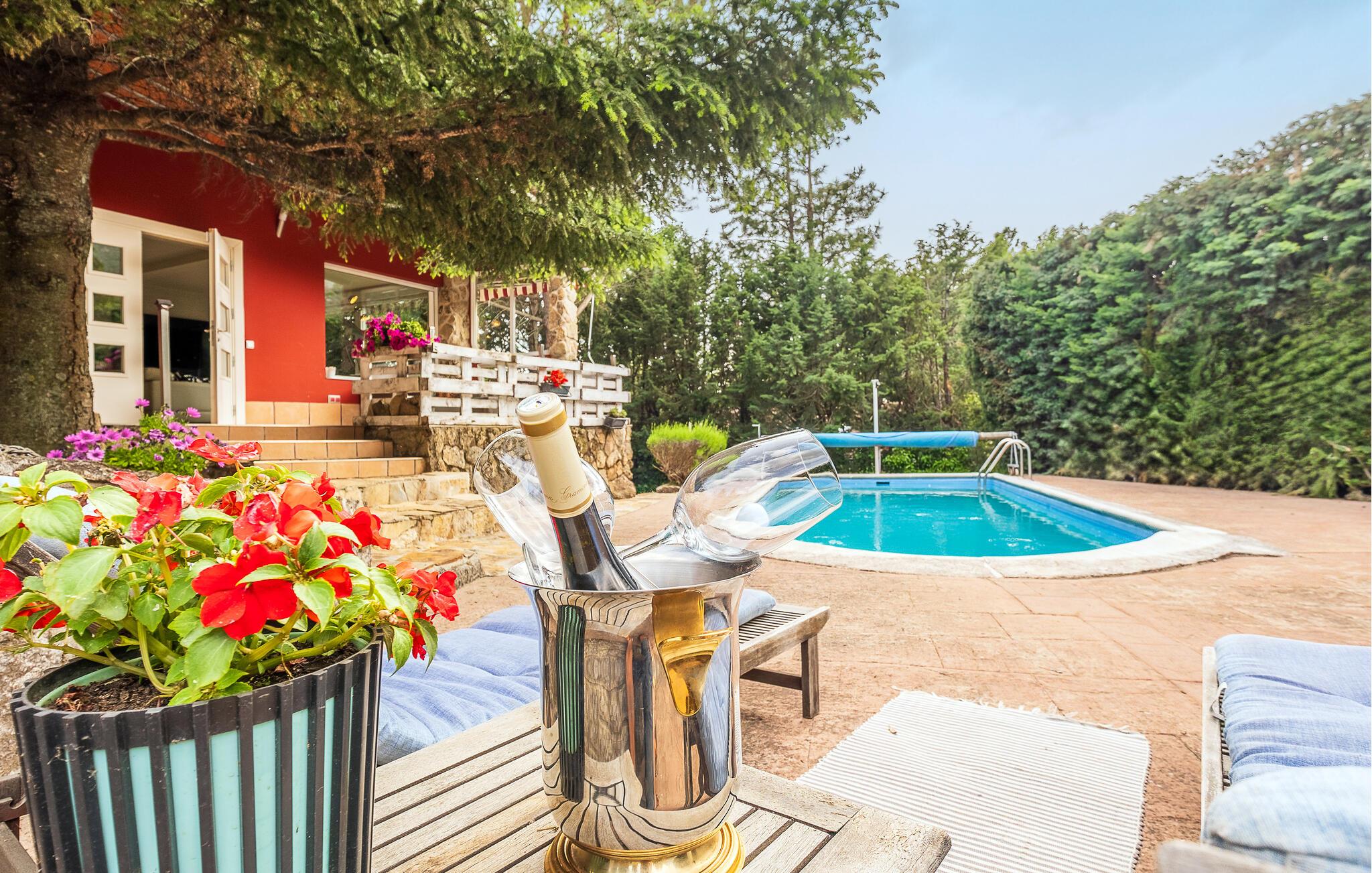 Nyd en ferie tæt på naturen i dette feriehus med pool. Idyllisk beliggende og med gode muligheder for at udforske naturen tilbyder dette komfortable og lyse hus et vidunderligt tilflugtssted. Nyd tiden sammen i smukt møblerede værelser, slap af i spabadet med en fantastisk udsigt, og glæd jer til hyggelige aftener ved den knitrende pejs efter aktive dage i det omkringliggende område. Glæd jer til behagelige timer udendørs, hvor I kan nyde solen på terrasserne, forfriske jer i poolen med udsigt over bjergene og grille på lune sommeraftener. Oplev det storslåede bjerglandskab på velafmærkede vandrestier. Besøg det ugentlige marked i centrum af Moralzarzal og prøv regionale specialiteter. Gå en tur gennem gyderne, stop ved en tapasbar, og lad jer rive med af landsbyens varme atmosfære.