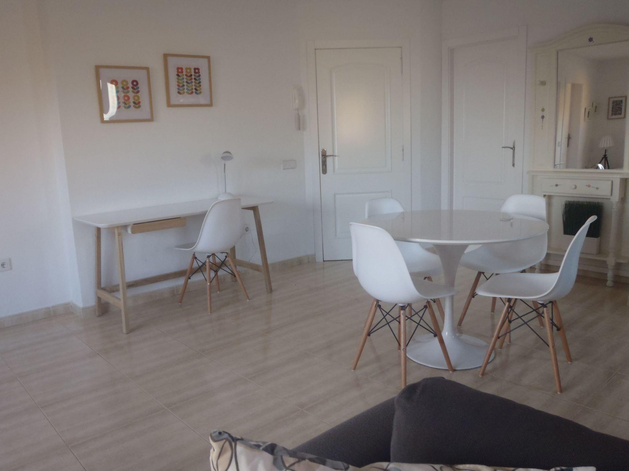 Fantastic modern flat in the south of the Canary Island of Fuerteventura. Two bedrooms, one with a double bed of 1,50 m. Another with two single beds of 90 cm. The flat has a wonderful terrace with sea views. Spacious and comfortable bathroom with shower. Living-dining room with kitchen, very large. Equipped with TV with international channels, free Wifi, radio channels on TV. Very sunny all day long and very close to the beach. No need for a car. In the kitchen you have everything you need (oven, crockery, microwave, coffee machine, toaster, kettle and much more).